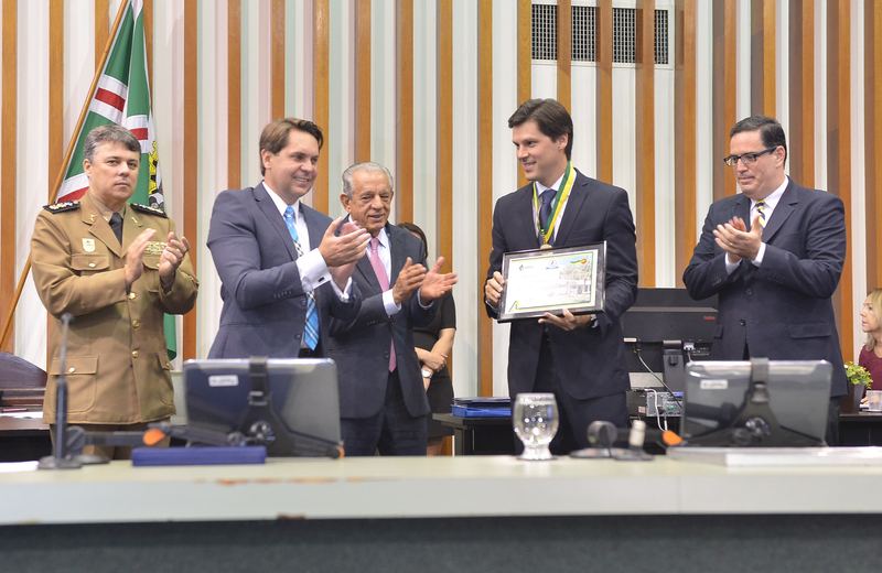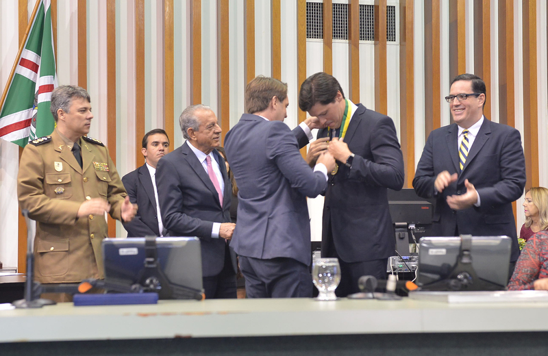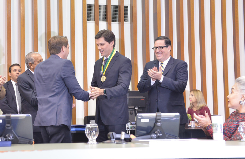 Entrega da medalha ao deputado federal Daniel Vilela e em homenagem ao prefeito de Goiânia, Iris Rezende, e a senhora Iris Araújo Denise Xavier