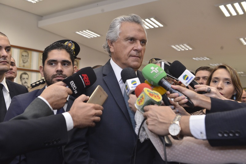 Governador Ronaldo Caiado concede entrevista no Salão Nobre Denise Xavier