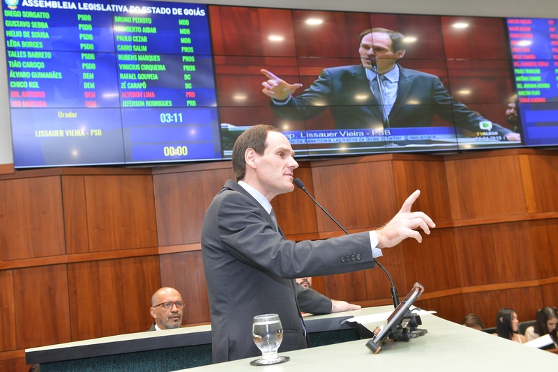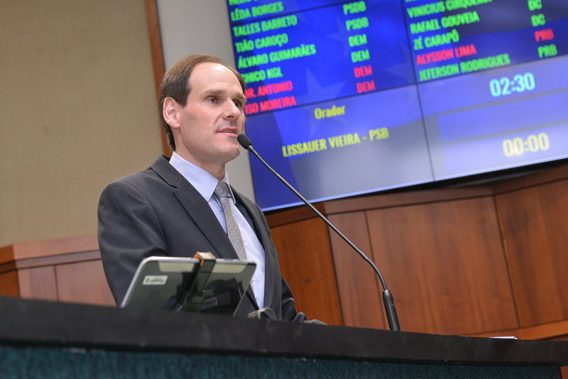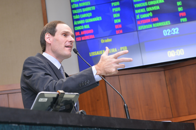 Presidente Lissauer Vieira na tribuna Denise Xavier Lemes