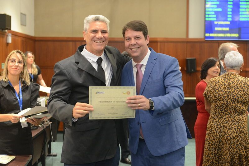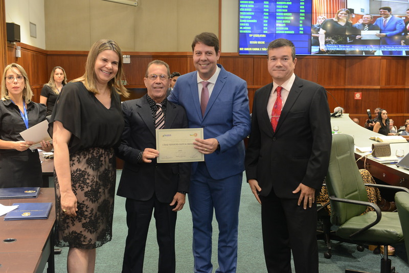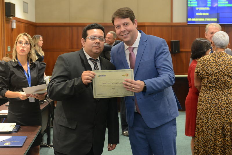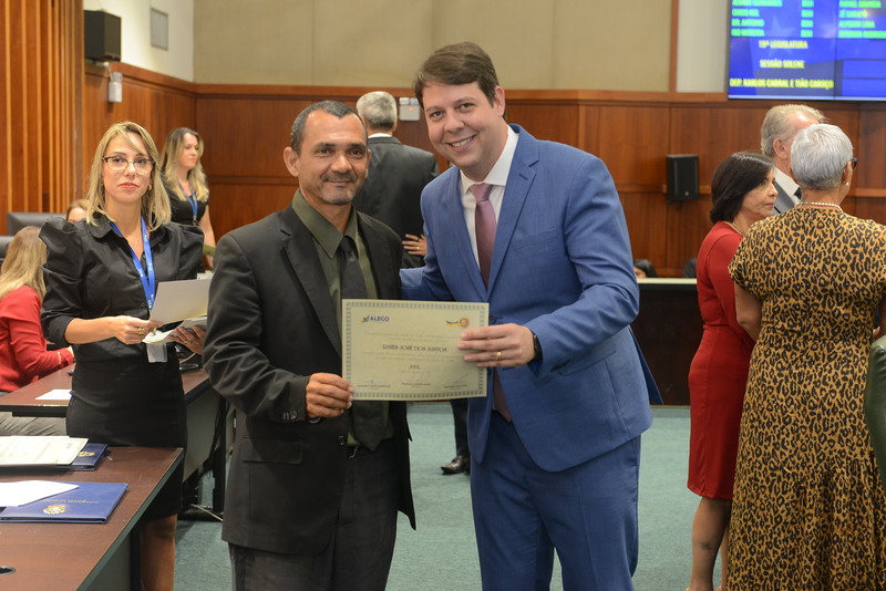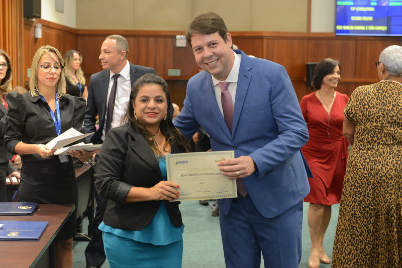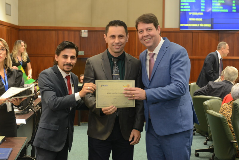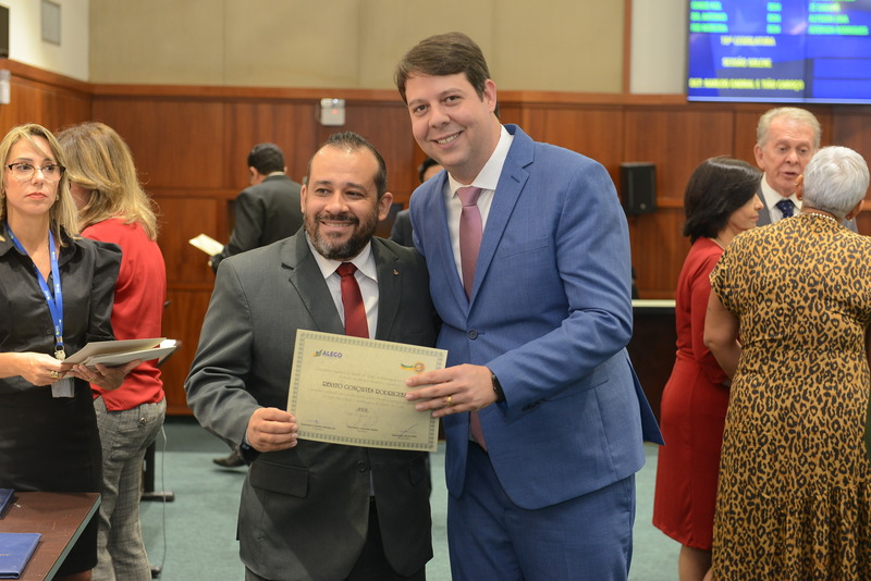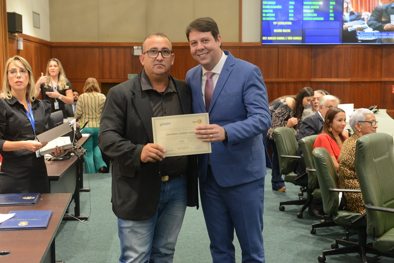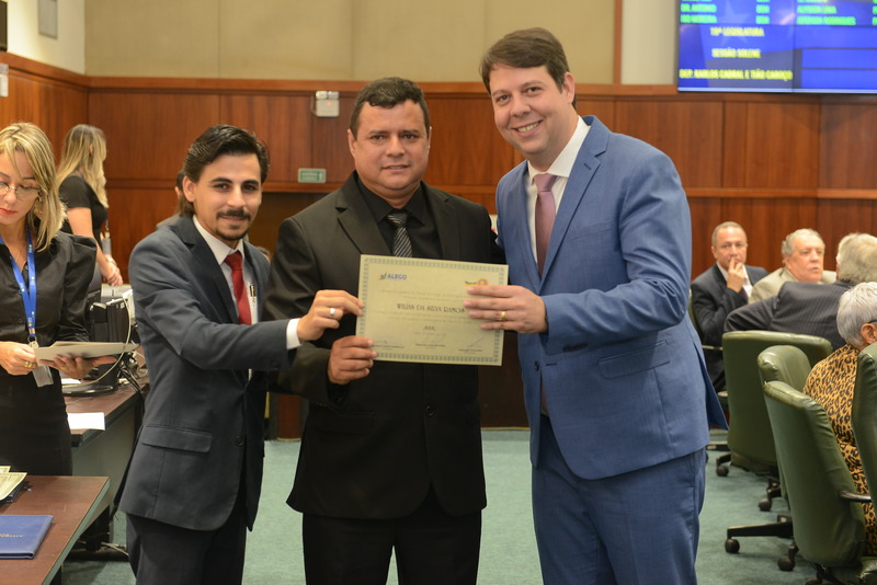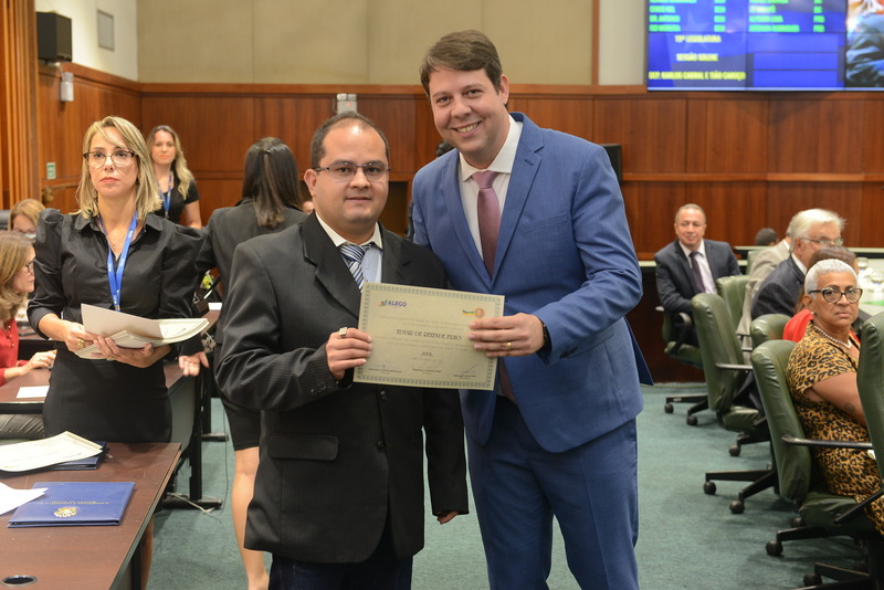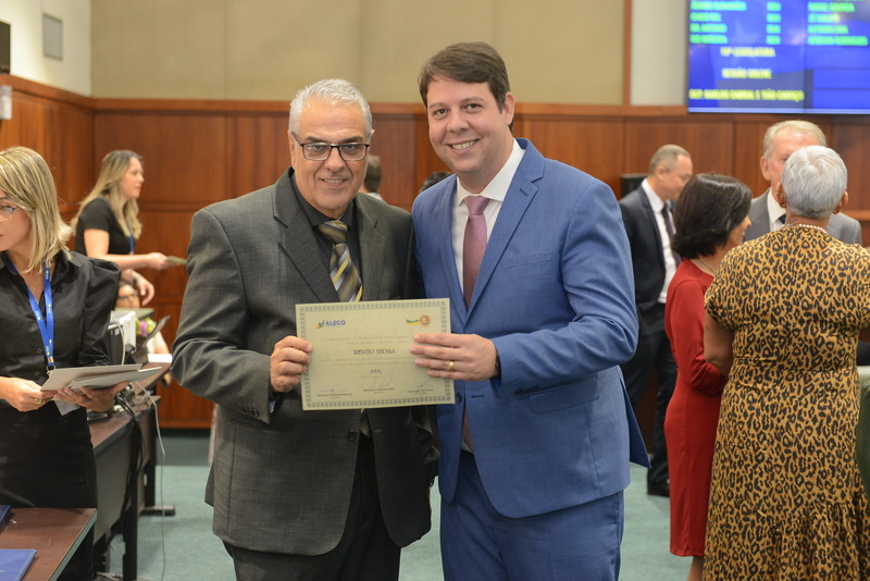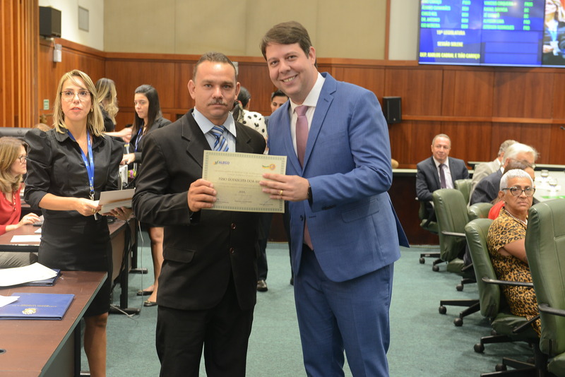 Sessão Especial para entrega de Título de Cidadania Goiana e entrega de Certificado do Mérito Legislativo a agentes de proteção. Ruber Couto