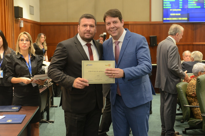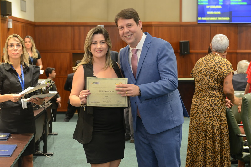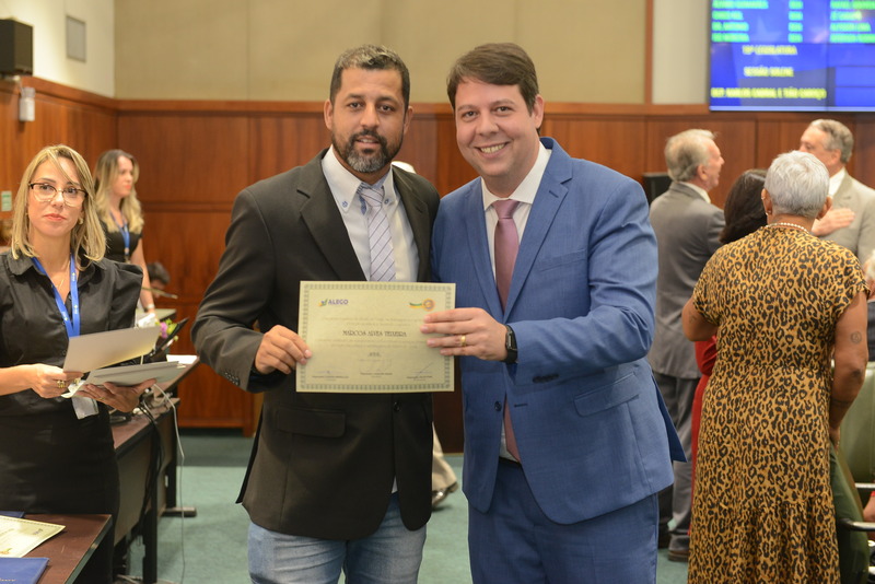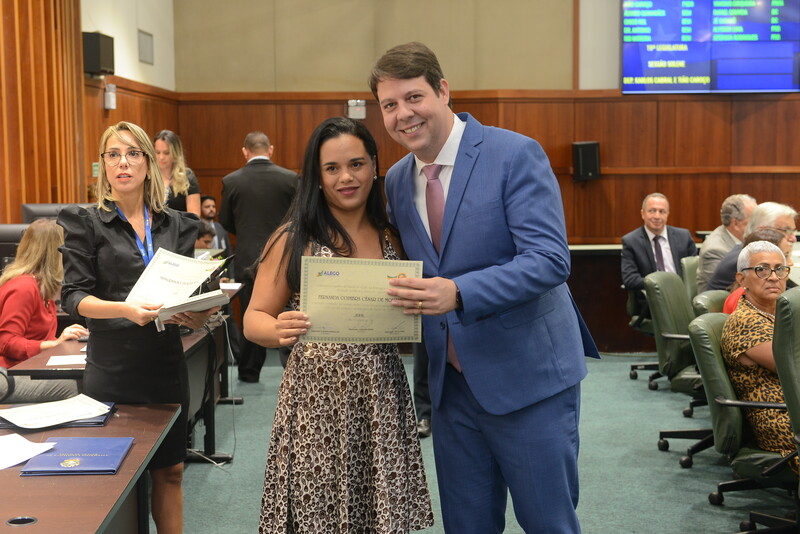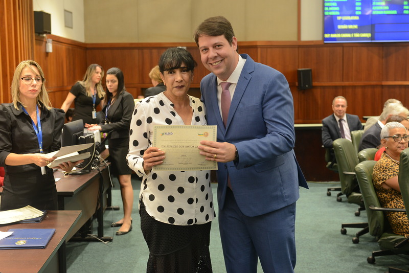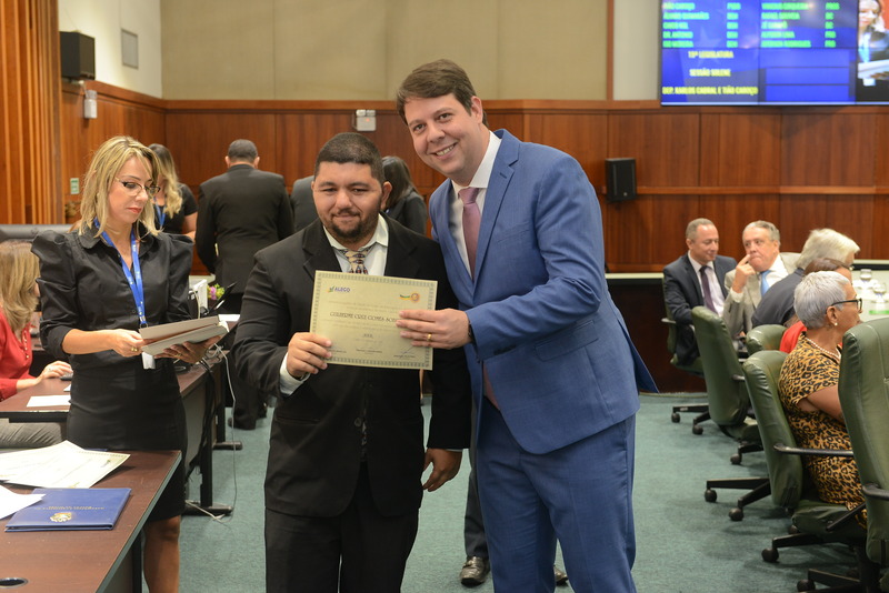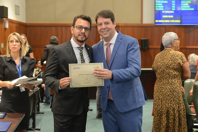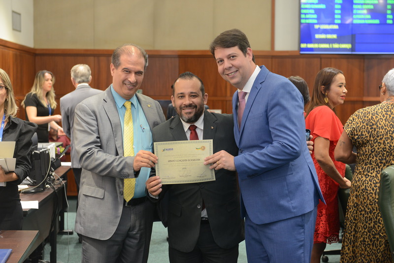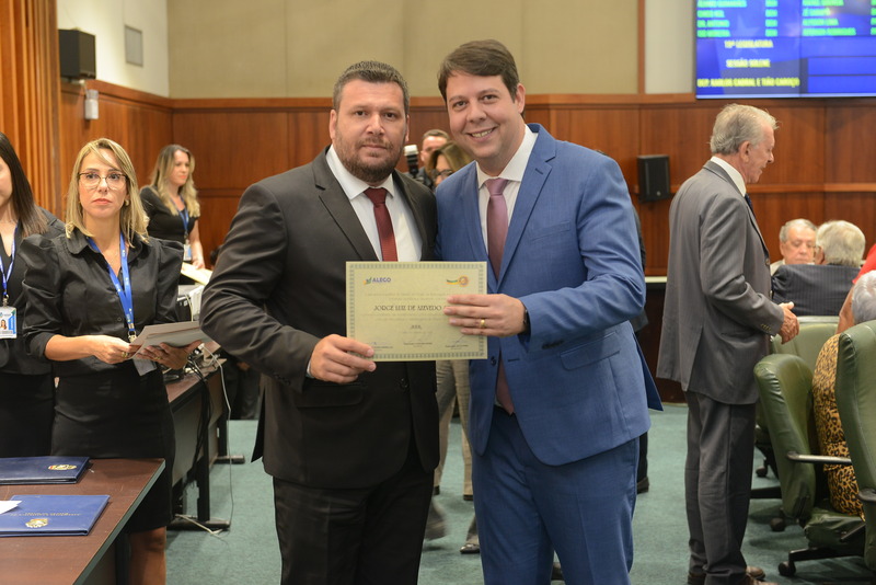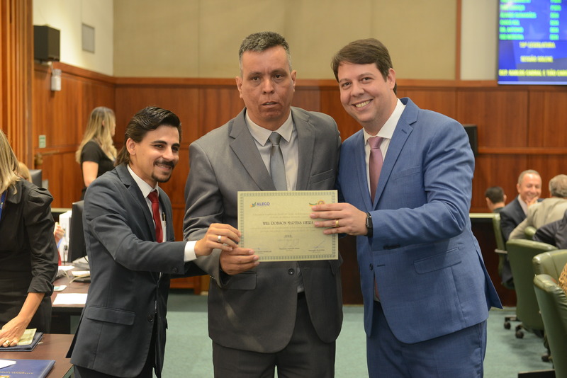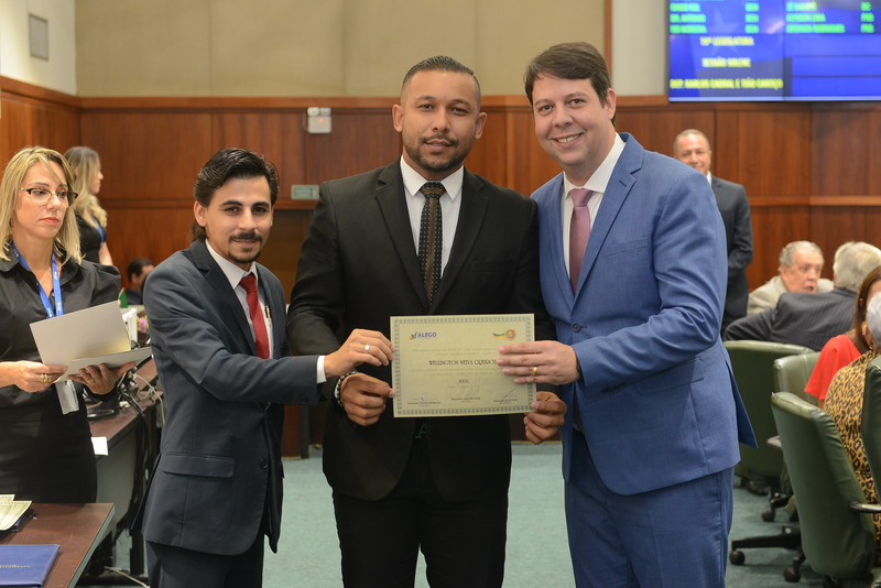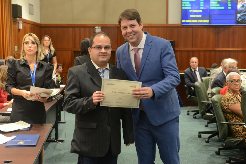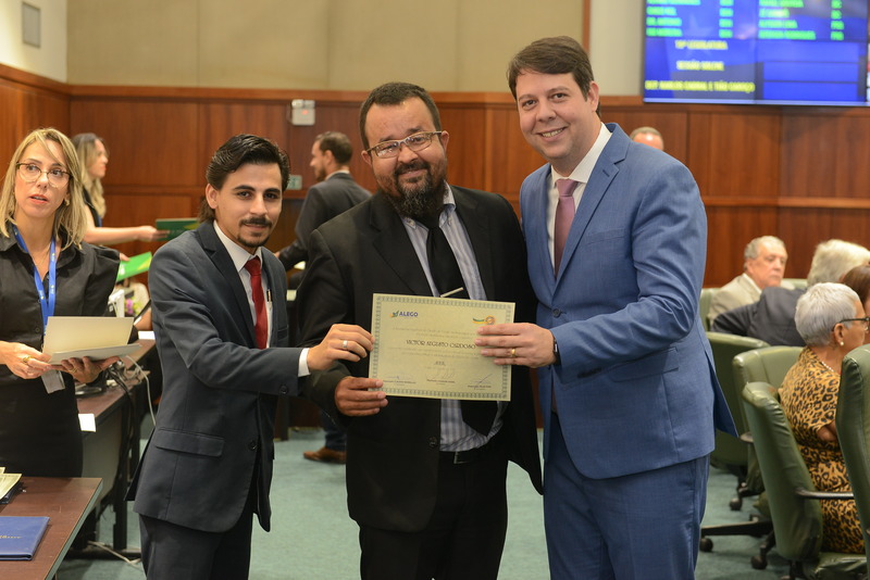 Sessão Especial para entrega de Título de Cidadania Goiana e entrega de Certificado do Mérito Legislativo a agentes de proteção. Ruber Couto