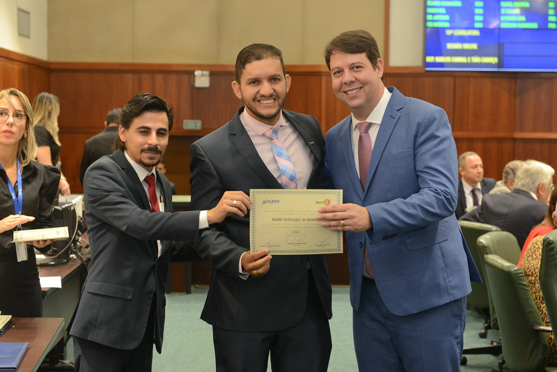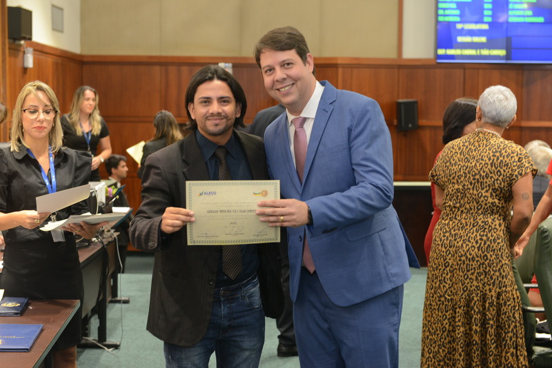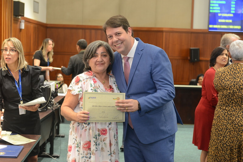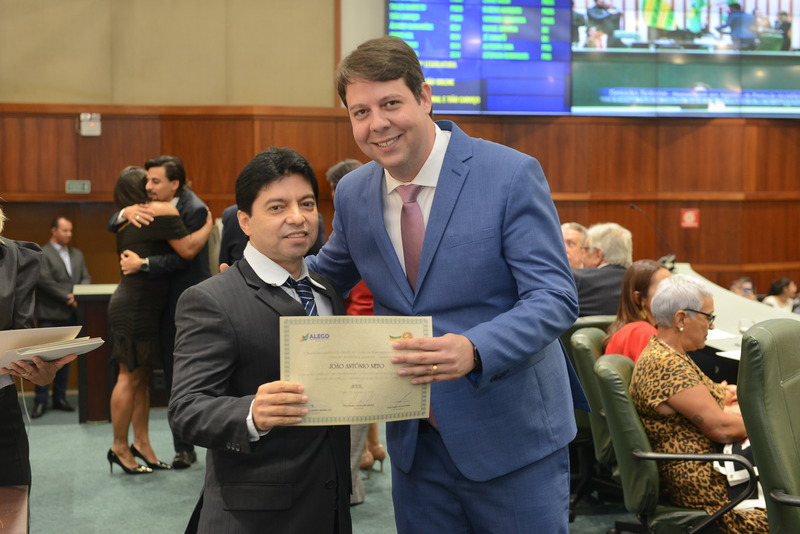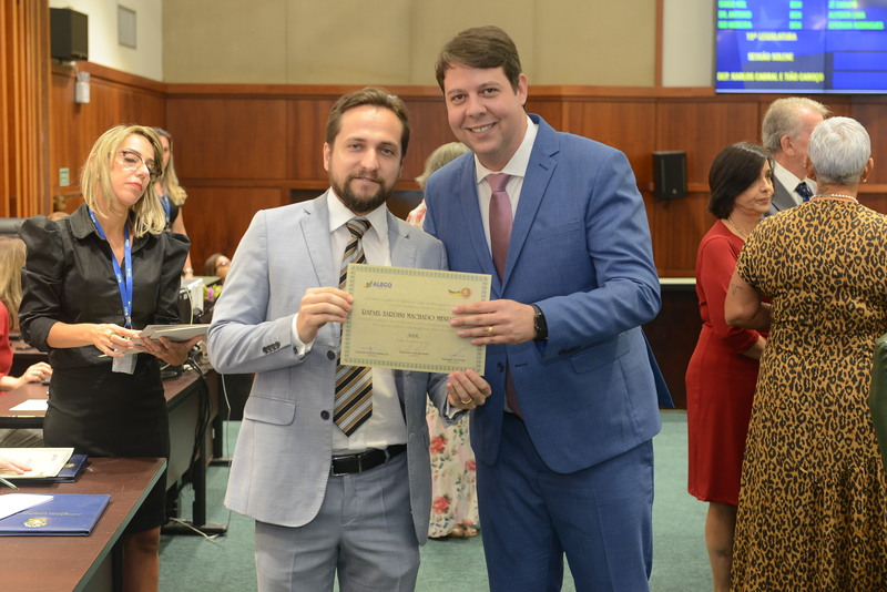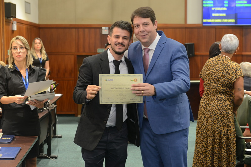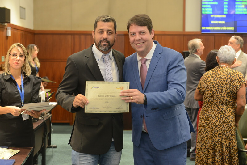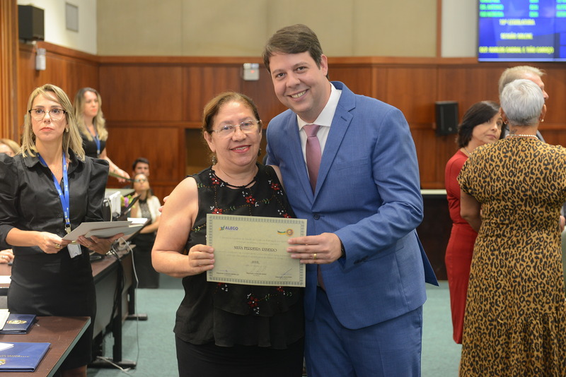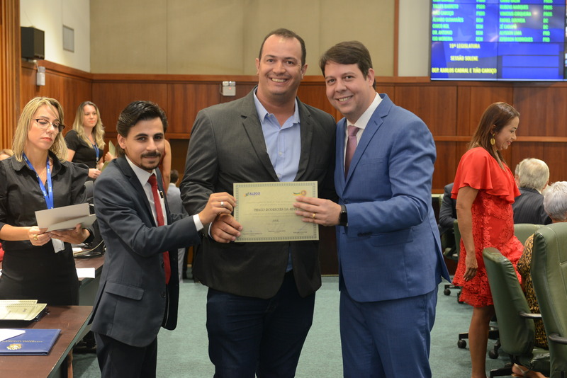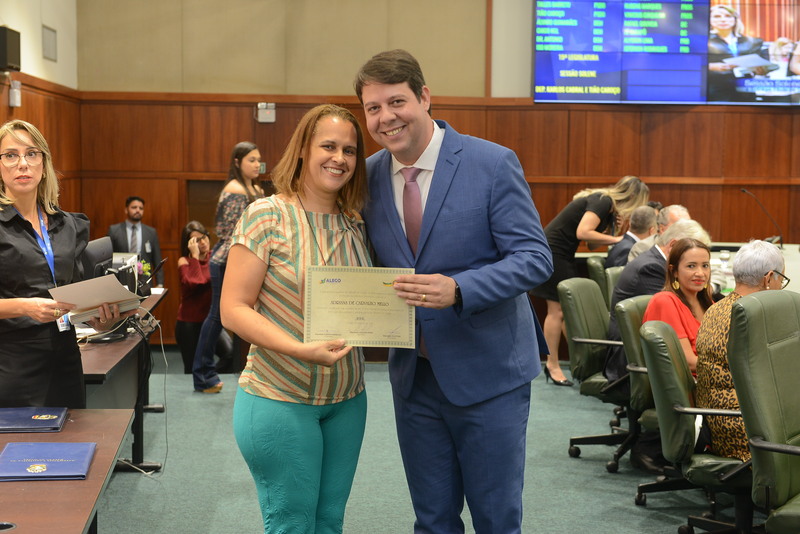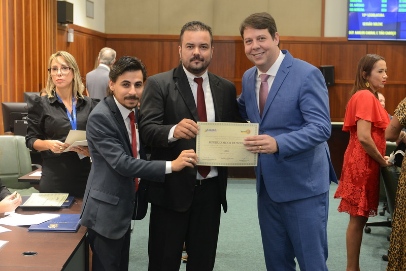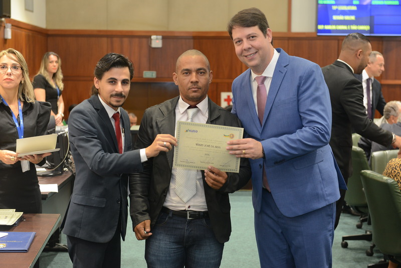 Sessão Especial para entrega de Título de Cidadania Goiana e entrega de Certificado do Mérito Legislativo a agentes de proteção. Ruber Couto