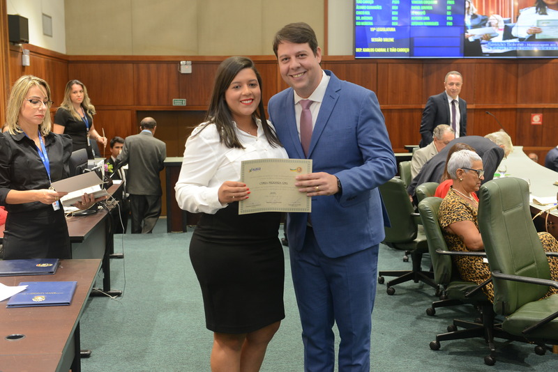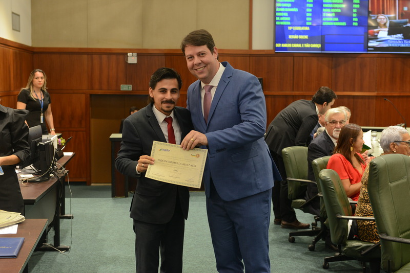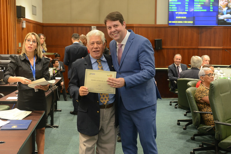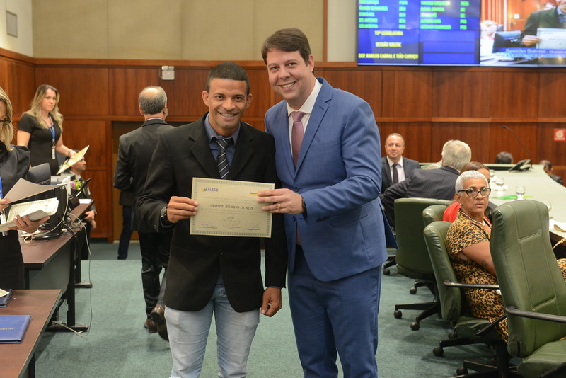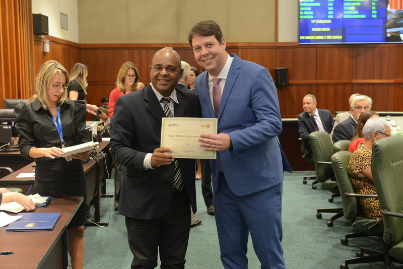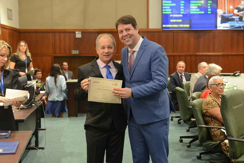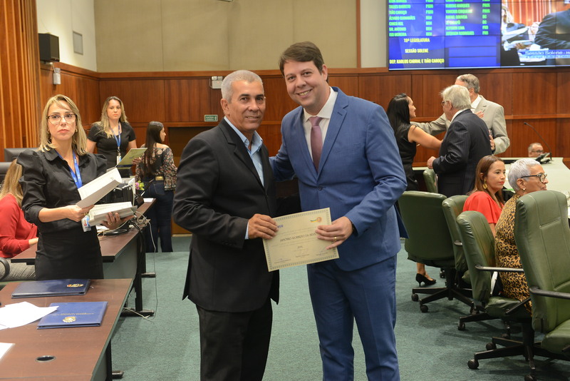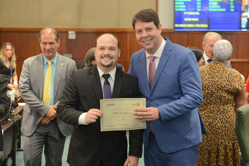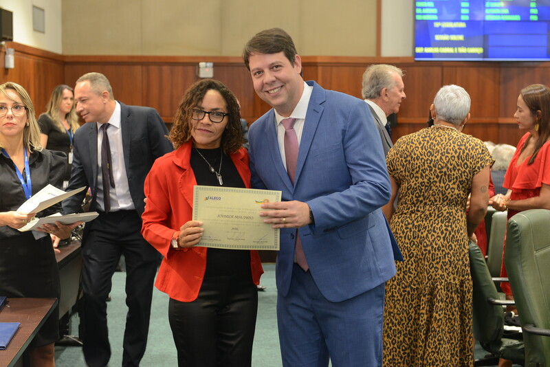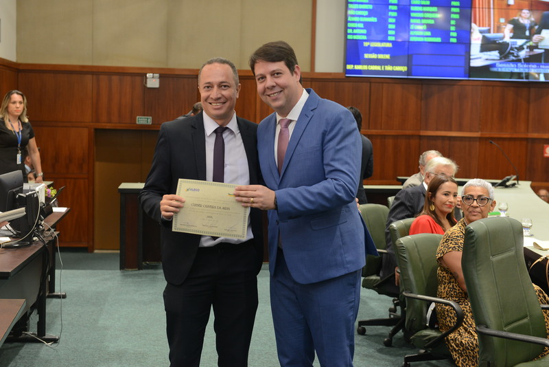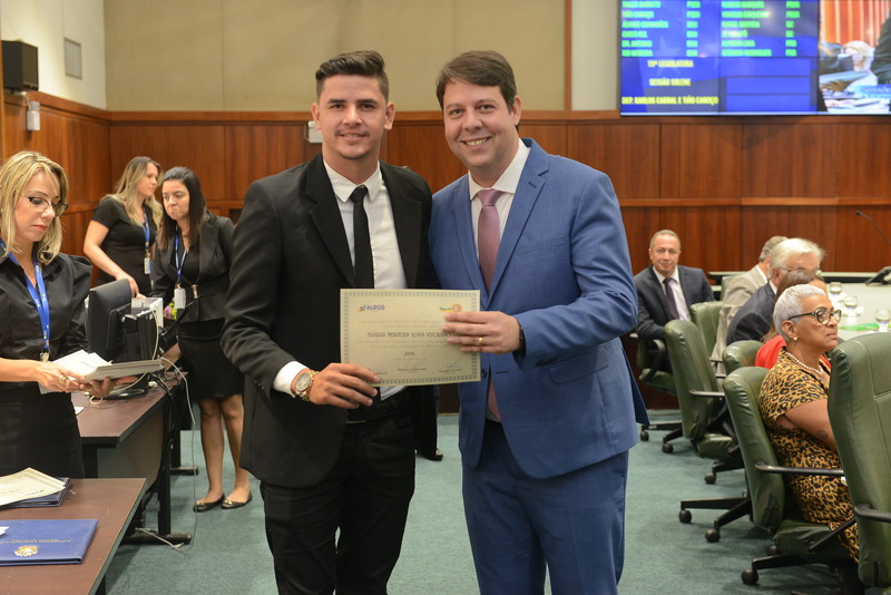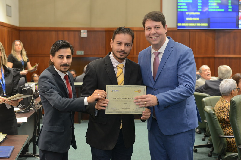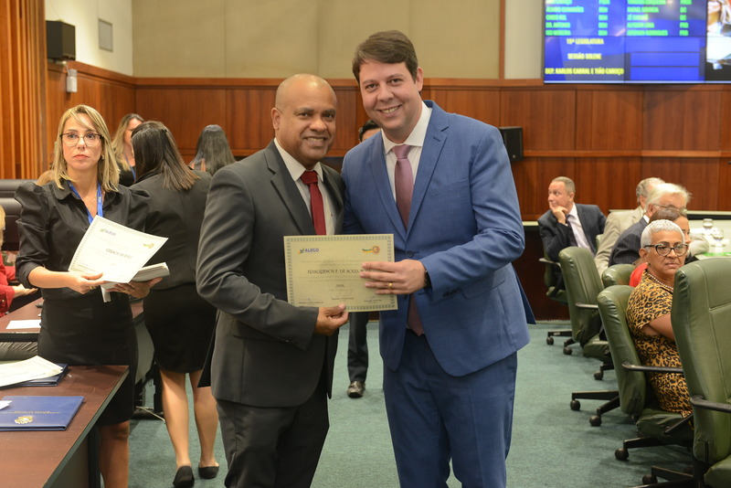 Sessão Especial para entrega de Título de Cidadania Goiana e entrega de Certificado do Mérito Legislativo a agentes de proteção. Ruber Couto