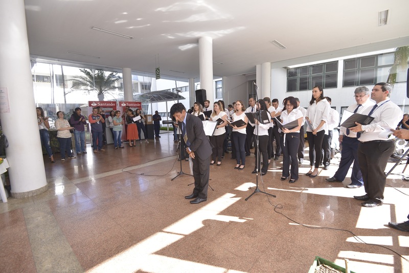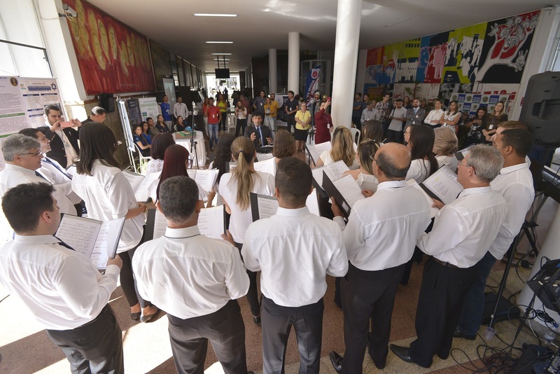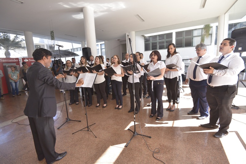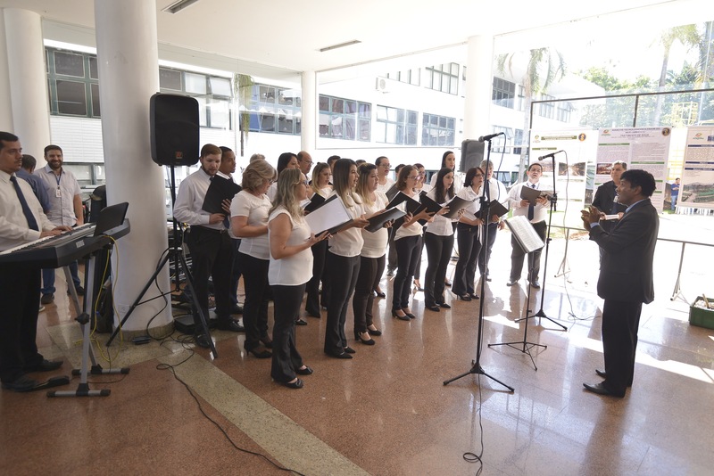 Apresentação do coral, Canto das Águas, e exposições de projetos, como resíduo zero, compostagem da borra de café, dentre outos Denise Xavier