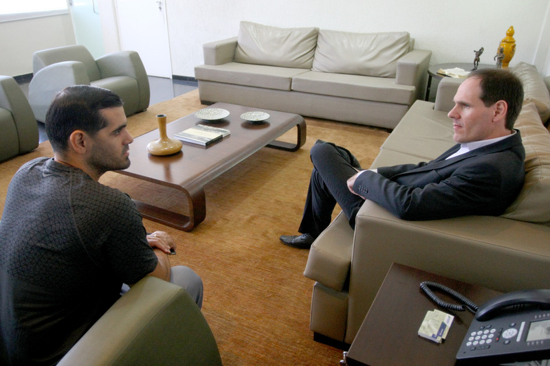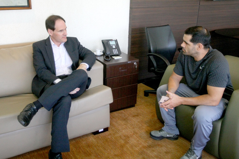 Presidente Lissauer Vieira com Márcio Resende, da Federação Goiana de Fisiculturismo Carlos Costa
