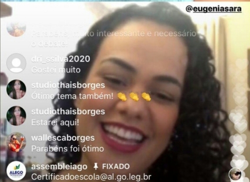 Palestra na Escola do Legislativo ( Live ) Hellenn Reis ( Print da tela)