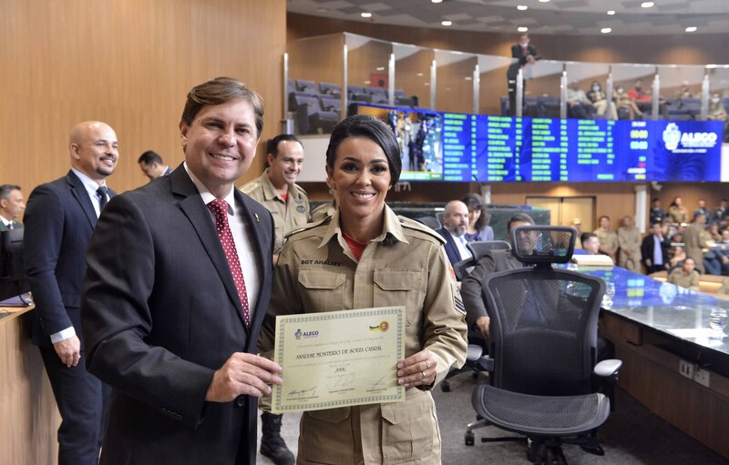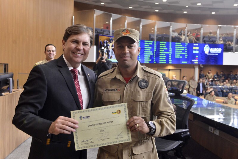 Entrega da Medalha do Mérito Legislativo Pedro Ludovico Teixeira e de entrega do Certificado do Mérito Legislativo em homenagem aos Analistas Governamentais e ao Corpo de Bombeiros Militar Carlos Costa