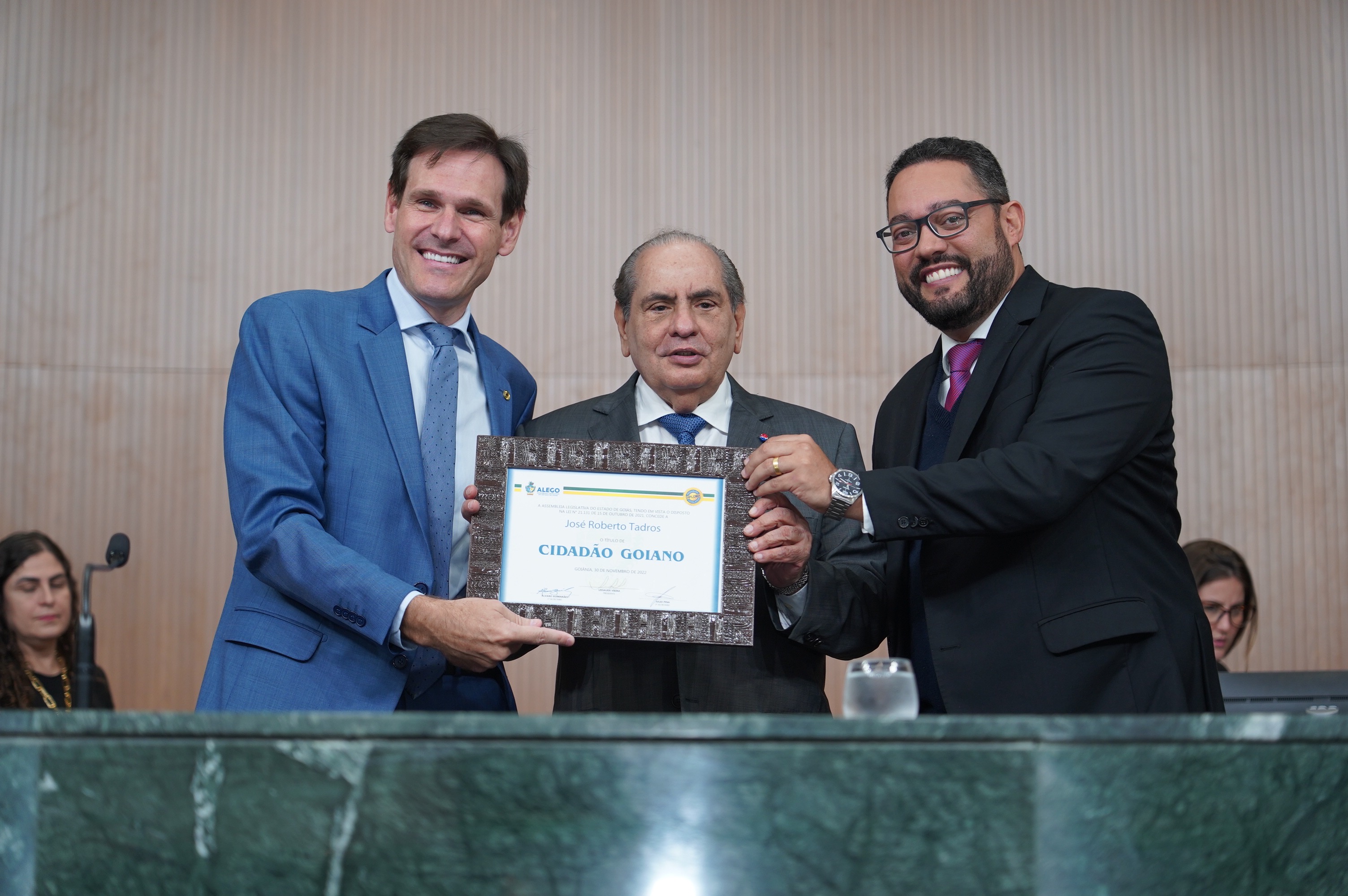 Sessão solene de entrega de Título de Cidadão Goiano ao presidente da Confederação Nacional de Bens, Serviços e Turismo Maykon Cardoso