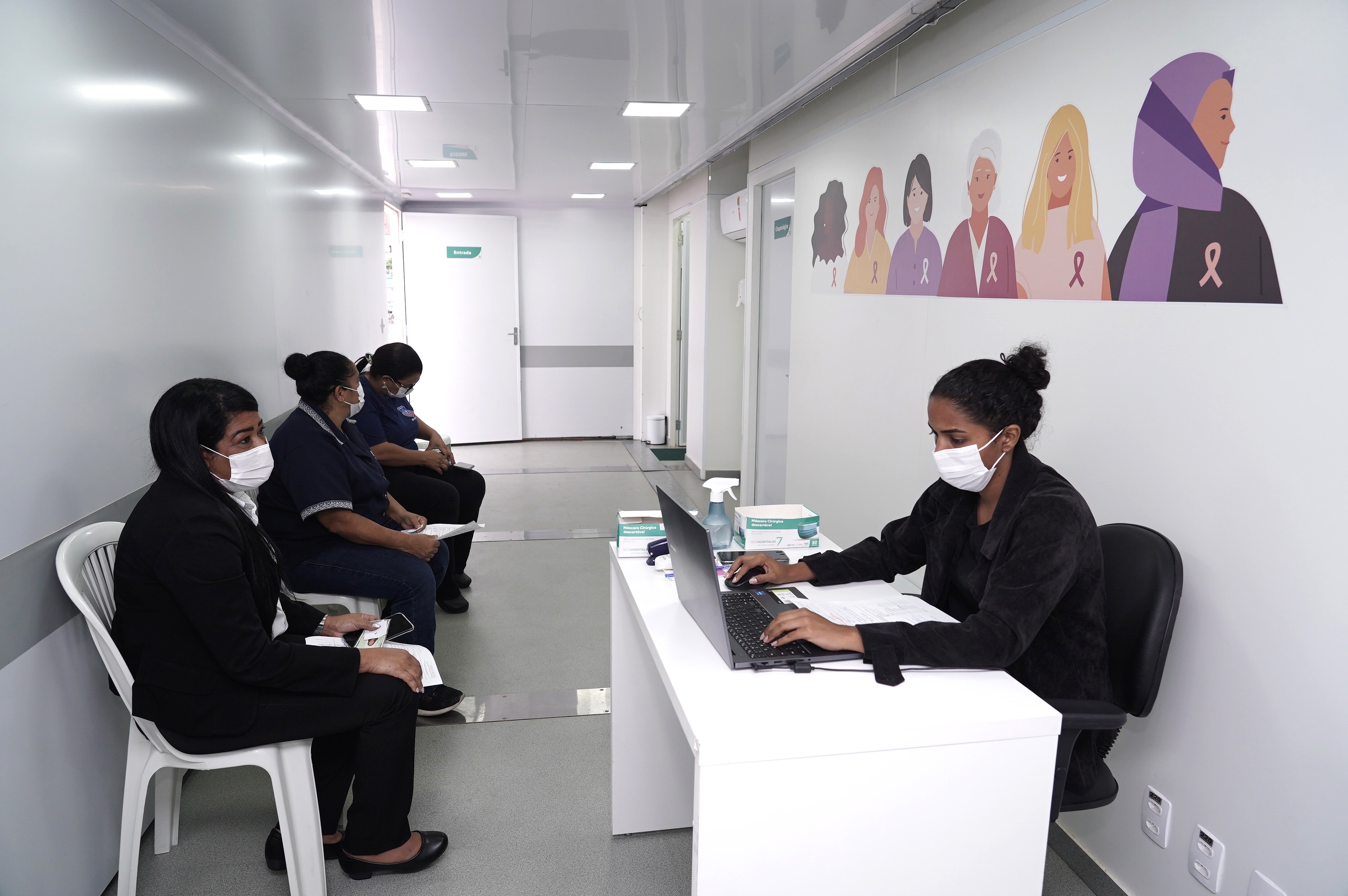 Carreta da saúde atende servidoras para realizar exames gratuitos de mamografia e preventivos de colo de útero Denise Xavier