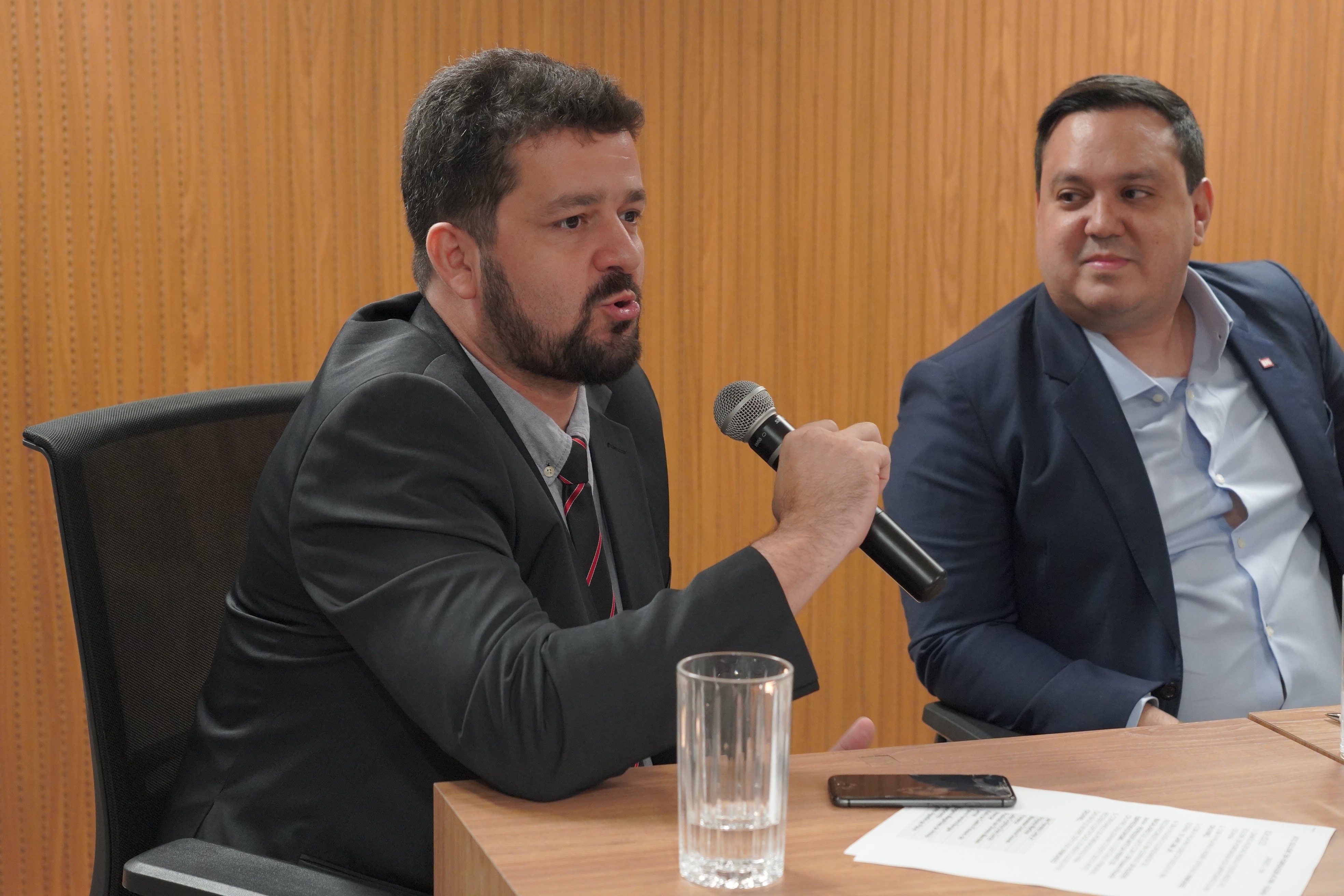Deputados Antônio Gomide e Gugu Nader discursam pela bancada de oposição