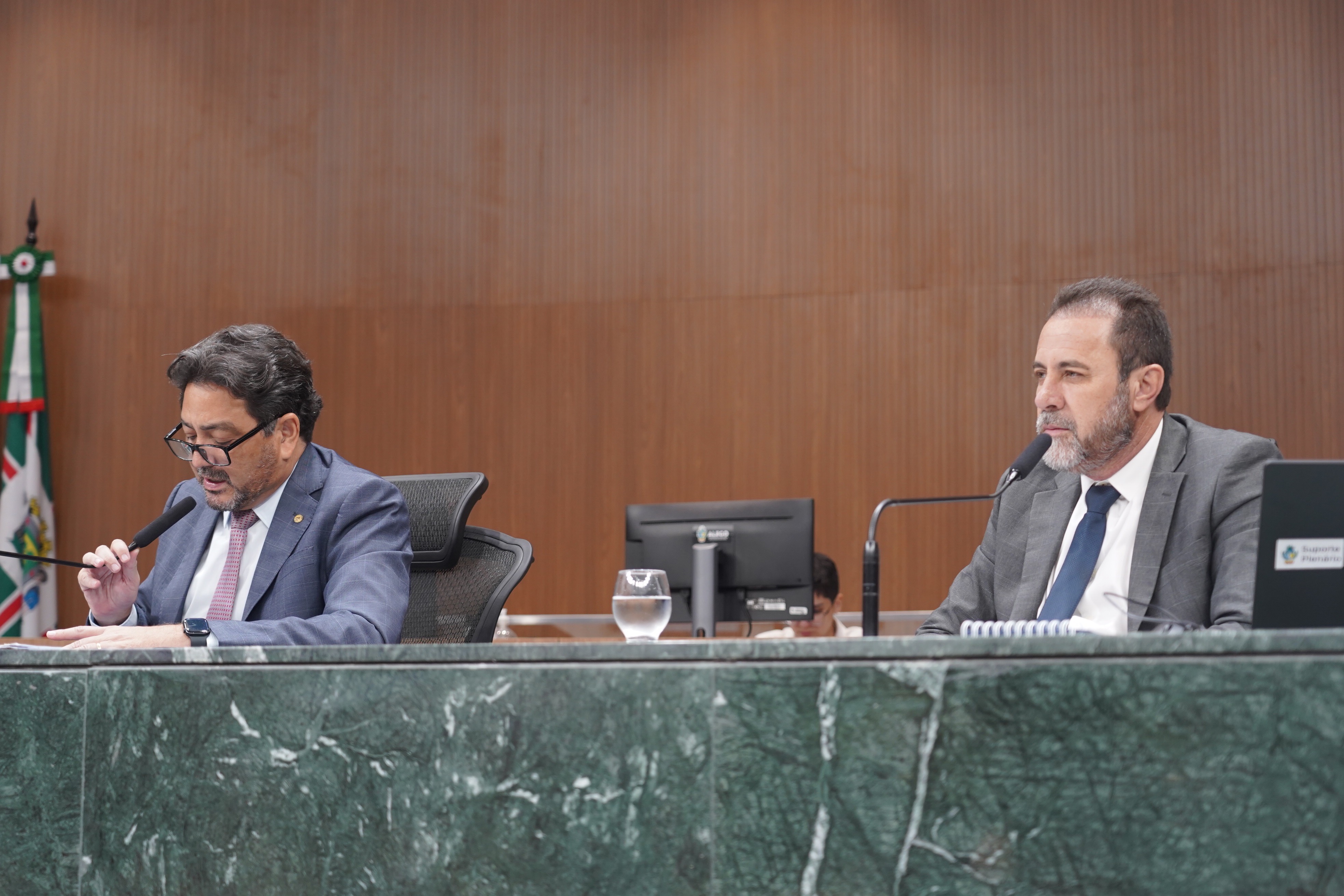 Deputados Antônio Gomide e Gugu Nader discursam pela bancada de oposição
