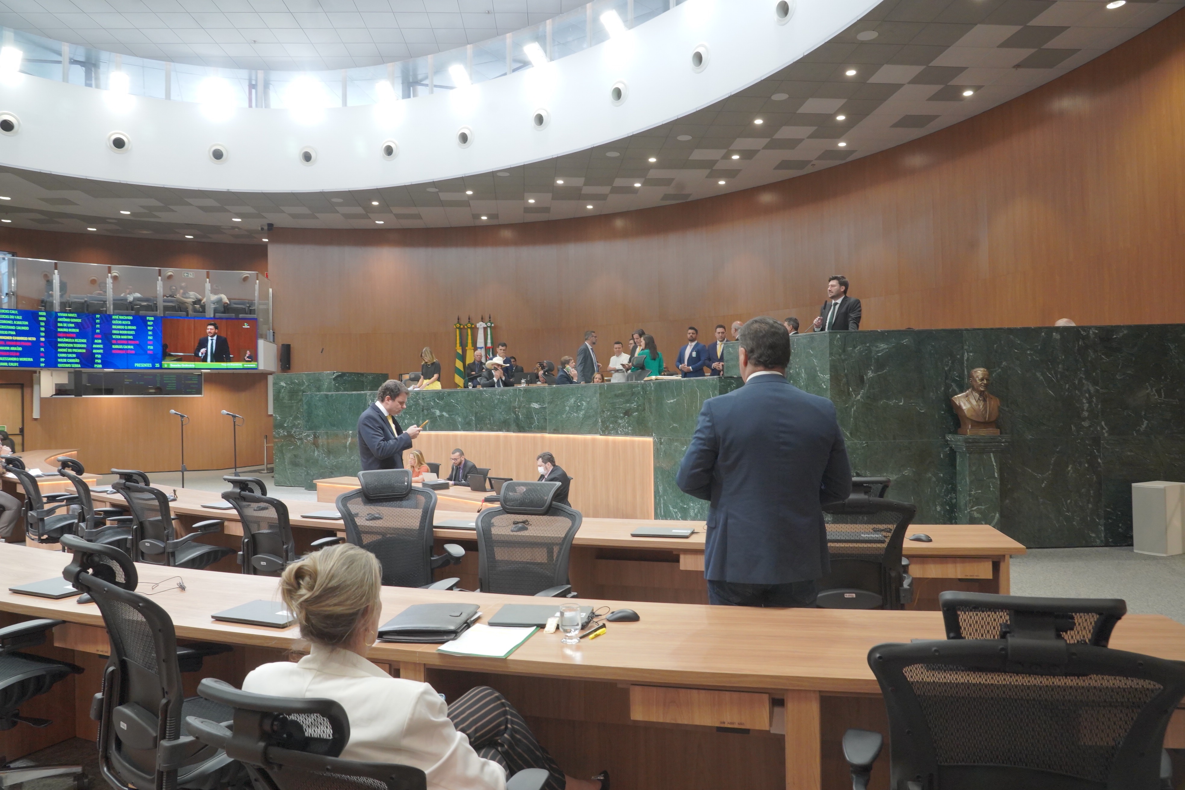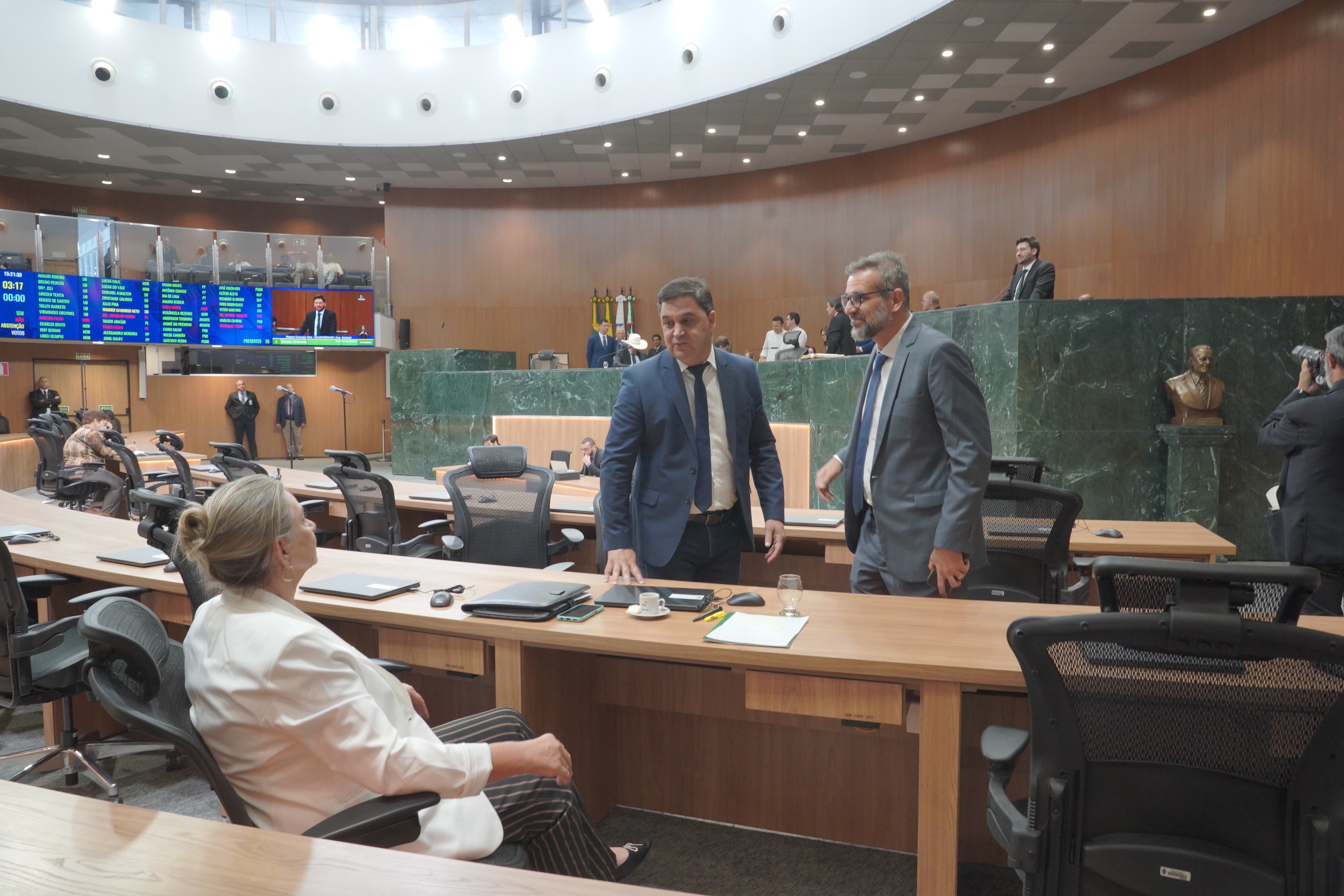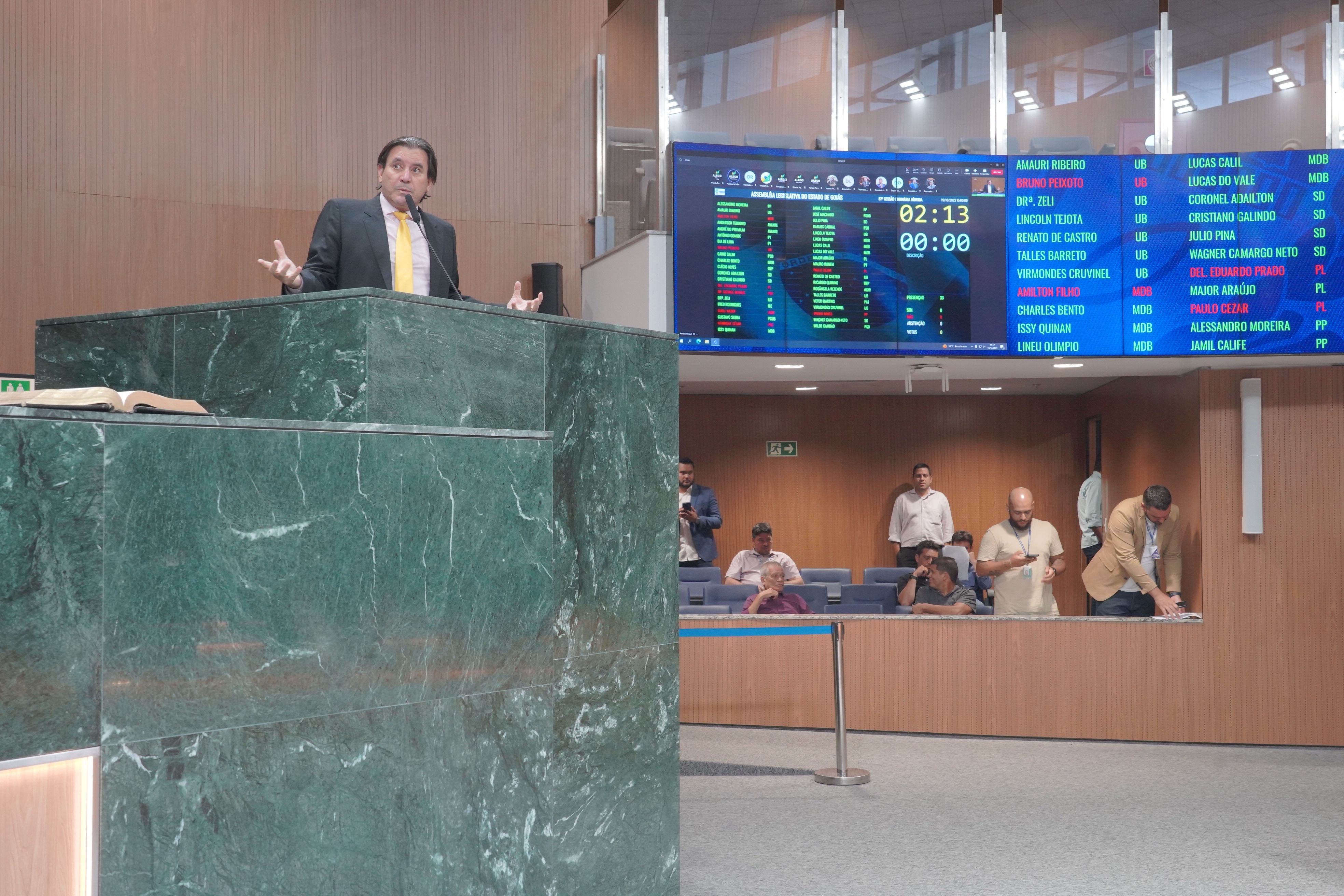 Deputados Antônio Gomide e Gugu Nader discursam pela bancada de oposição