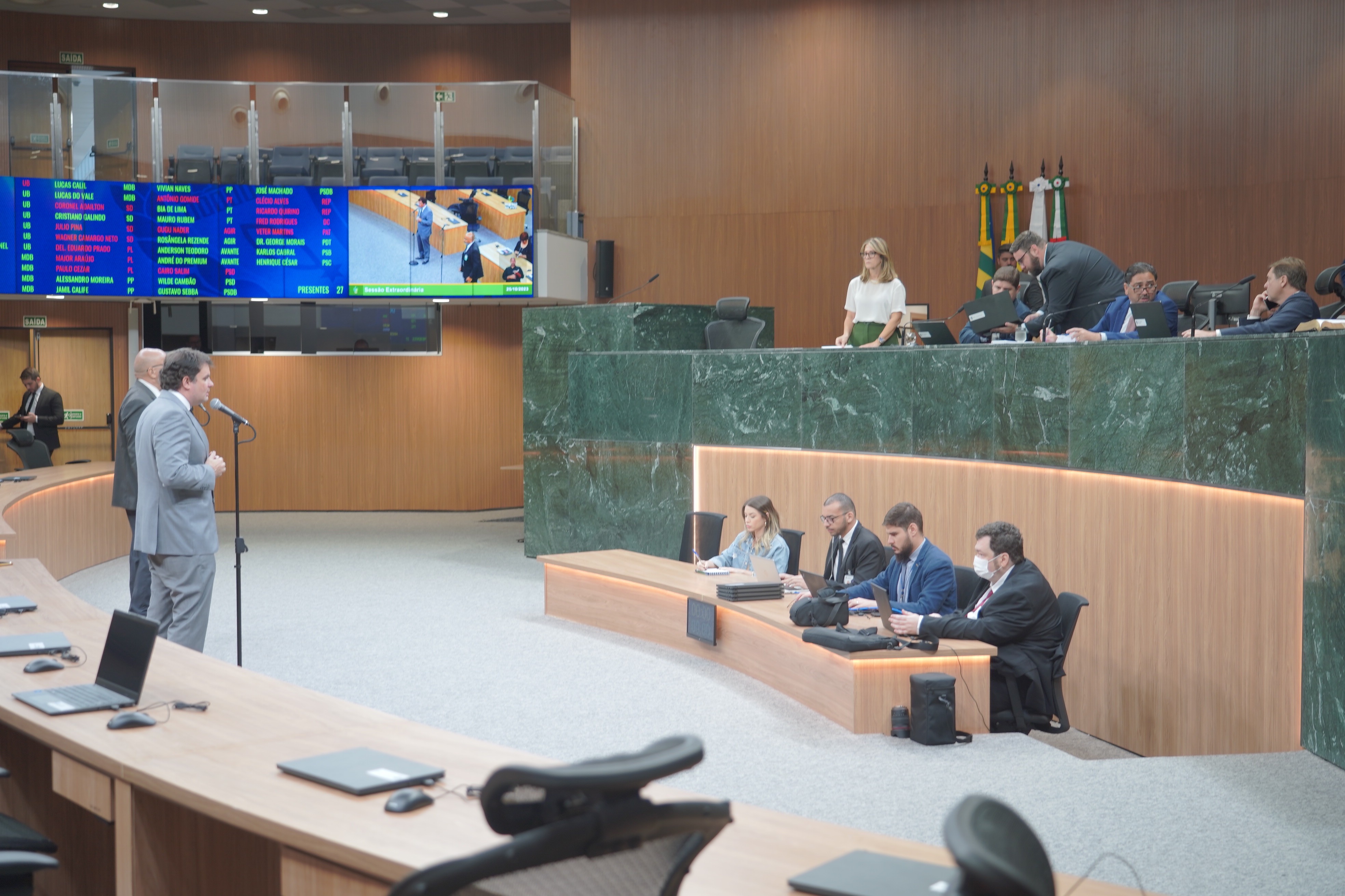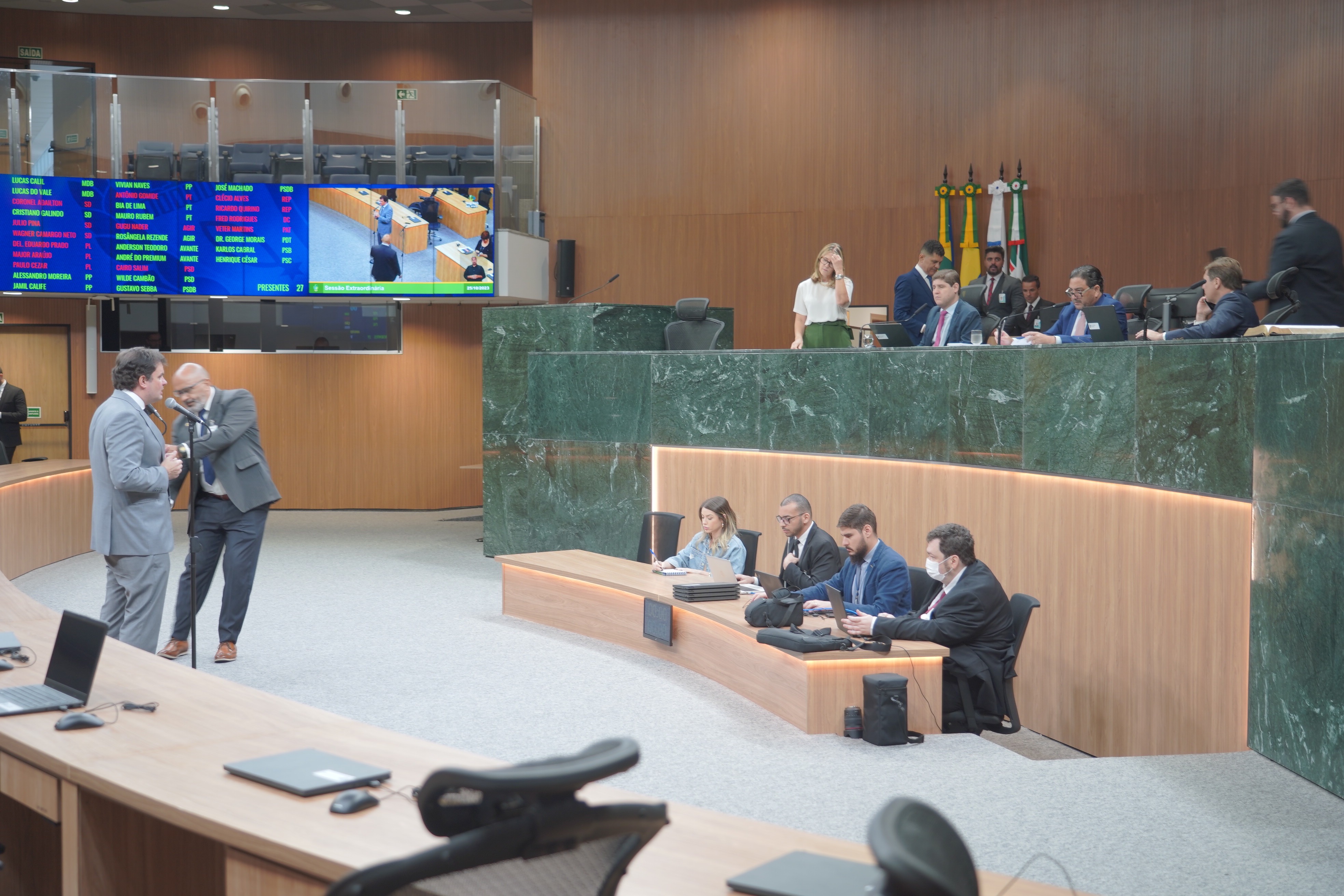 Deputados Antônio Gomide e Gugu Nader discursam pela bancada de oposição