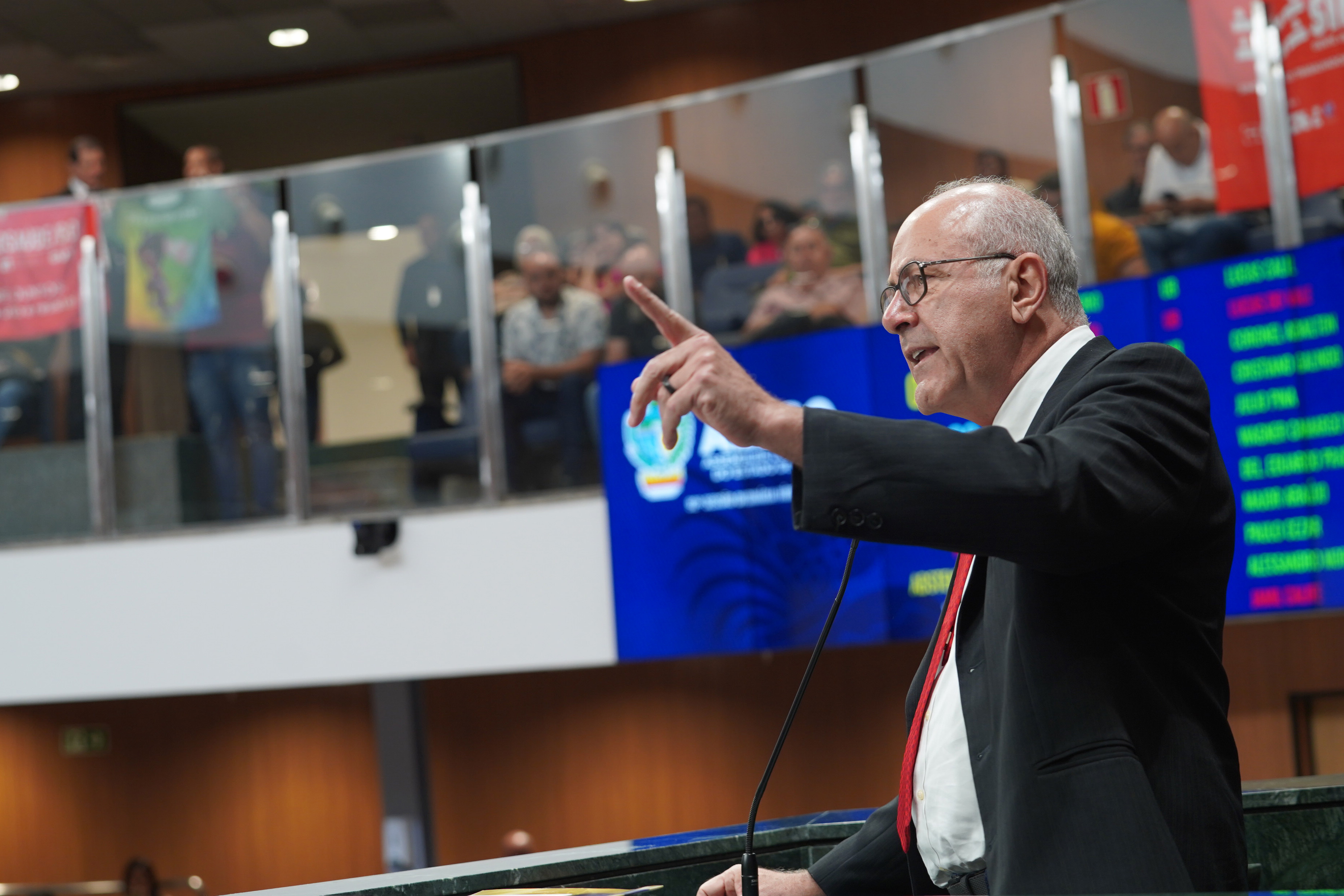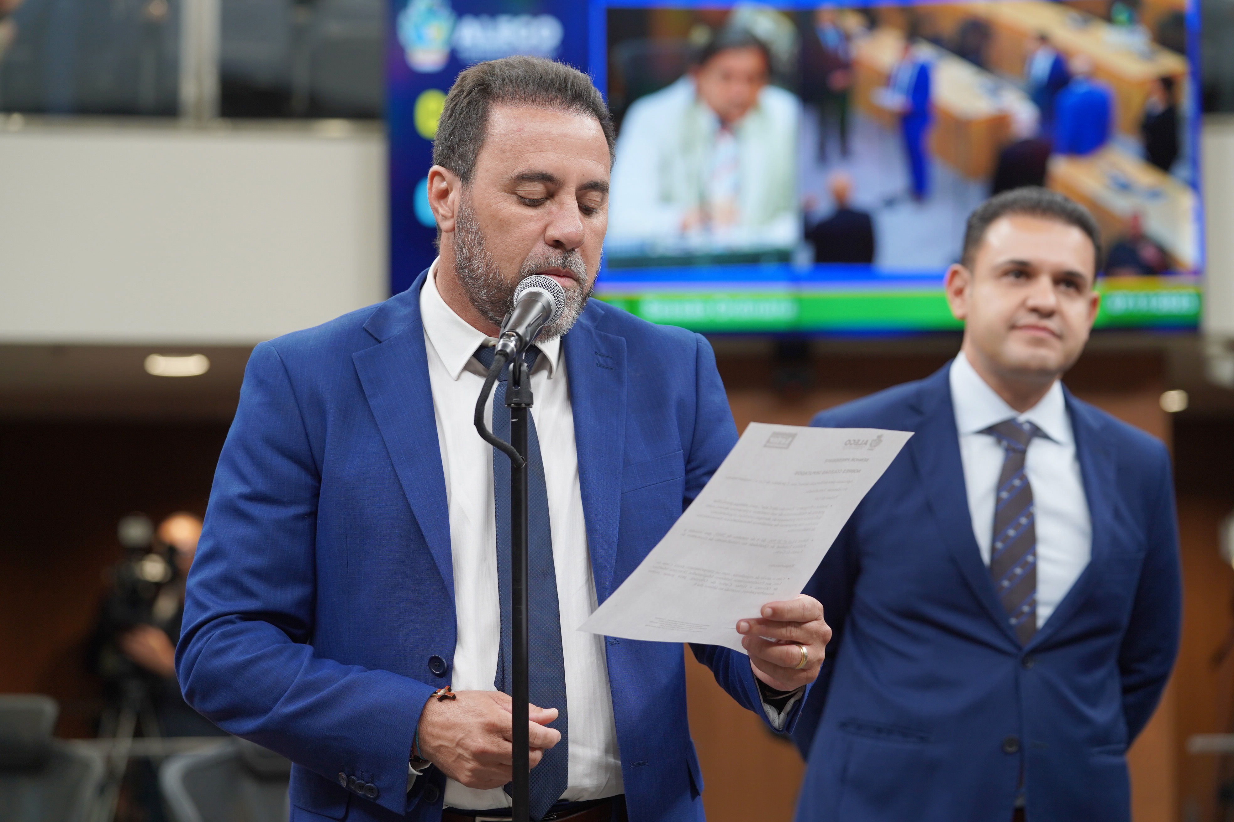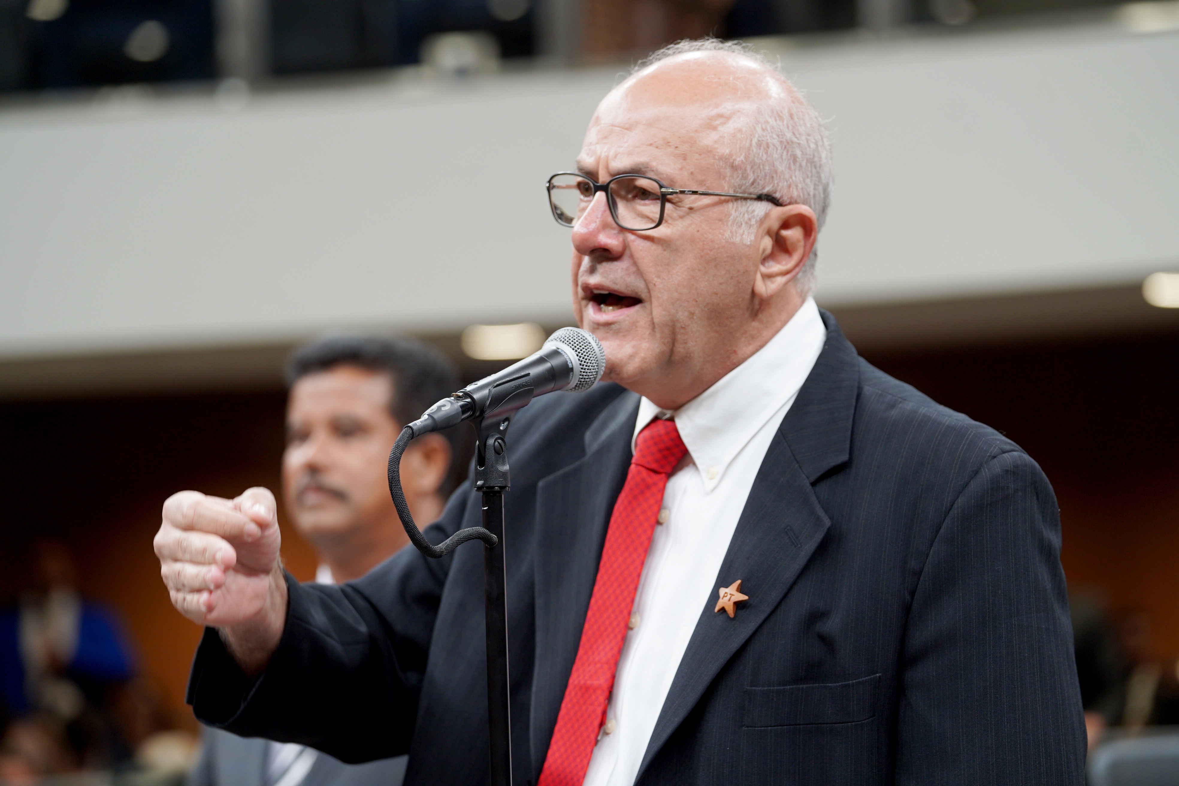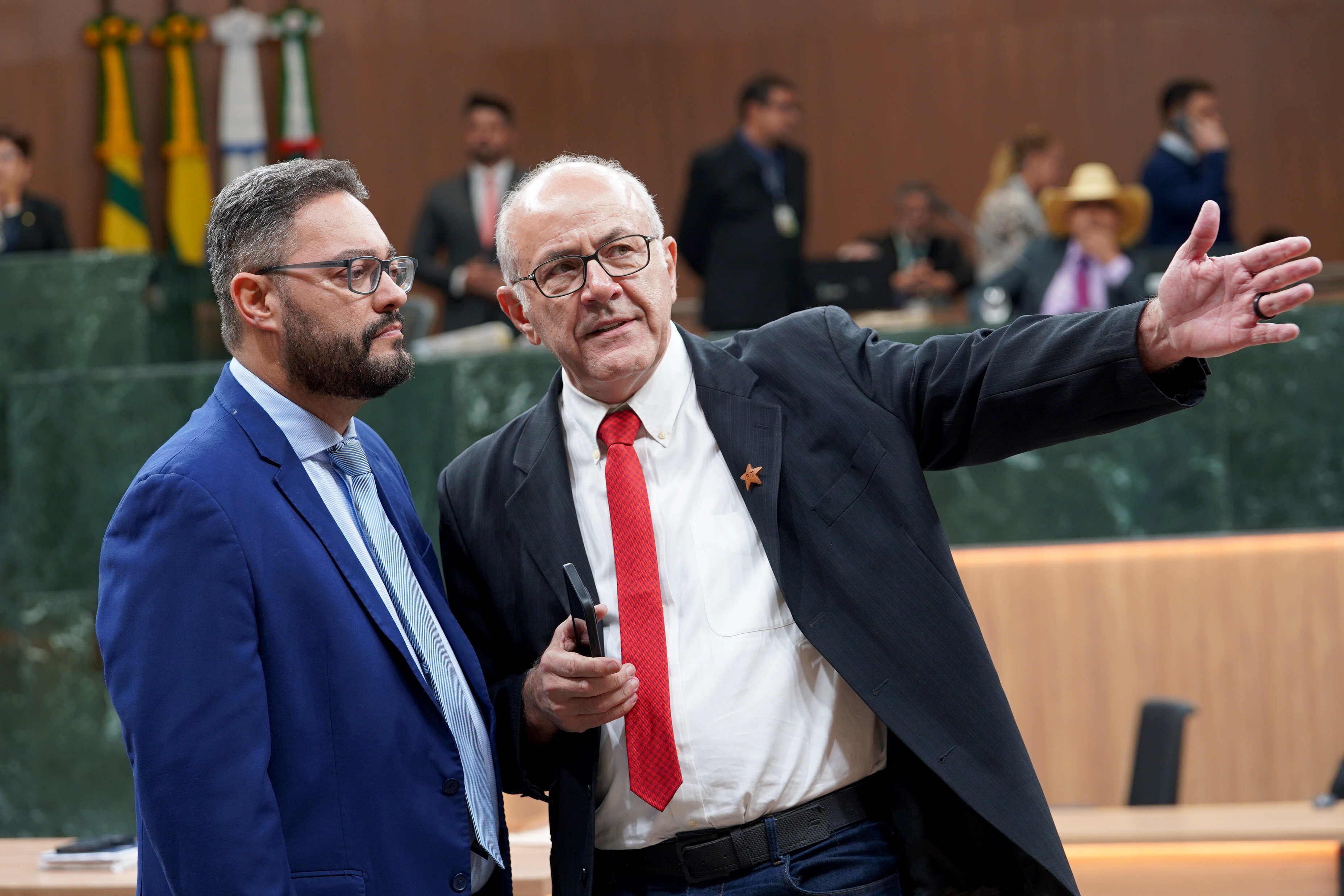 Deputados Antônio Gomide e Gugu Nader discursam pela bancada de oposição