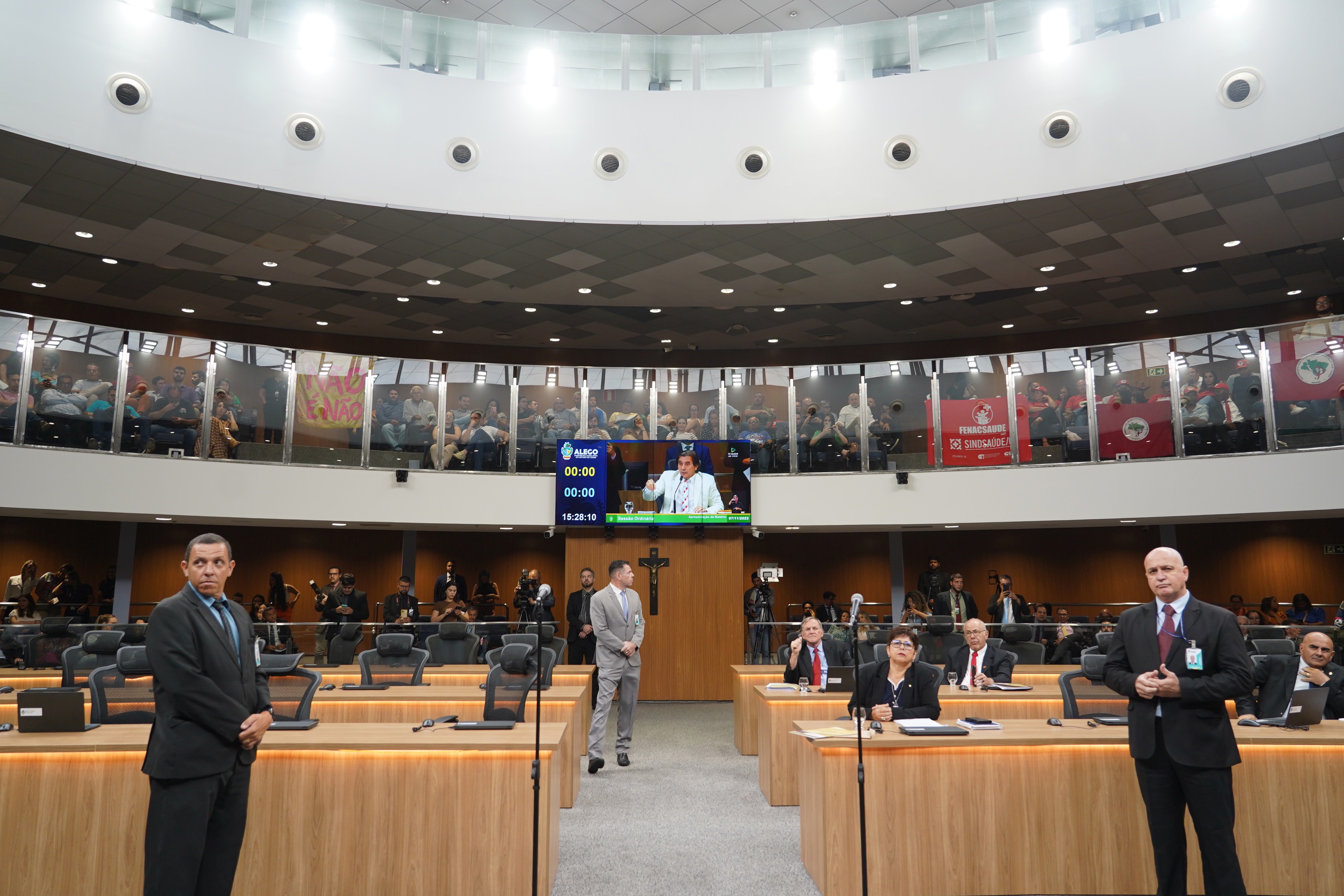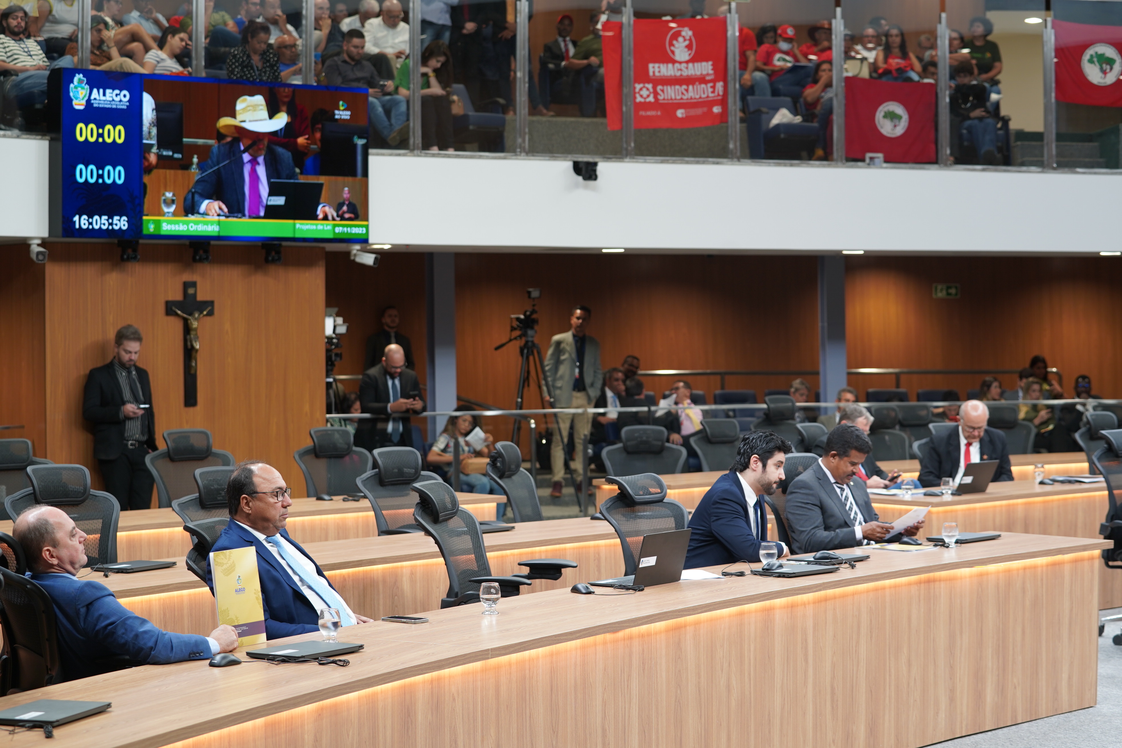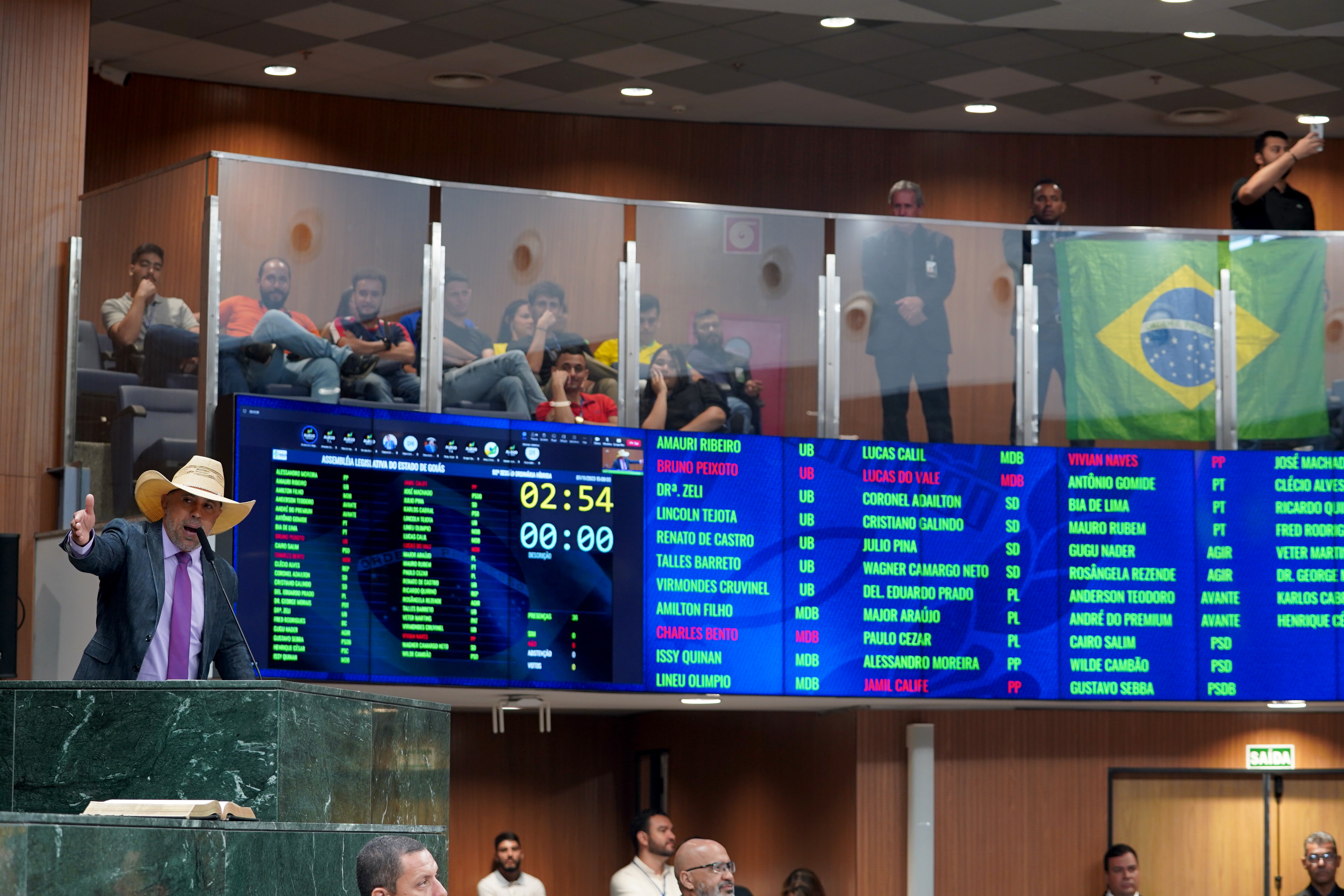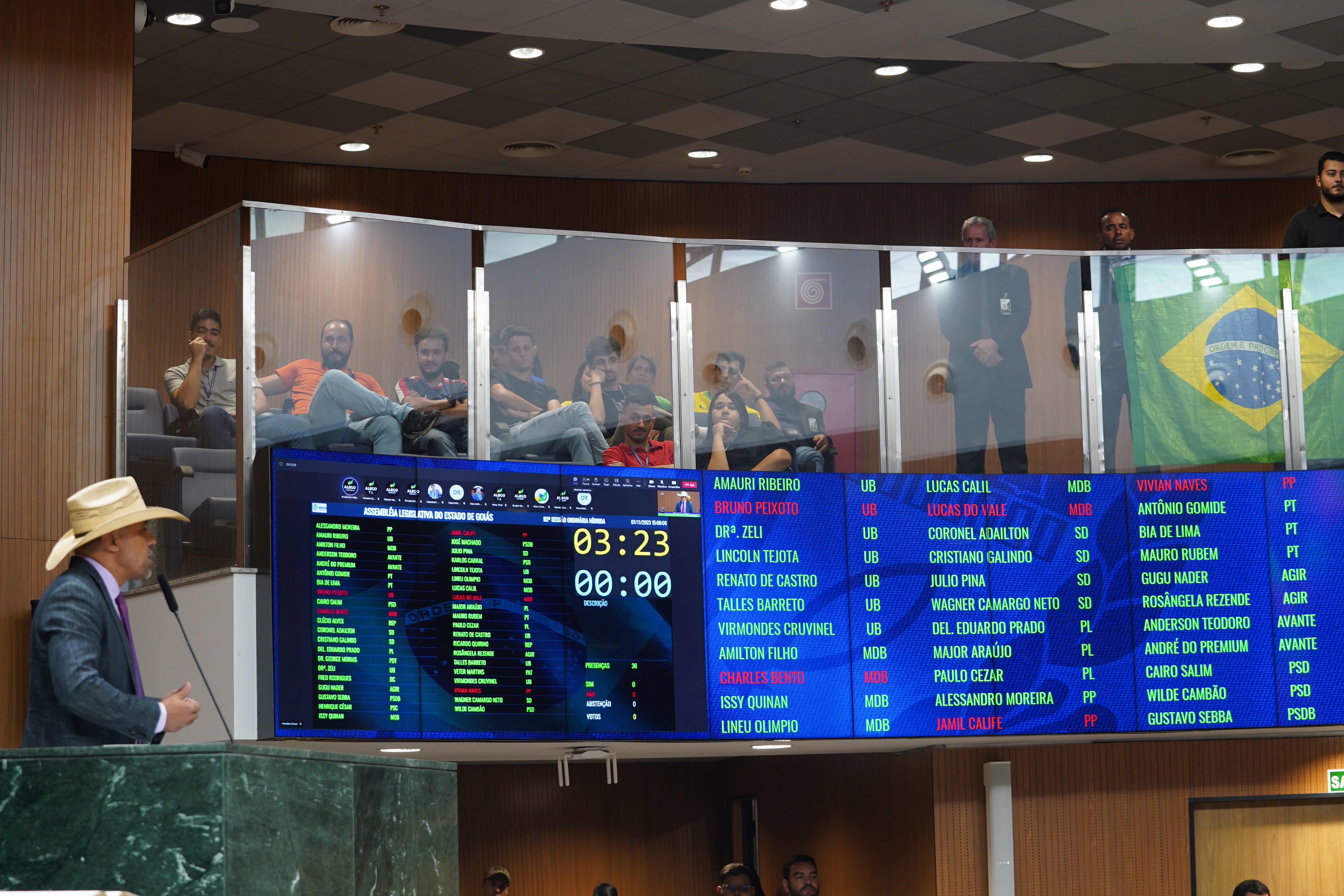 Deputados Antônio Gomide e Gugu Nader discursam pela bancada de oposição