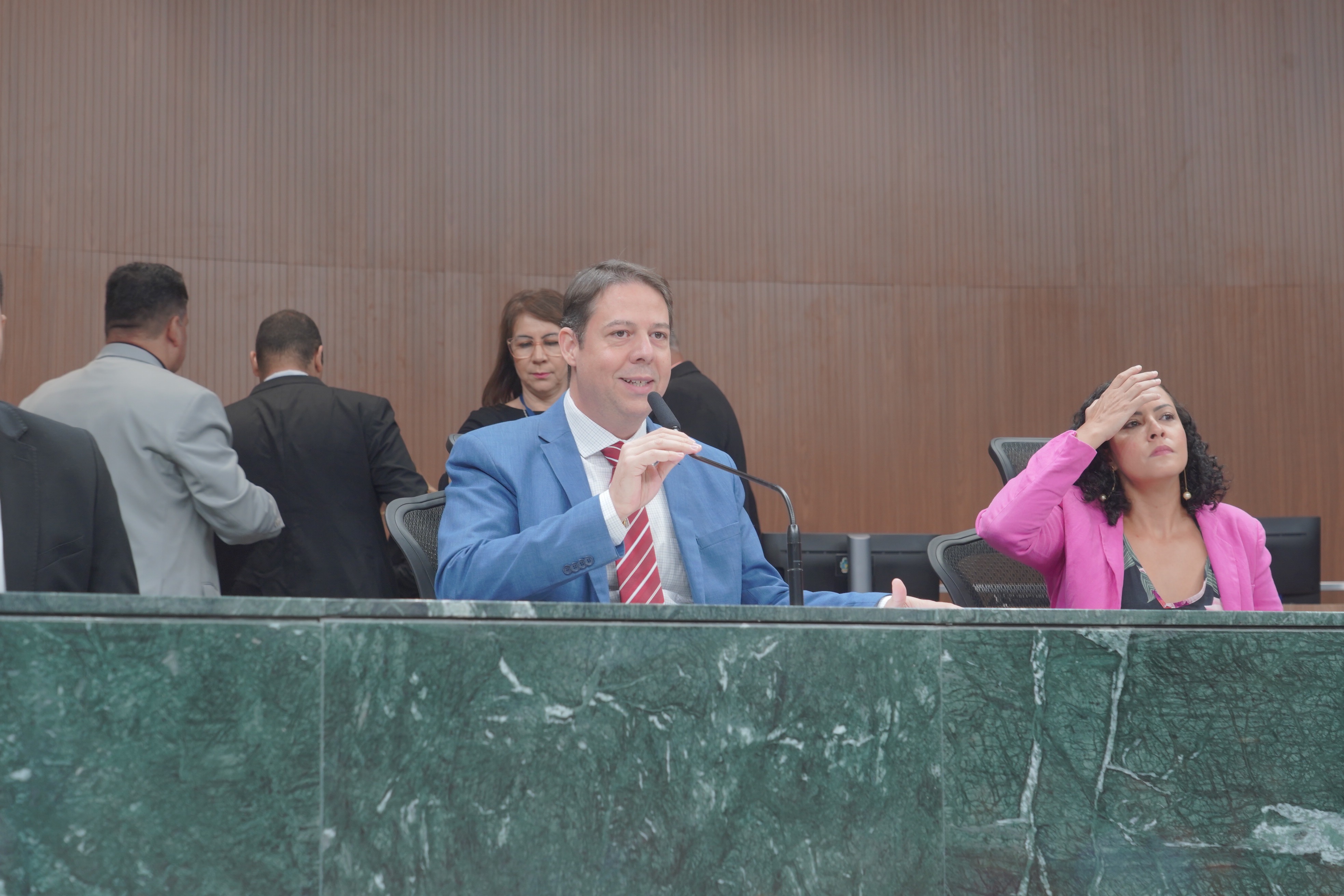 Deputados Antônio Gomide e Gugu Nader discursam pela bancada de oposição