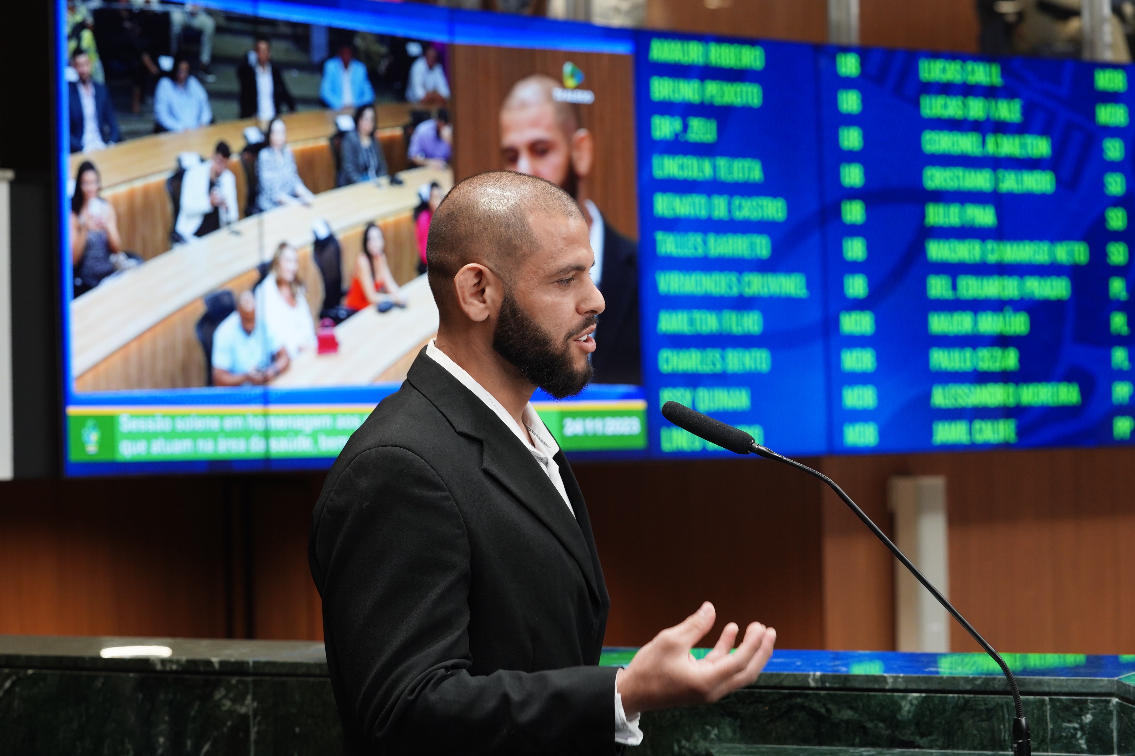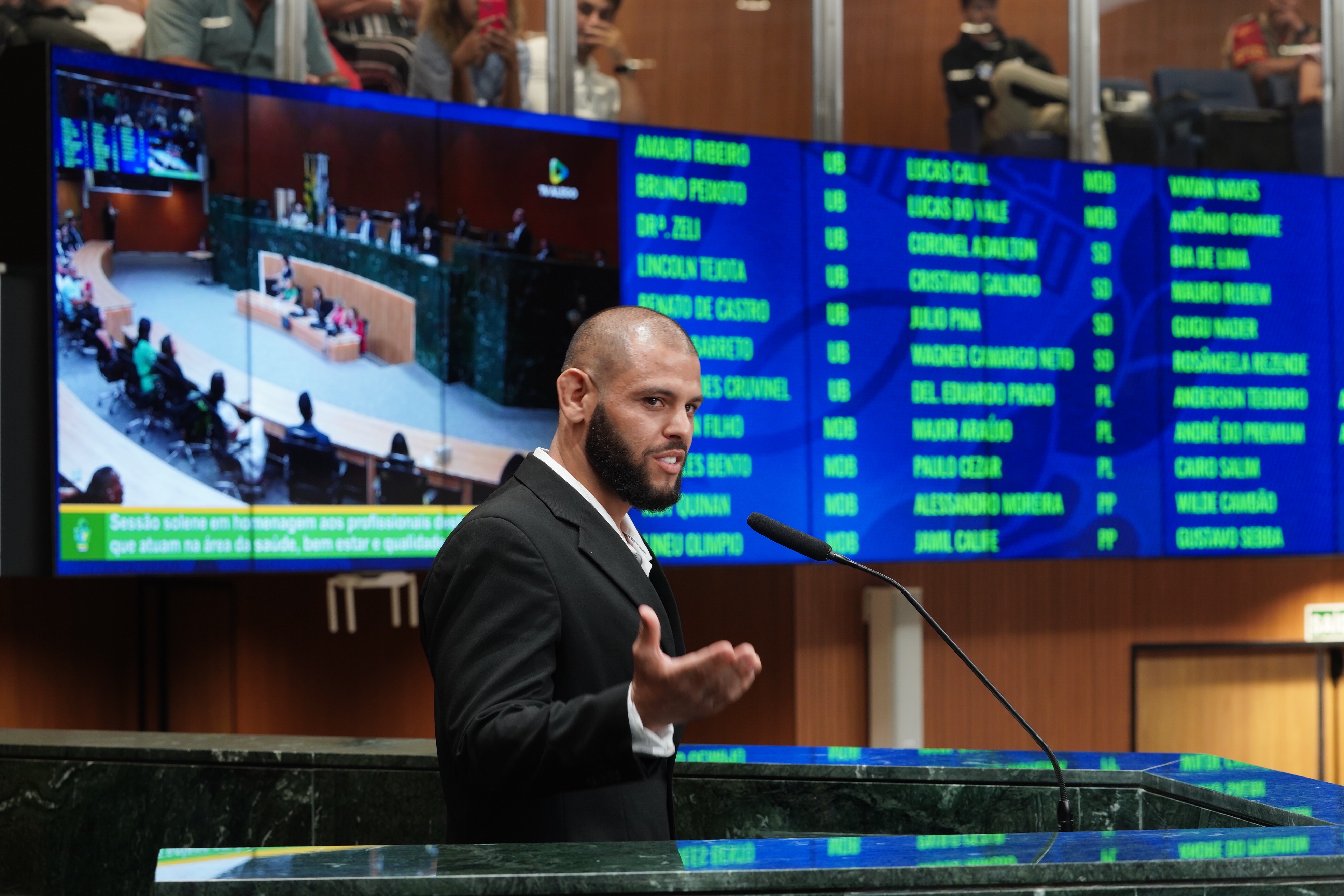 Deputados Antônio Gomide e Gugu Nader discursam pela bancada de oposição