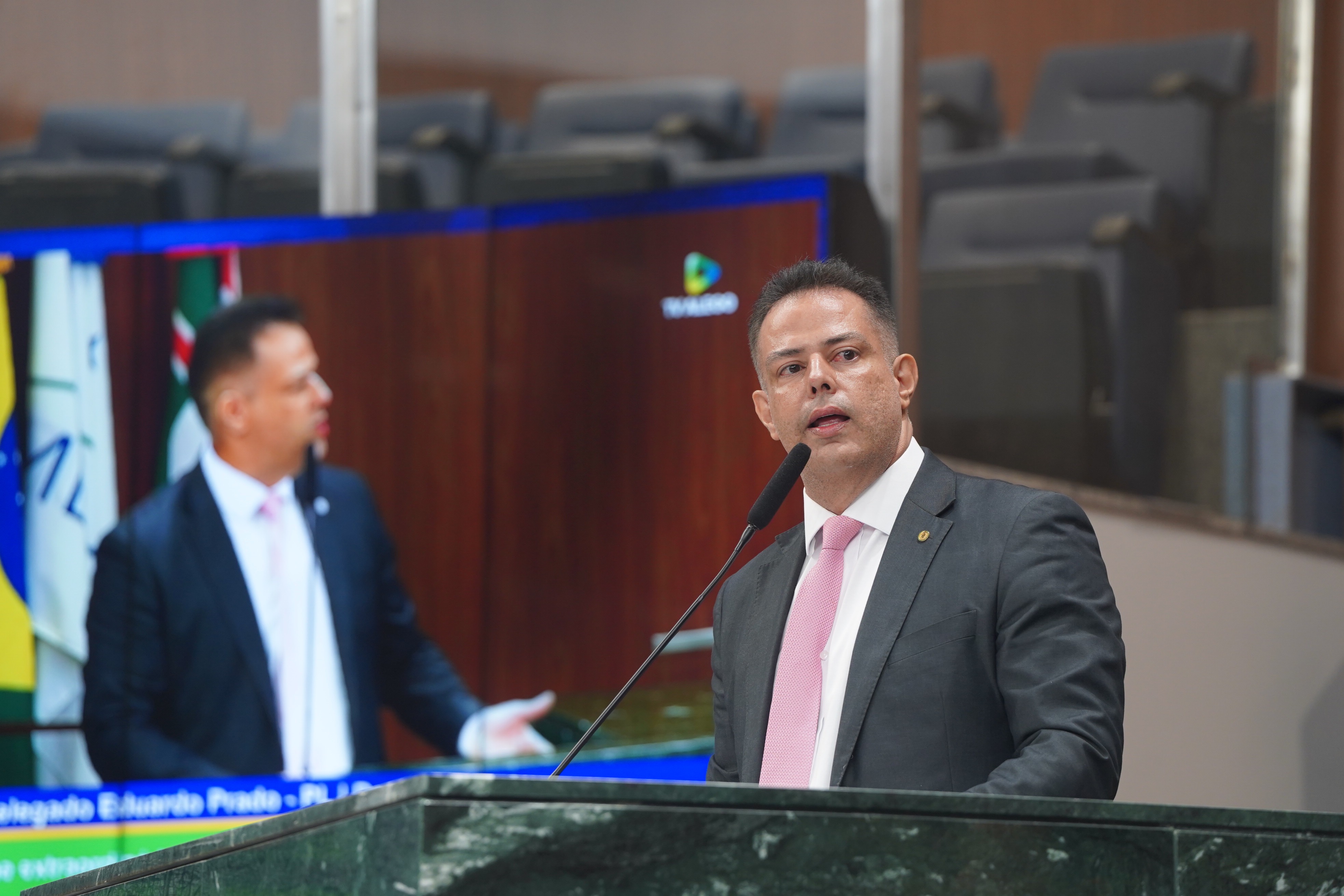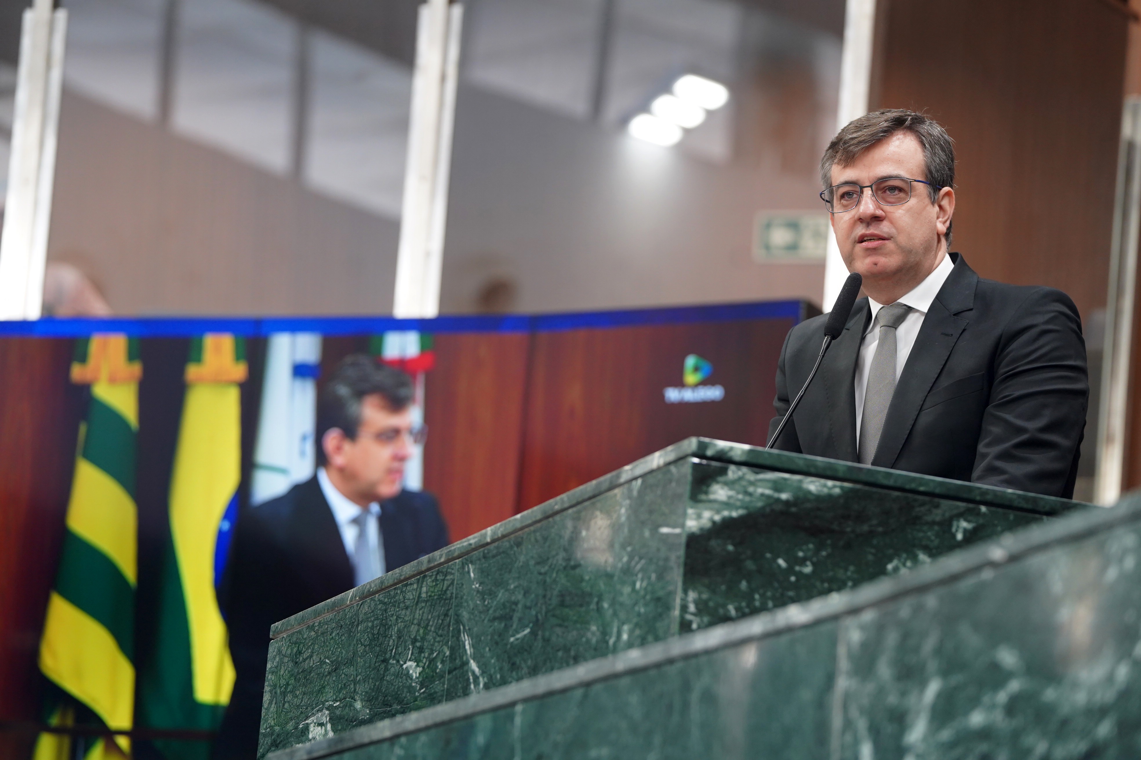 Deputados Antônio Gomide e Gugu Nader discursam pela bancada de oposição