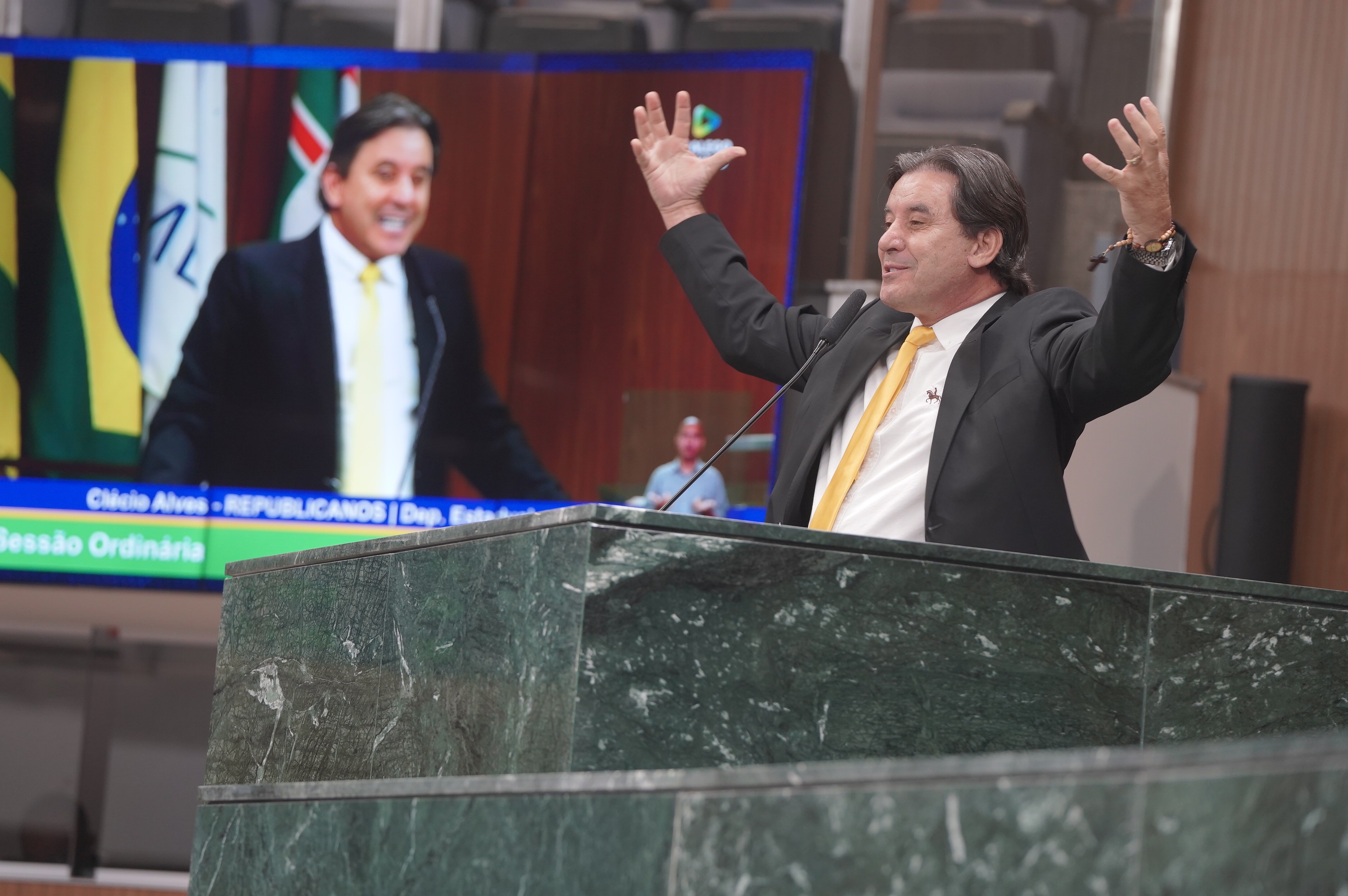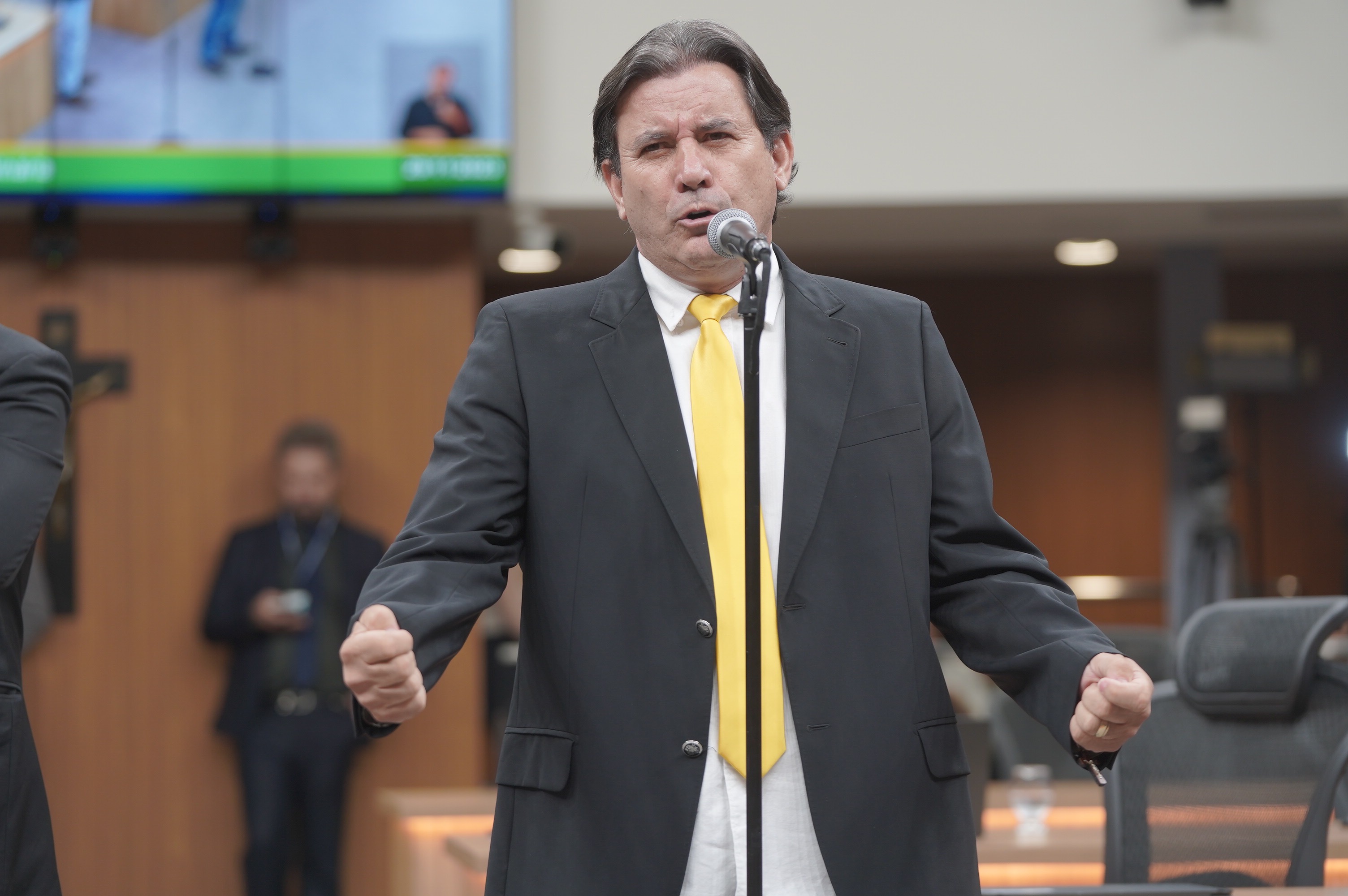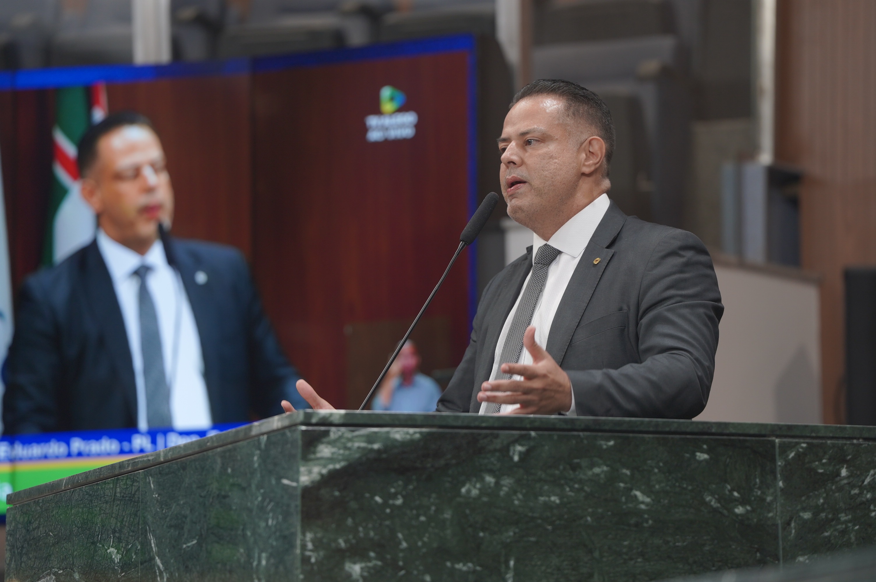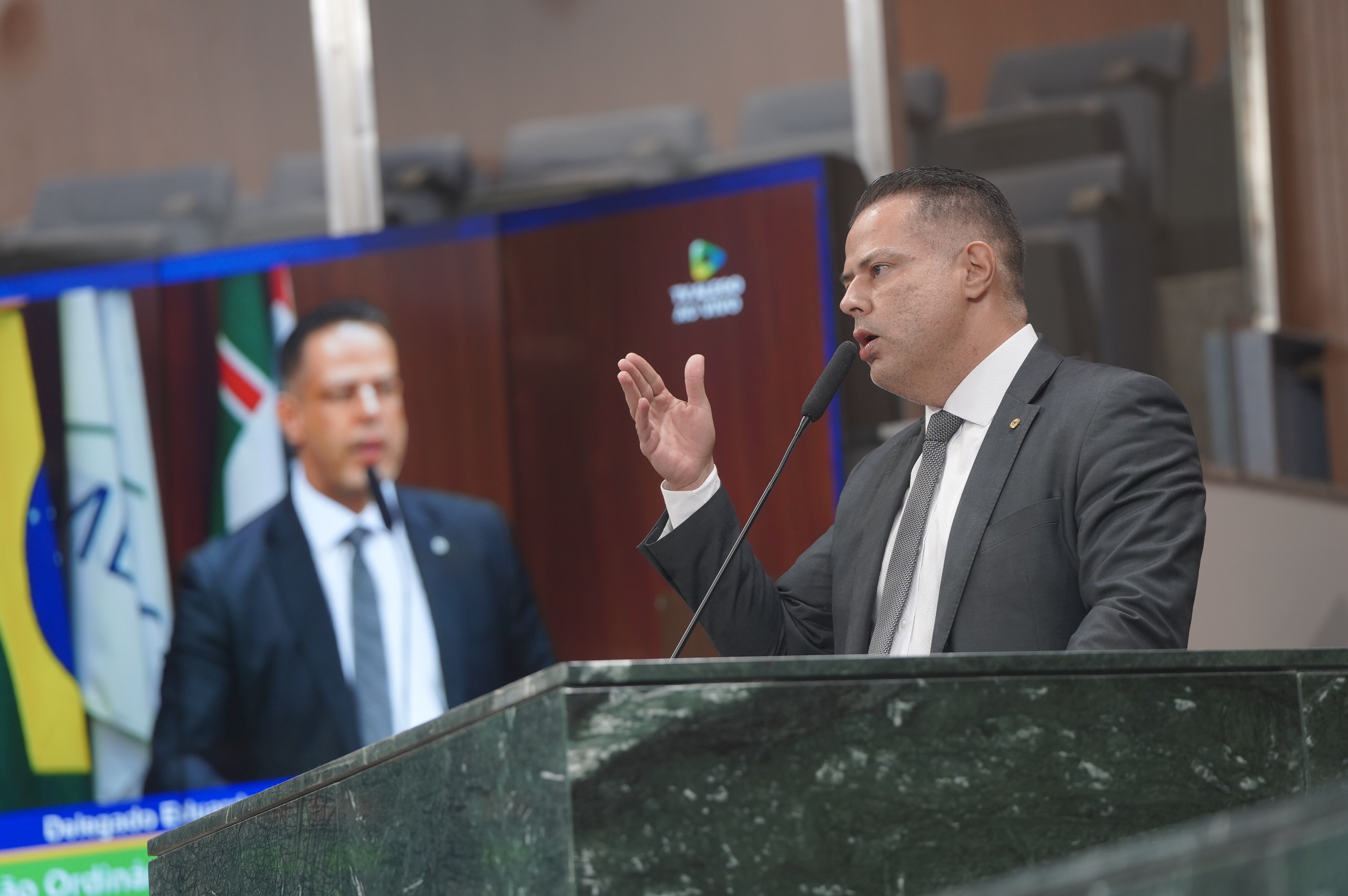 Deputados Antônio Gomide e Gugu Nader discursam pela bancada de oposição