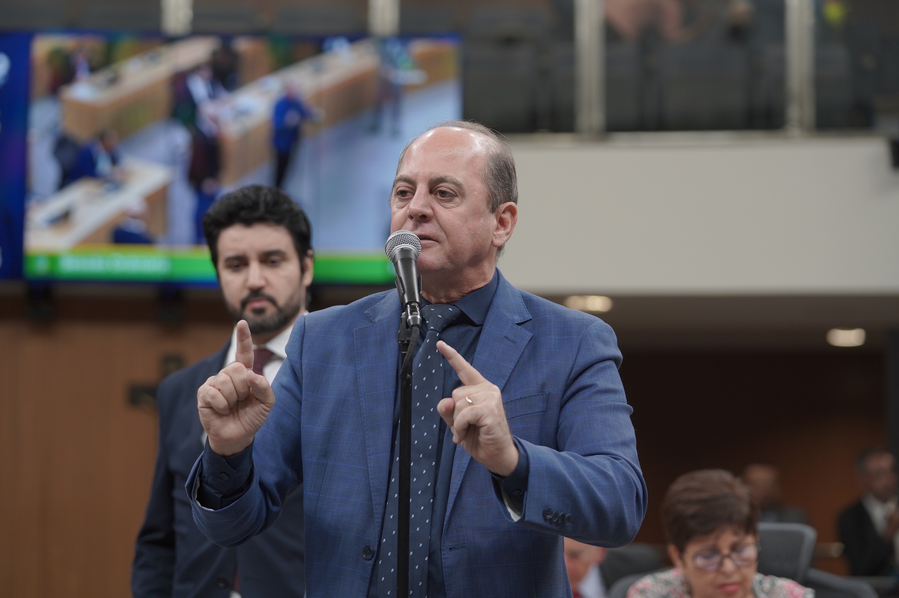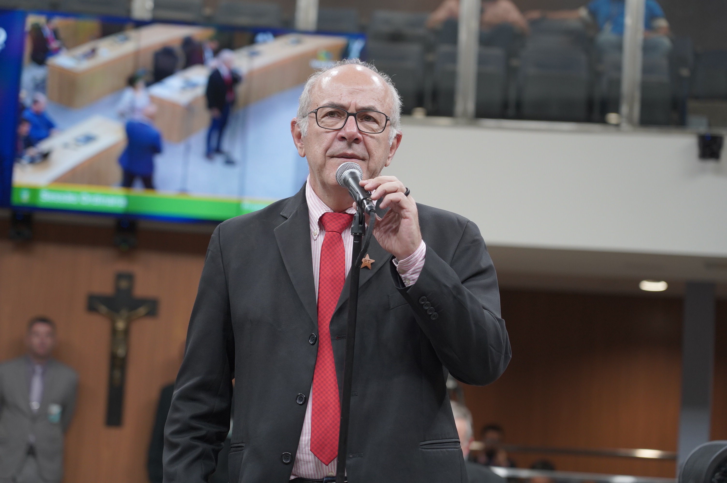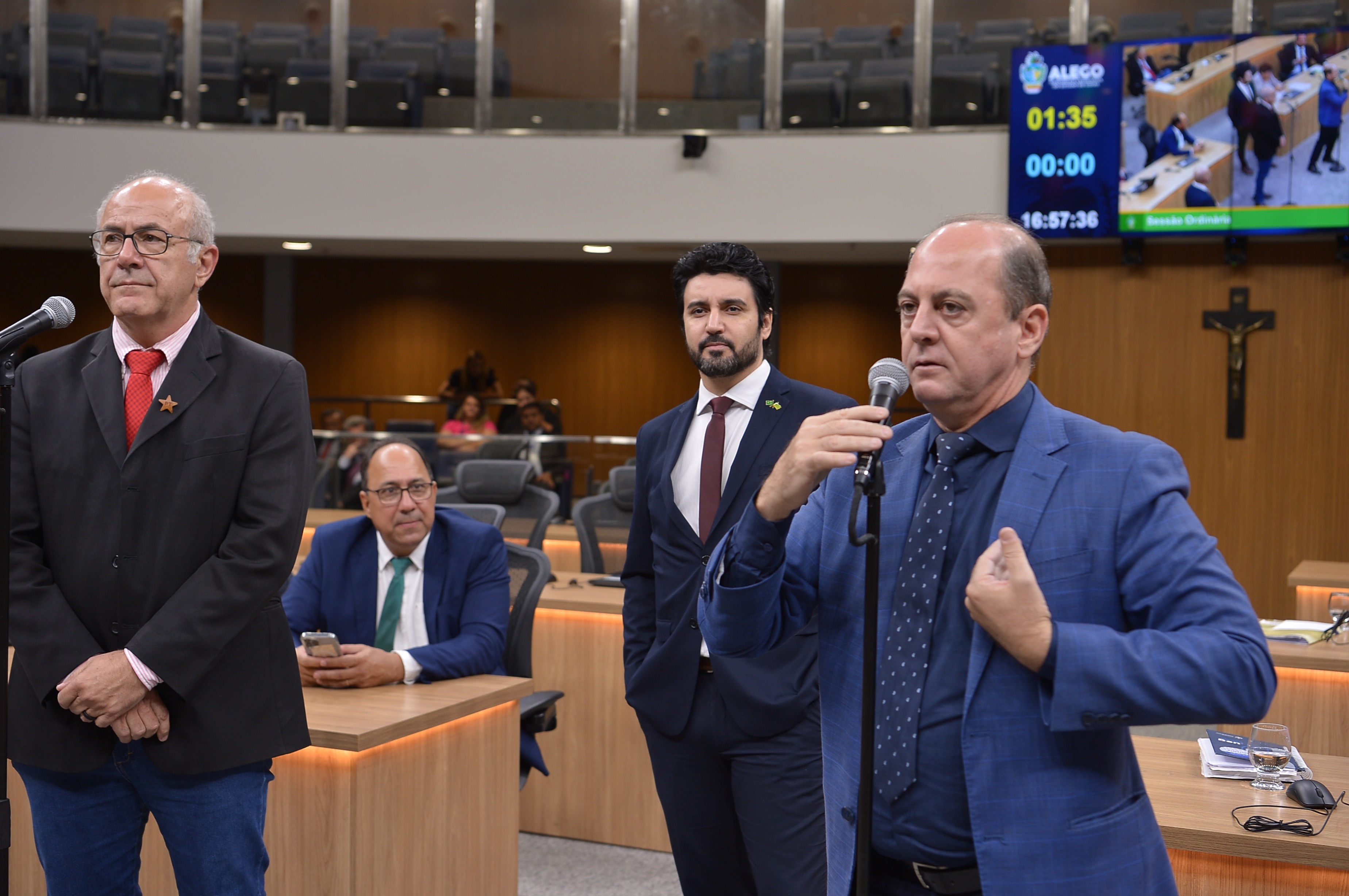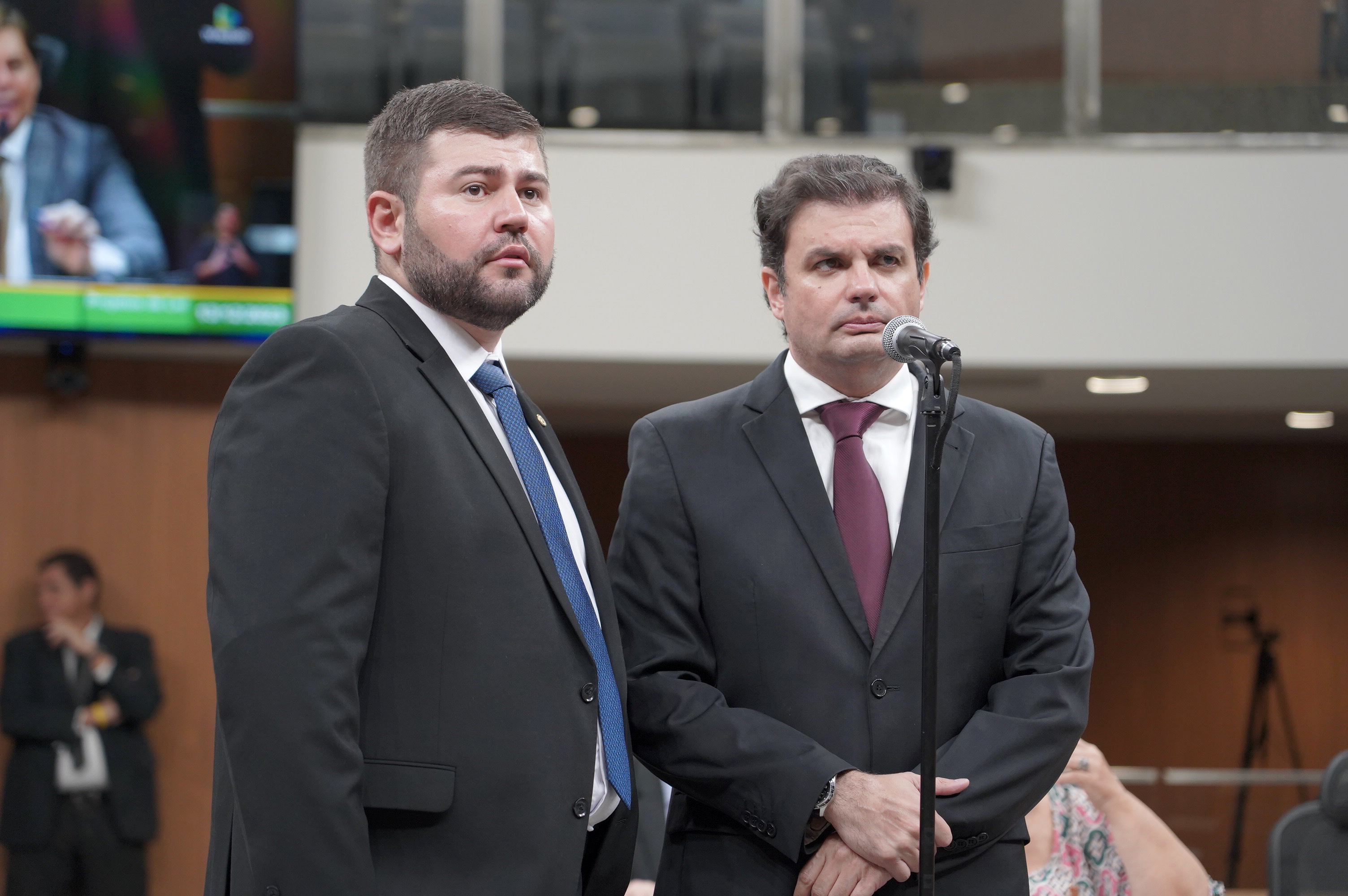 Deputados Antônio Gomide e Gugu Nader discursam pela bancada de oposição