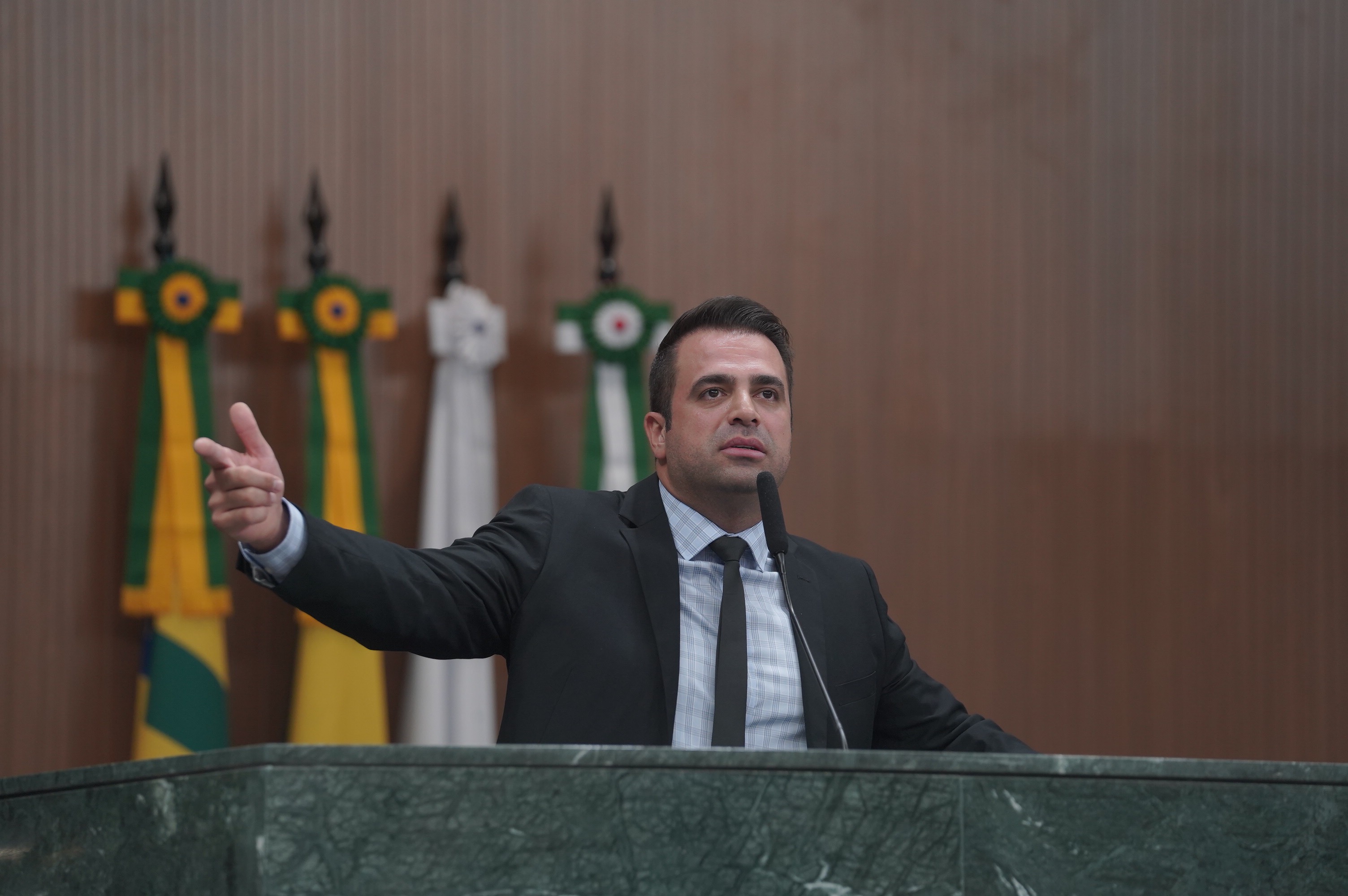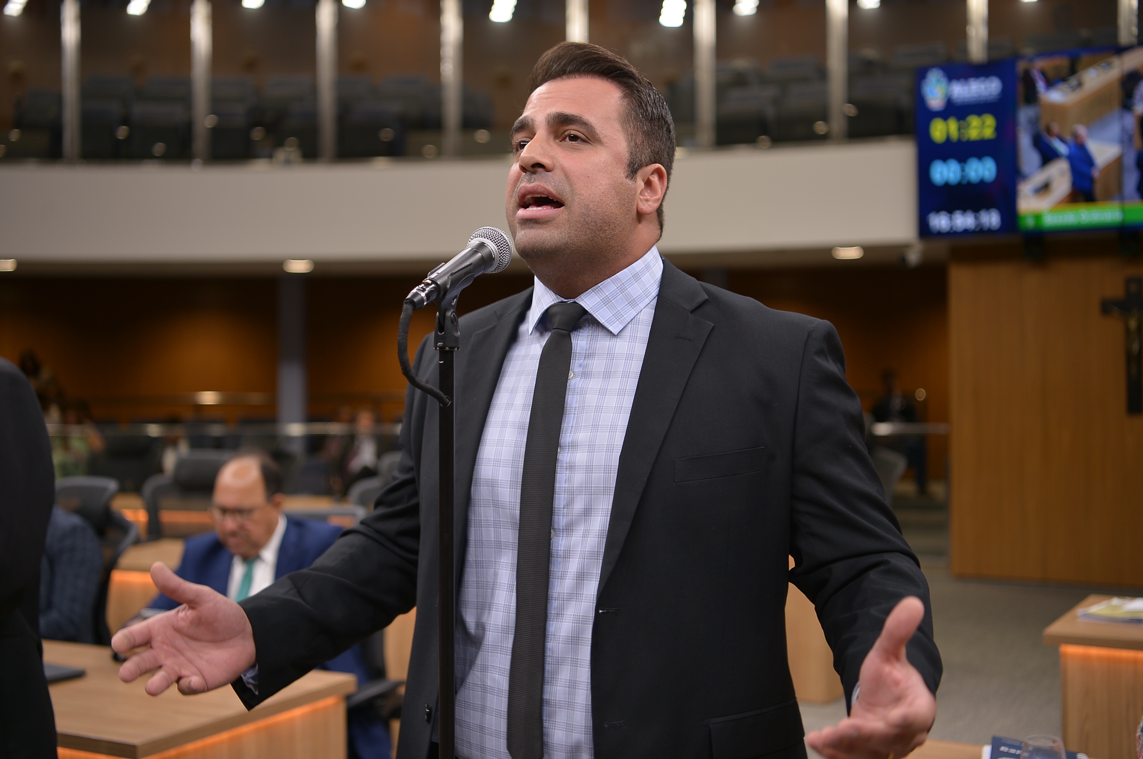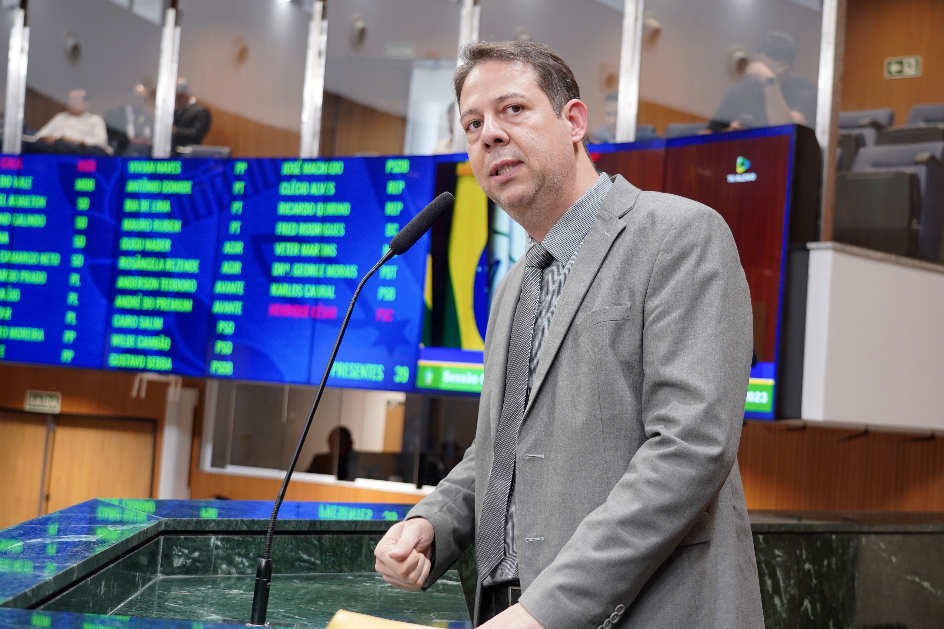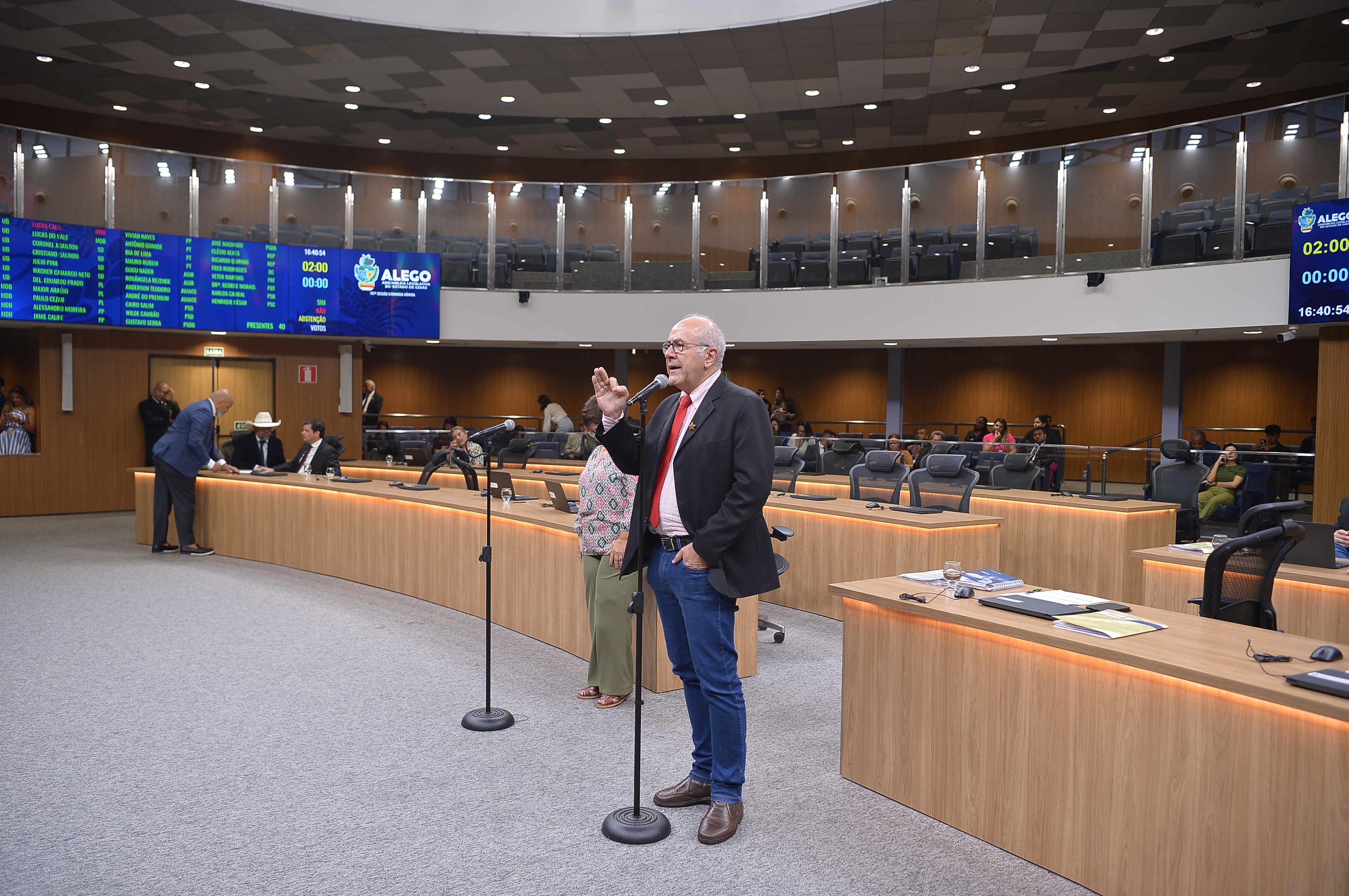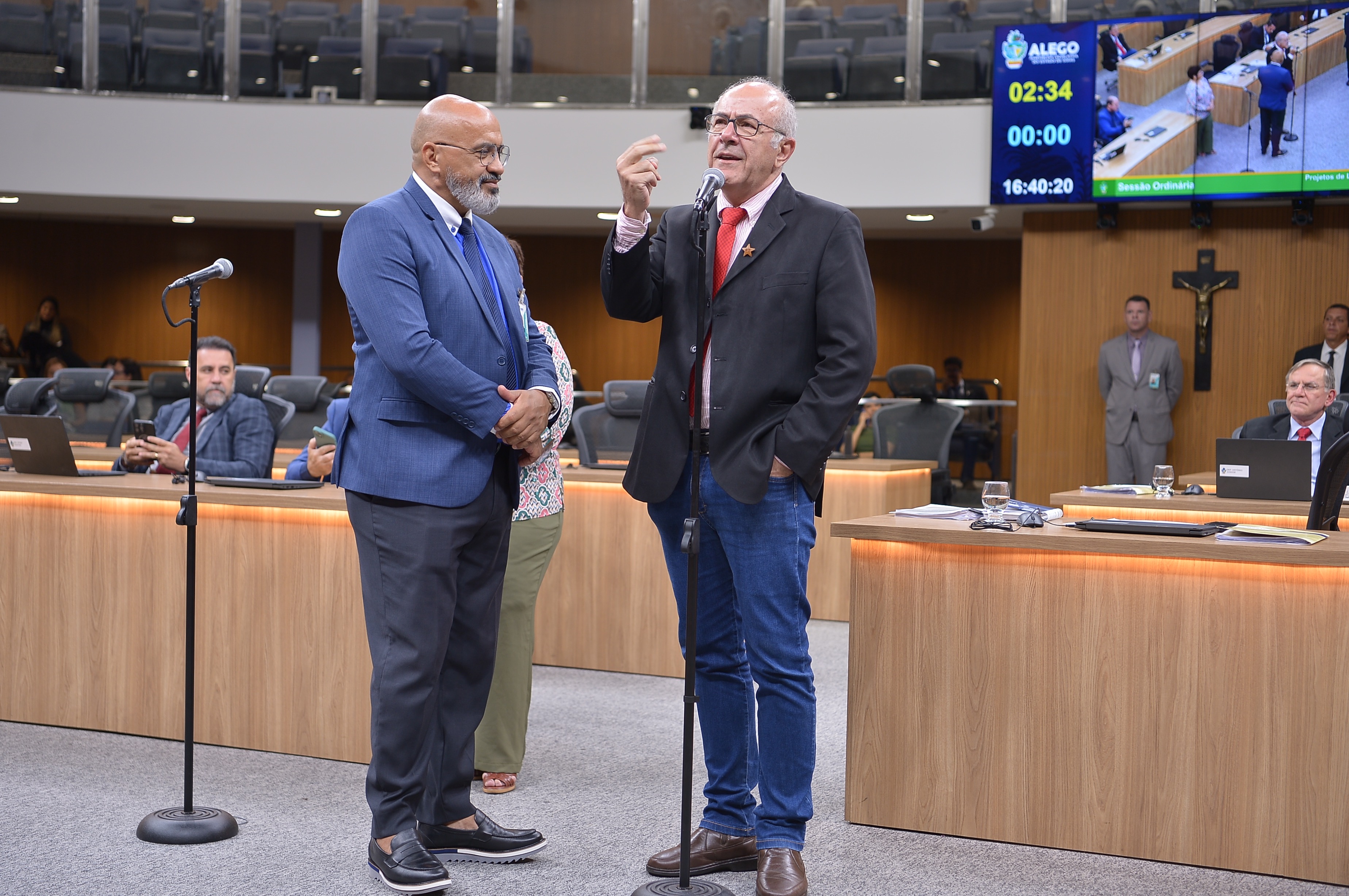 Deputados Antônio Gomide e Gugu Nader discursam pela bancada de oposição