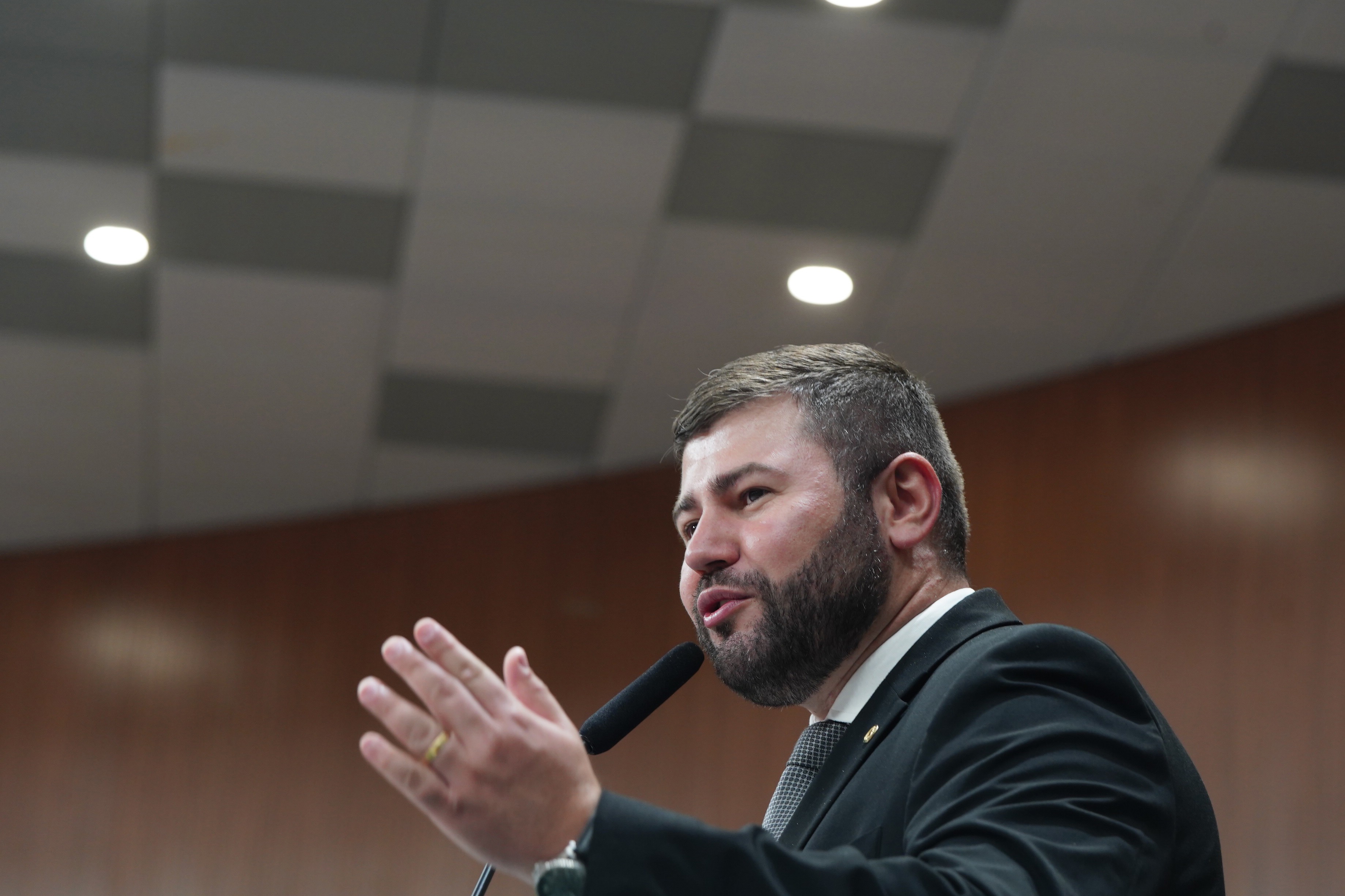 Deputados Antônio Gomide e Gugu Nader discursam pela bancada de oposição