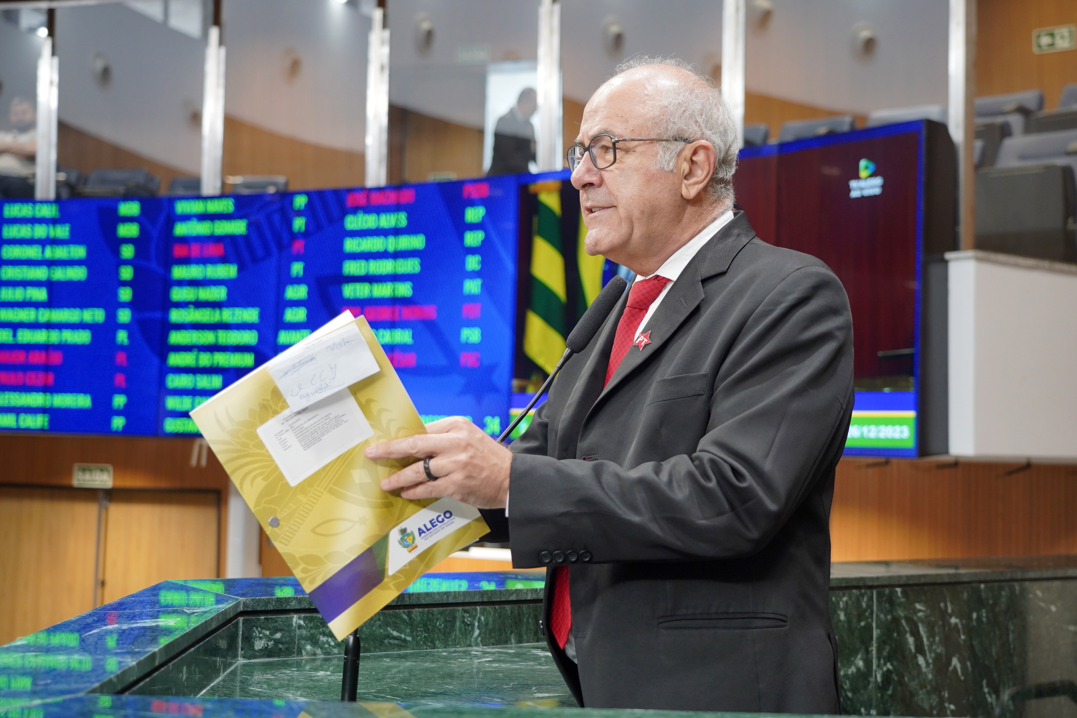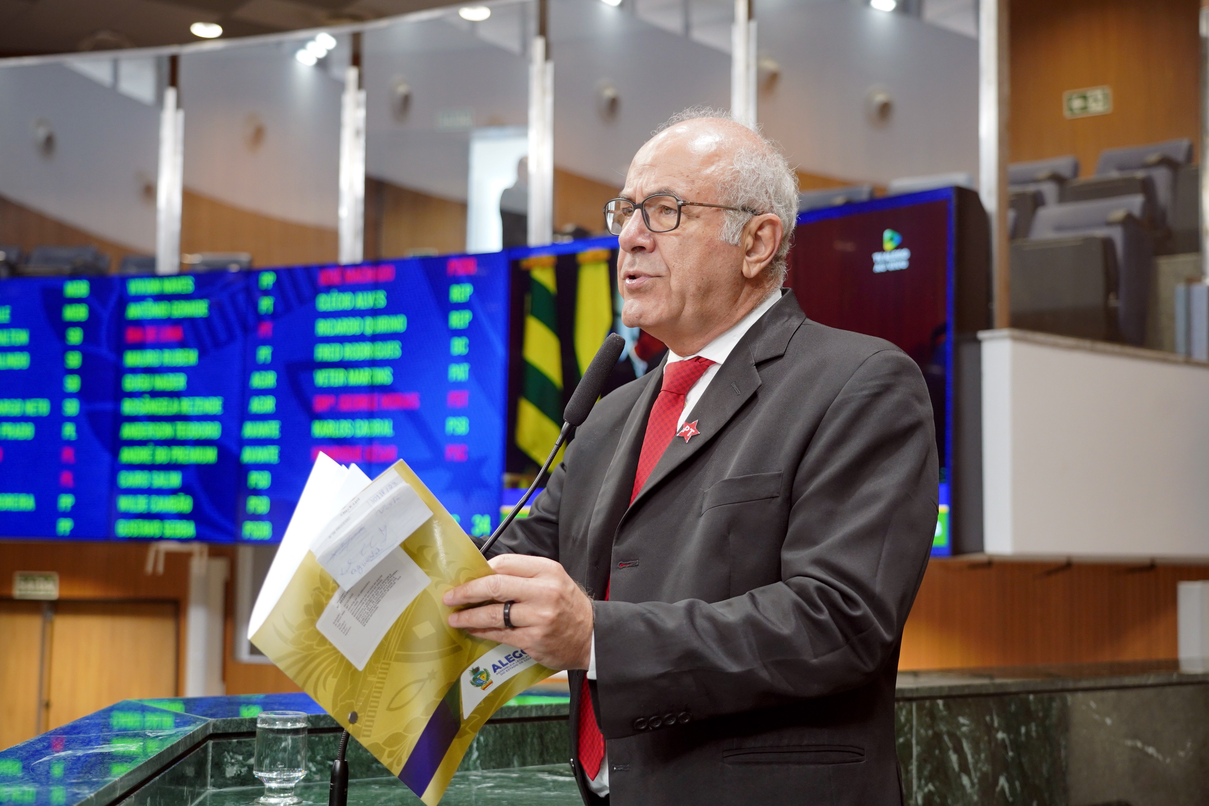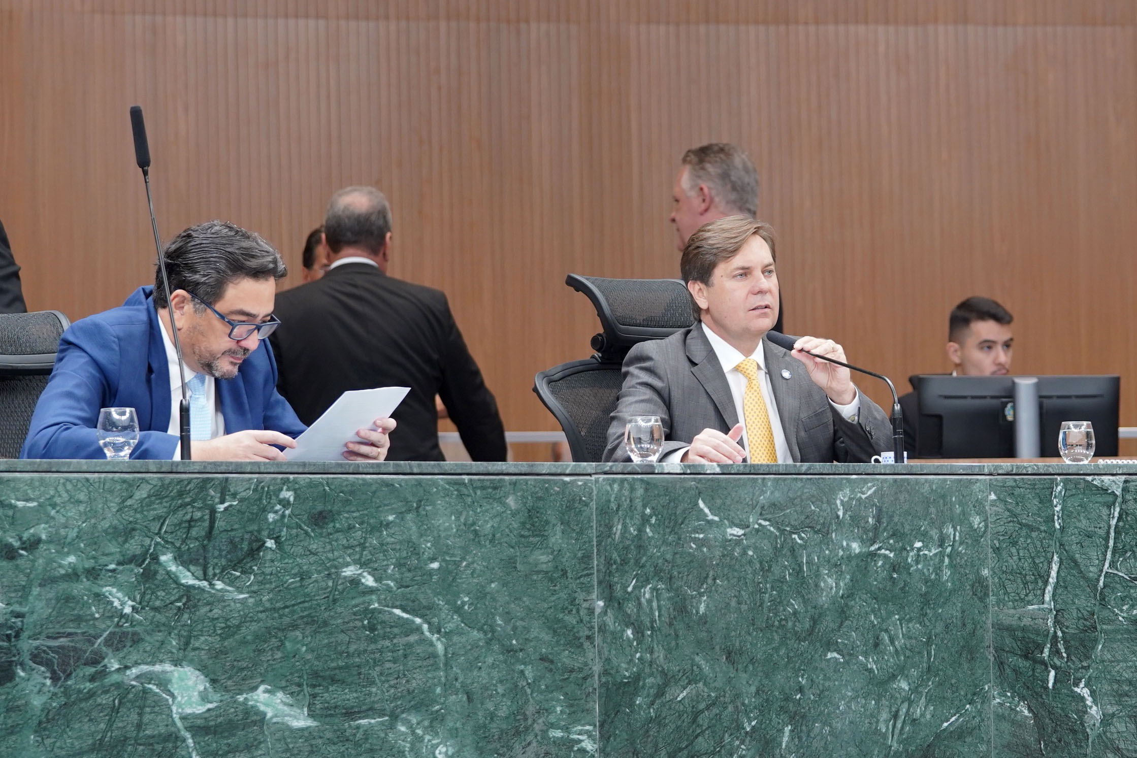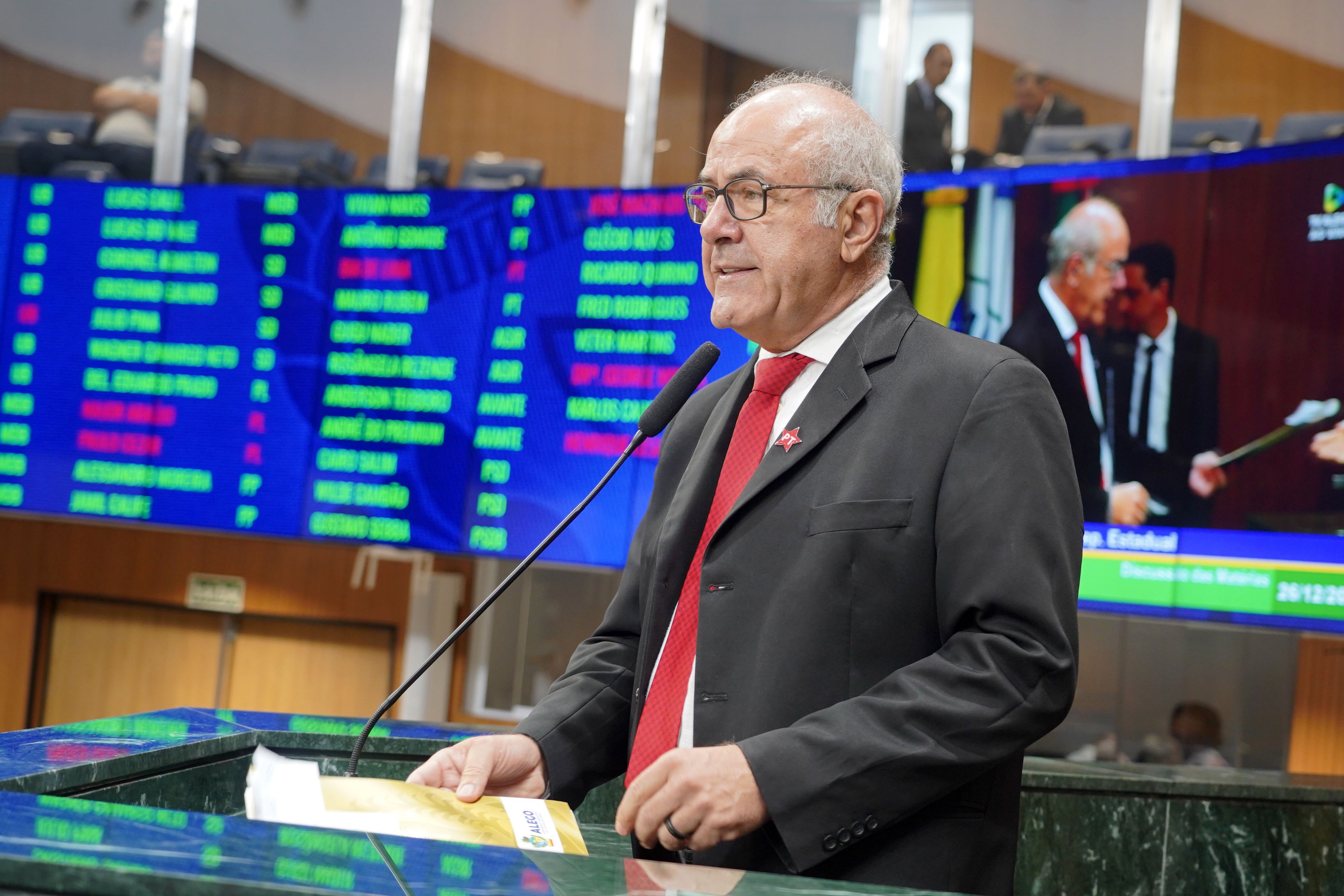 Deputados Antônio Gomide e Gugu Nader discursam pela bancada de oposição