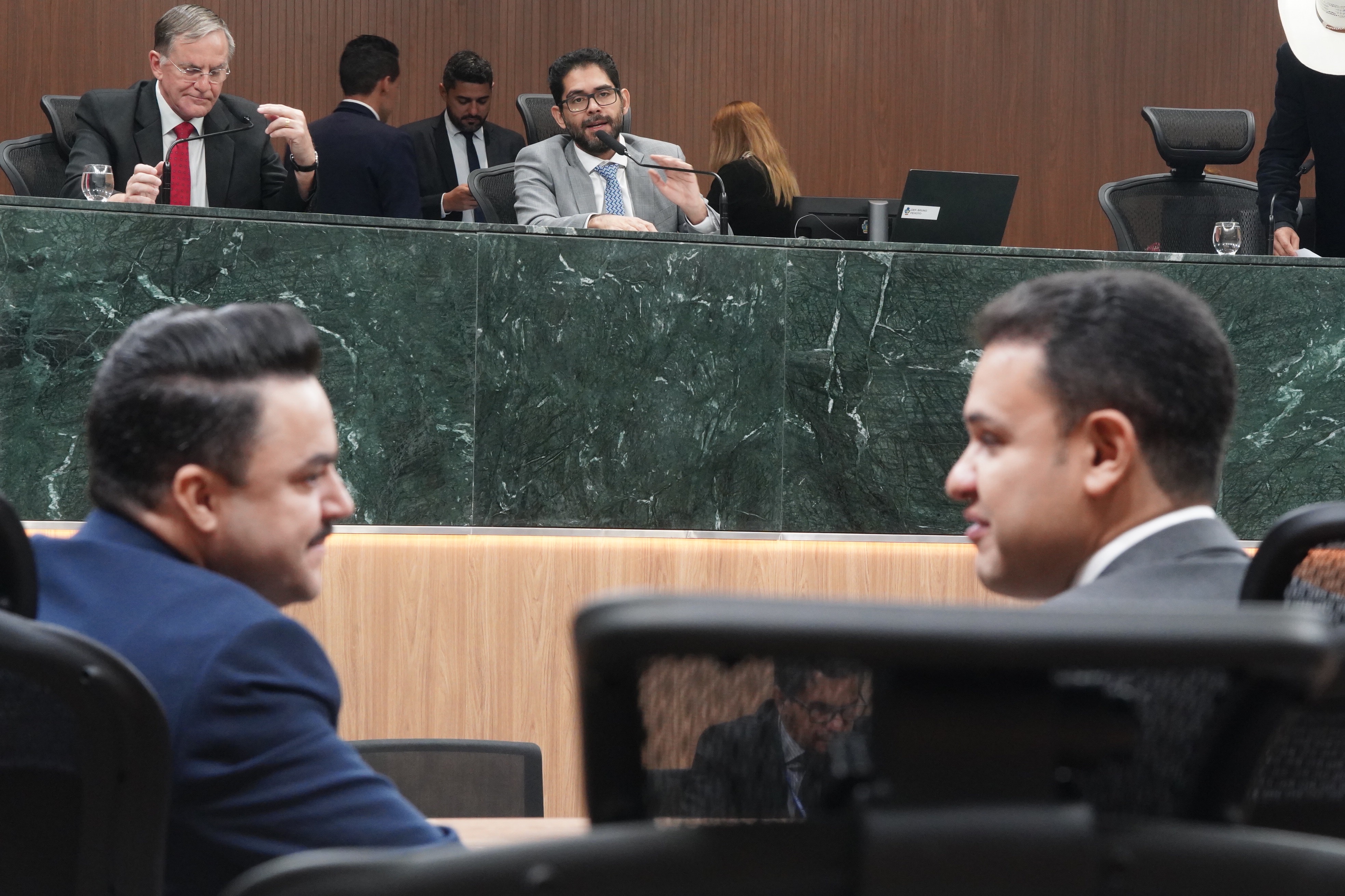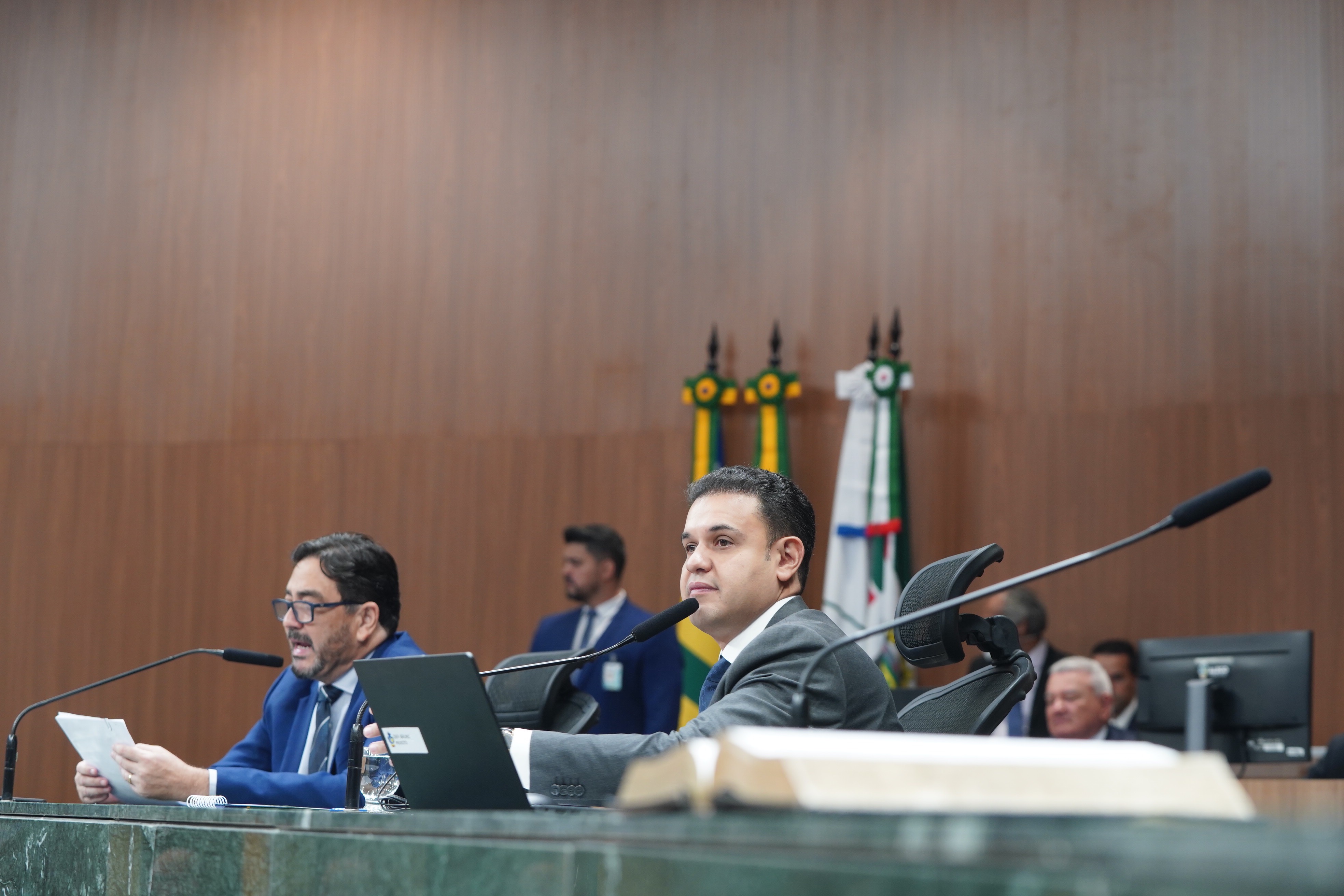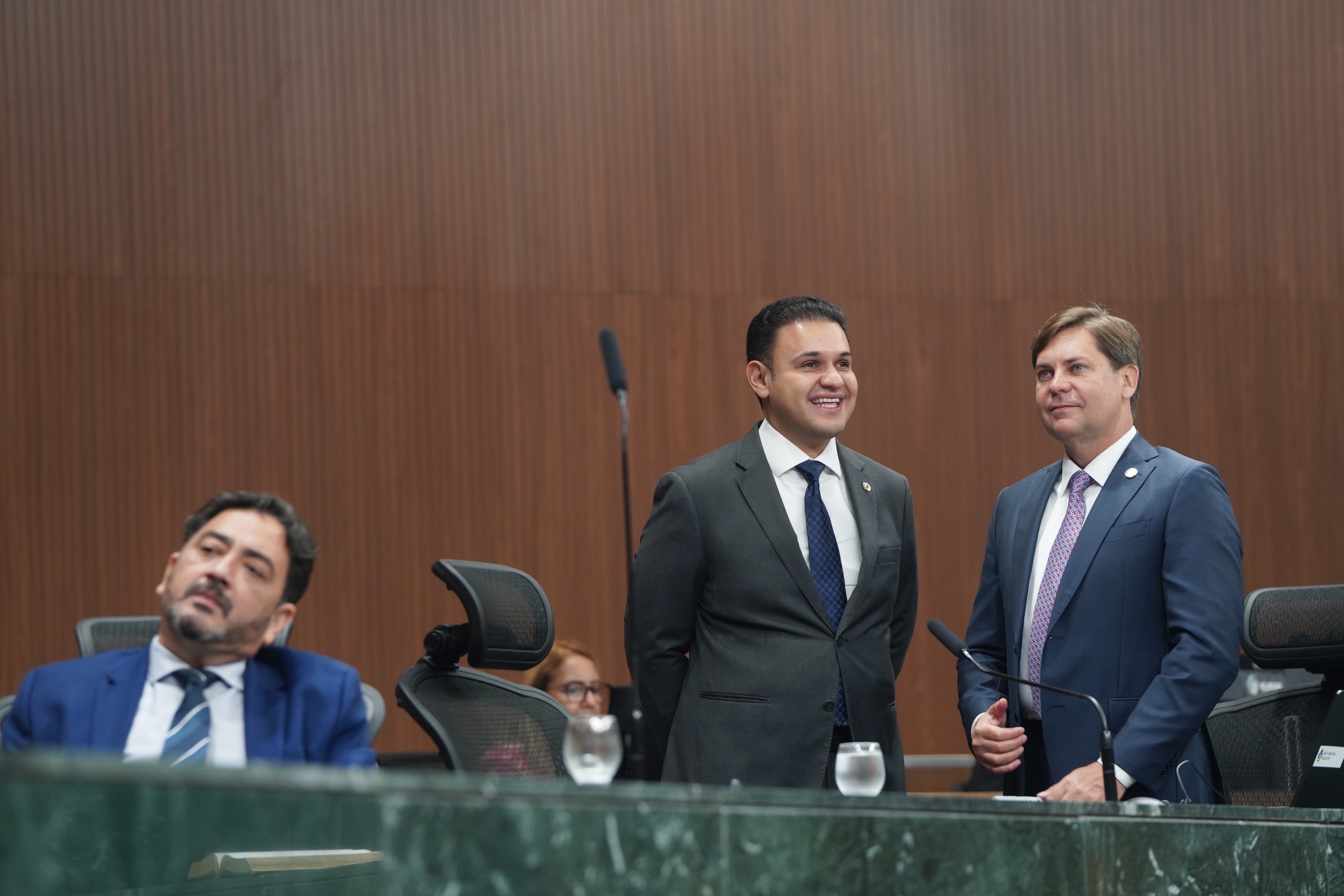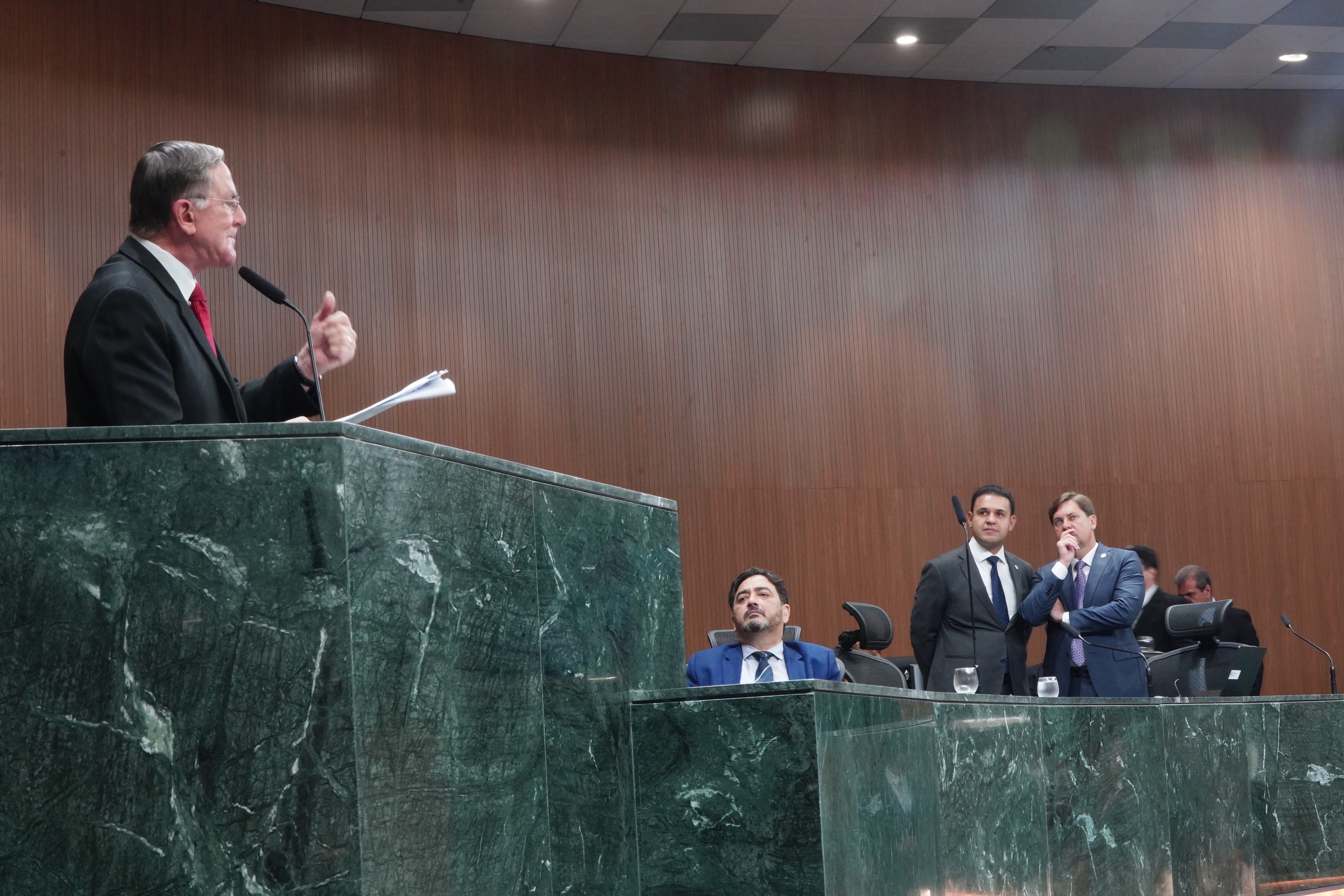 Deputados Issy Quinan e Jamil Calife discursam pela bancada de situação