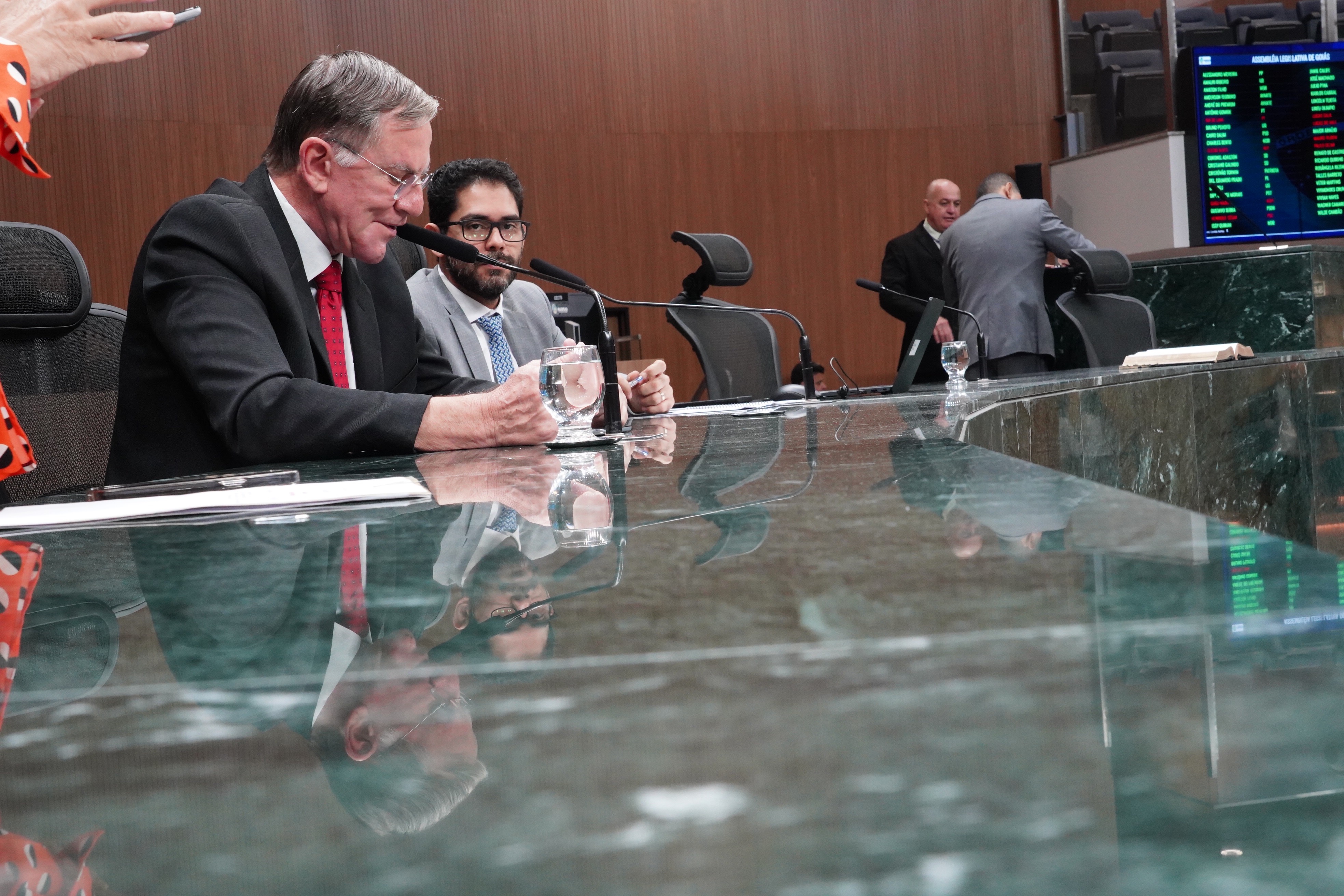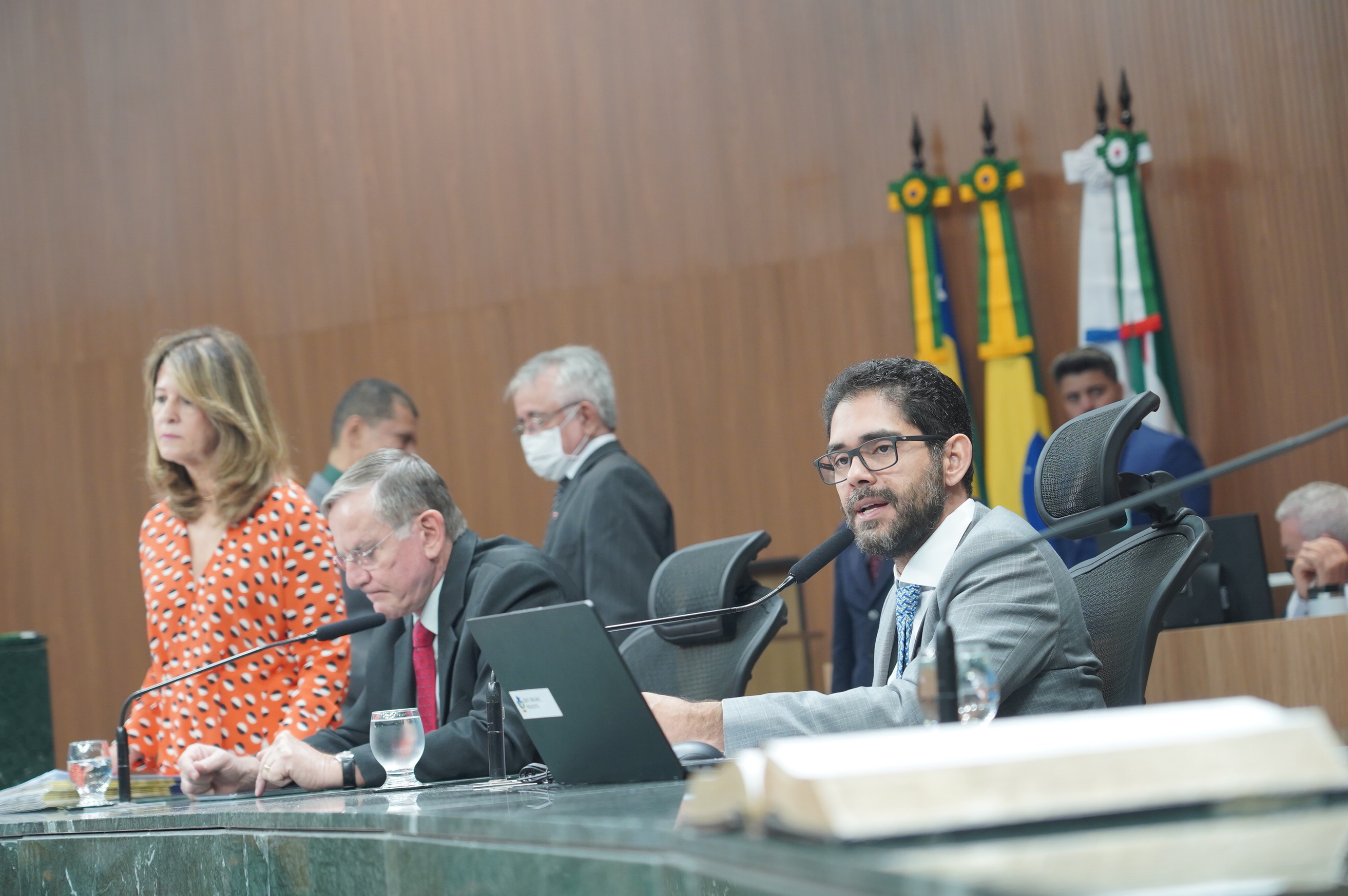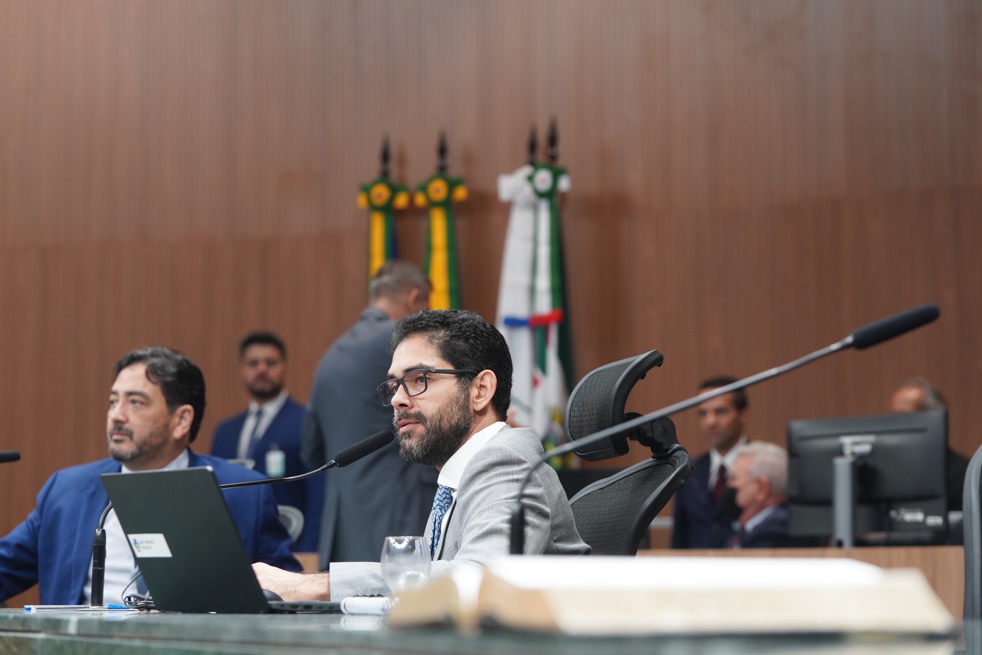 Deputados Issy Quinan e Jamil Calife discursam pela bancada de situação