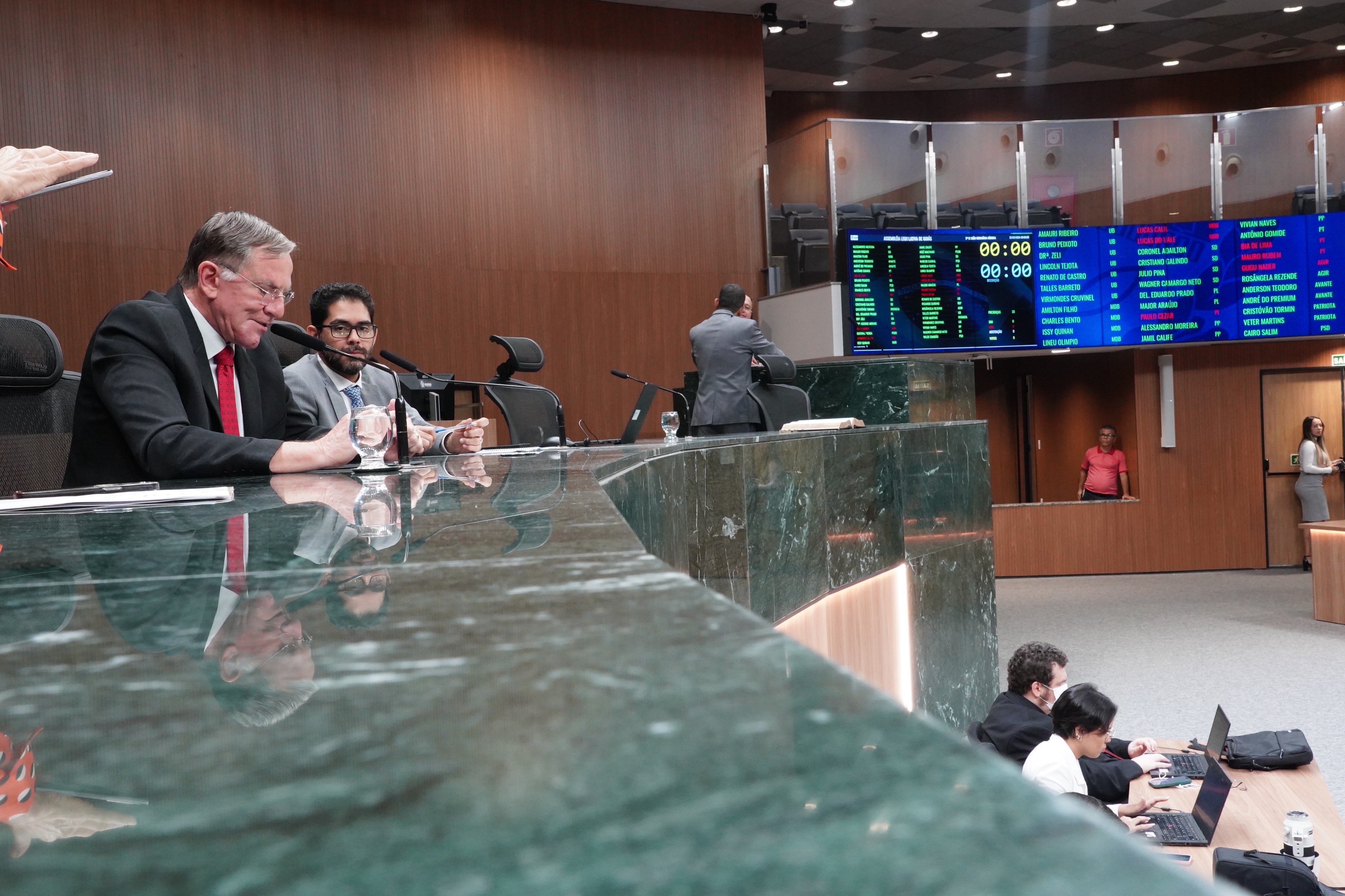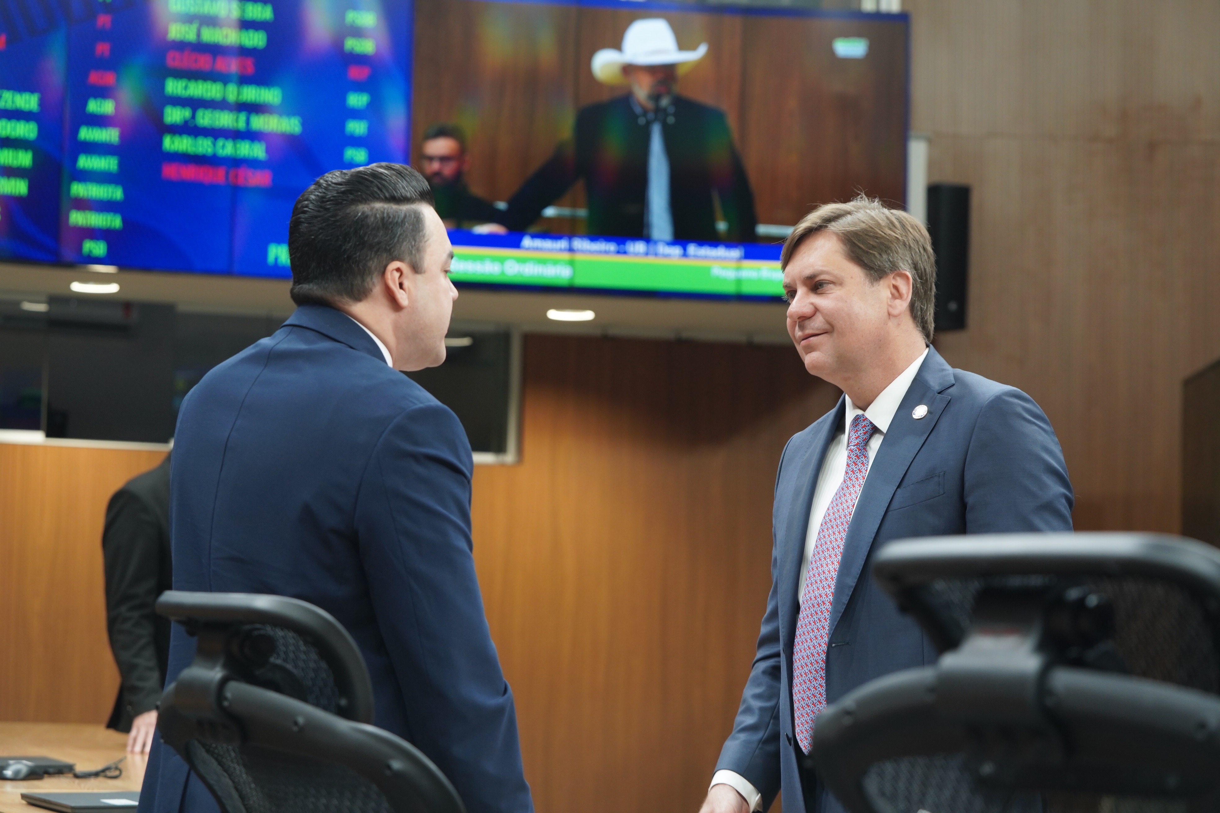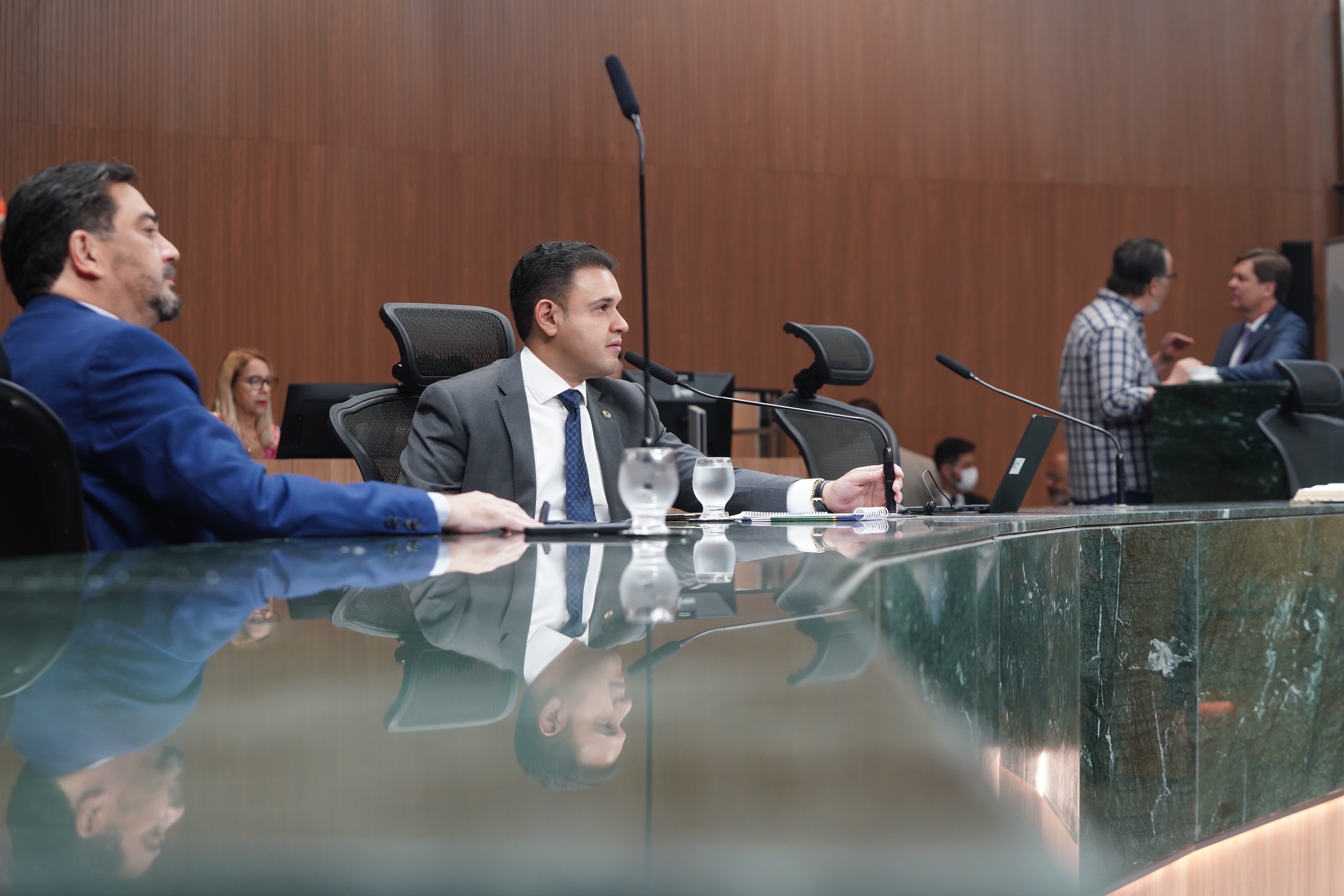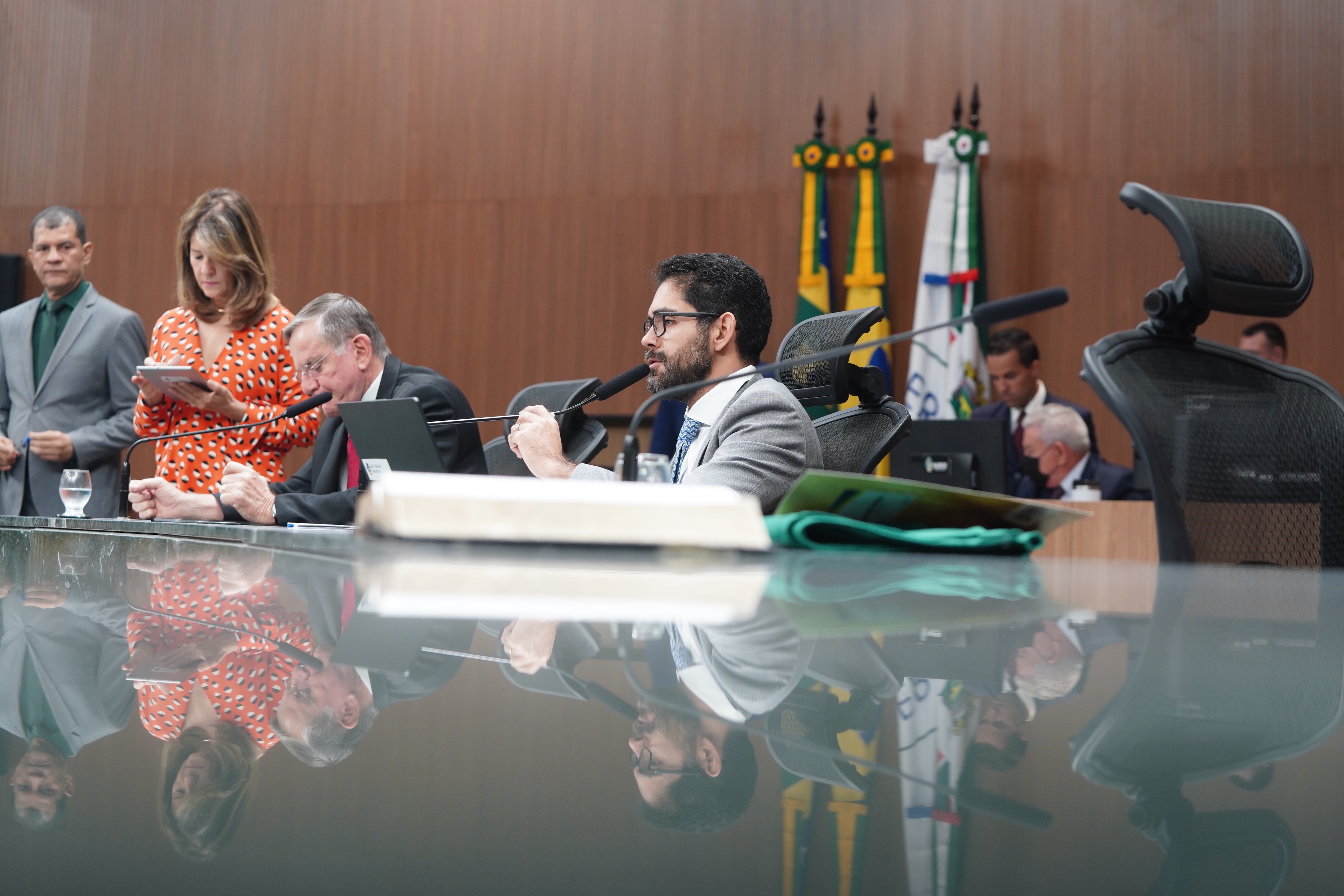 Deputados Issy Quinan e Jamil Calife discursam pela bancada de situação
