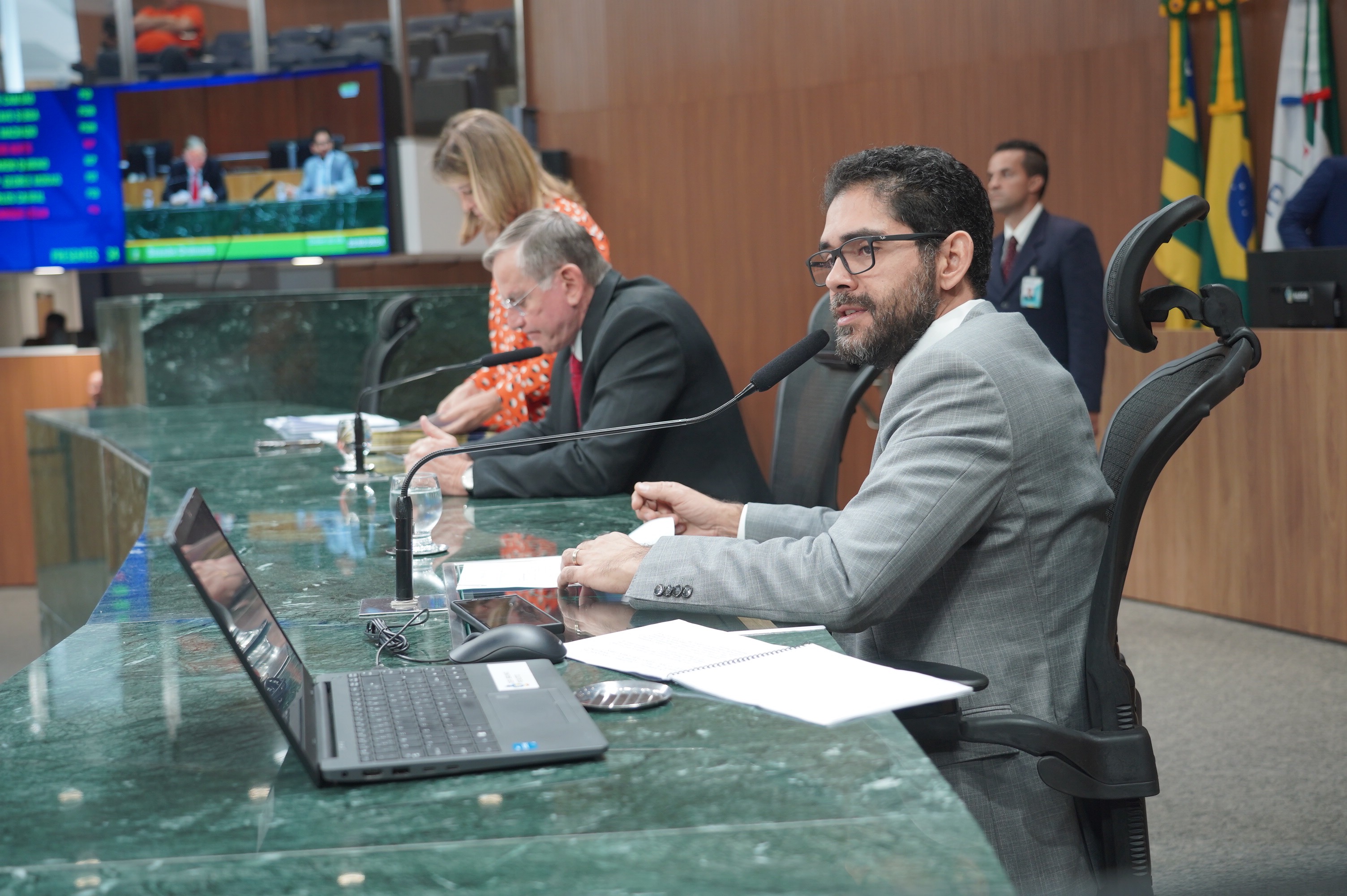 Deputados Antônio Gomide e Gugu Nader discursam pela bancada de oposição