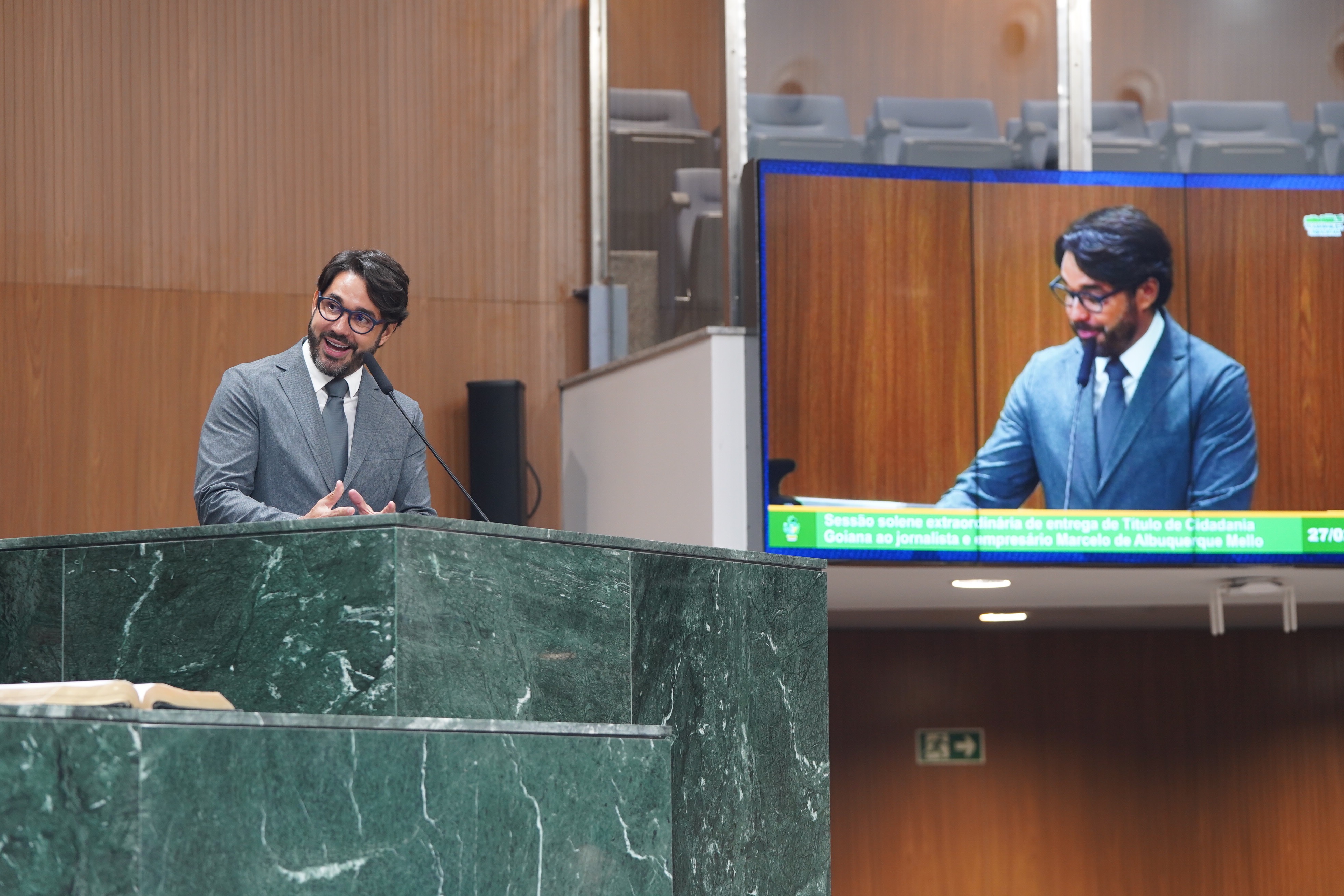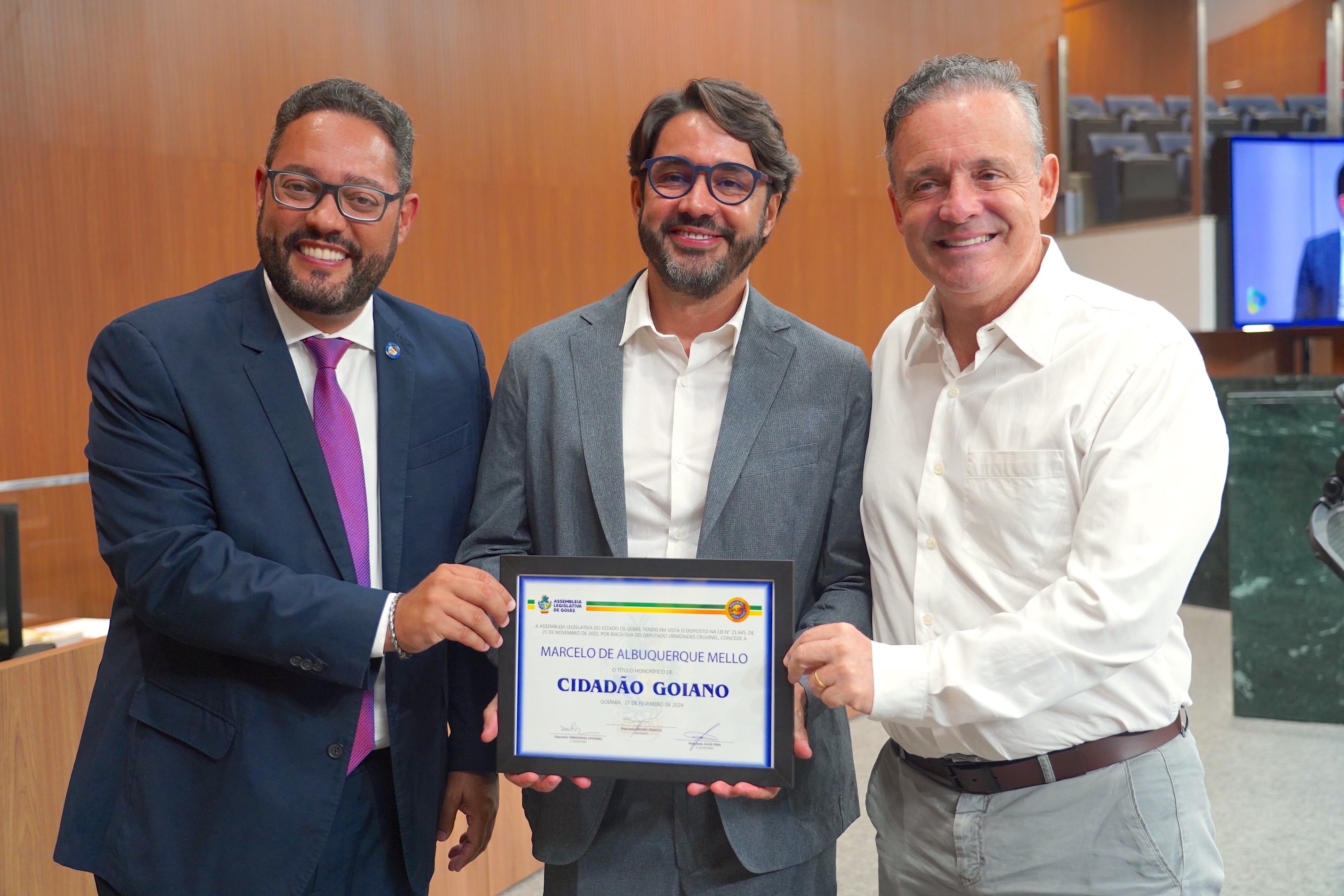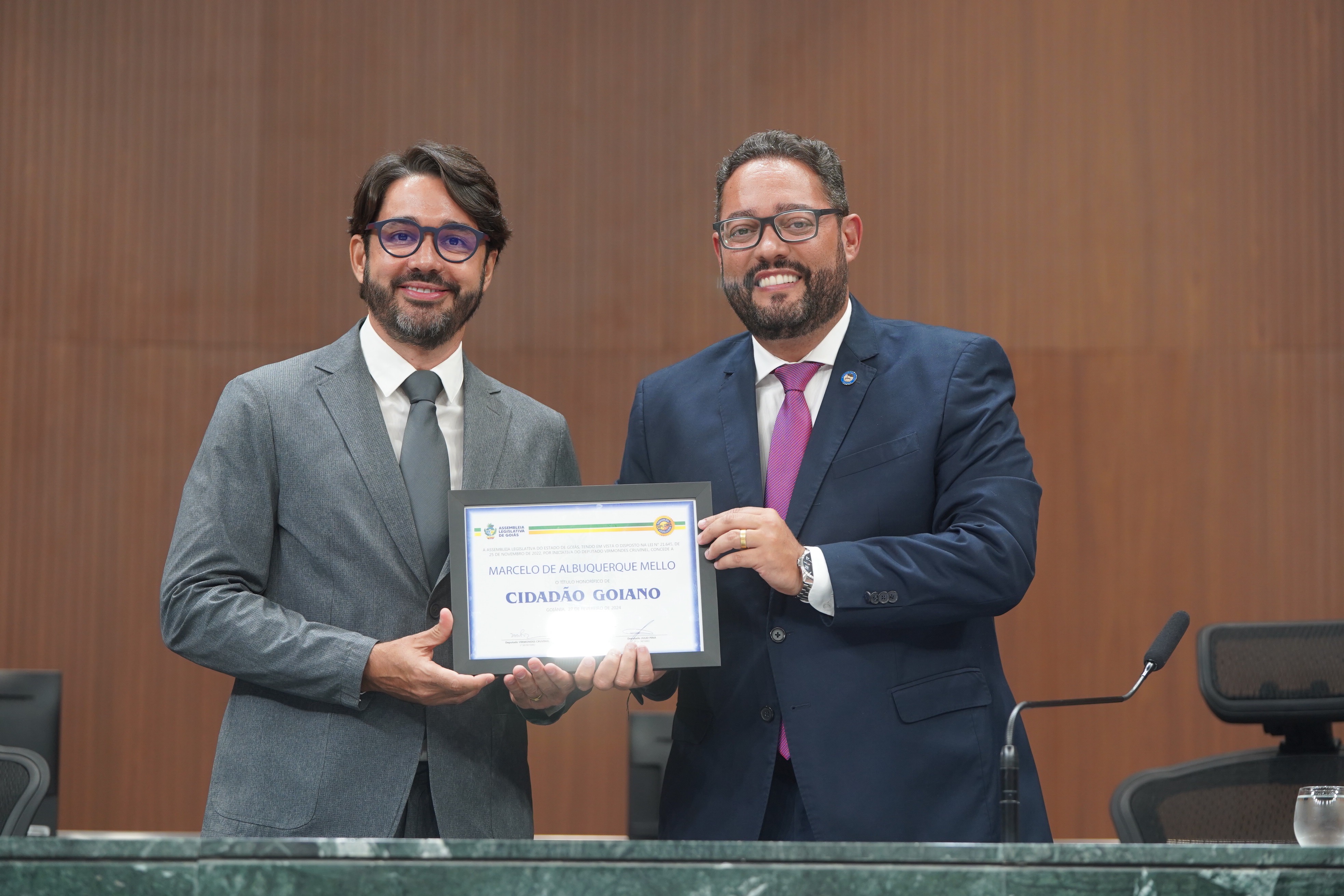 Sessão solene de entrega de Título de Cidadania Goiana ao jornalista e empresário Marcelo de Albuquerque Mello Maykon Cardoso