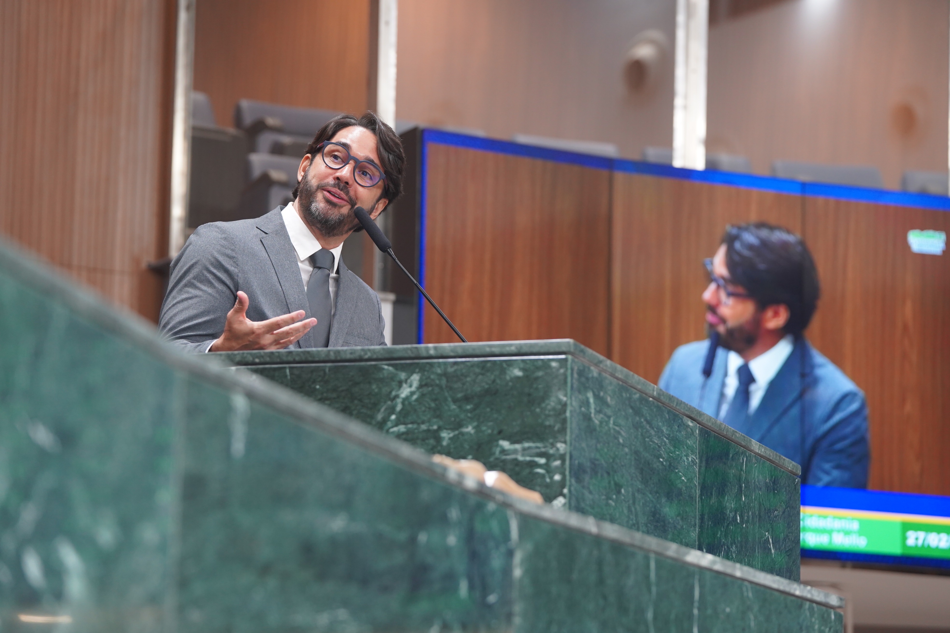 Deputados Antônio Gomide e Gugu Nader discursam pela bancada de oposição