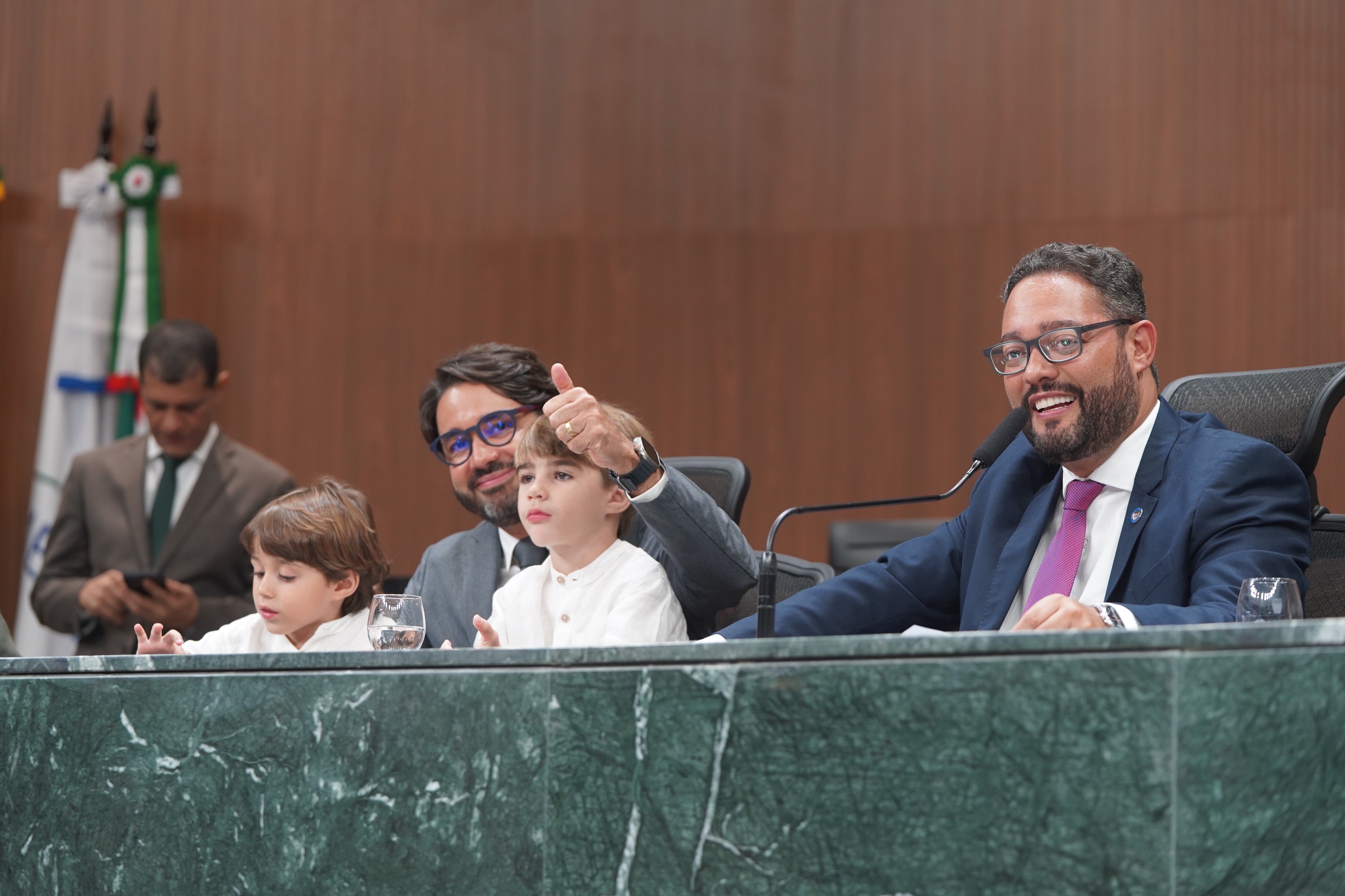 Deputados Issy Quinan e Jamil Calife discursam pela bancada de situação