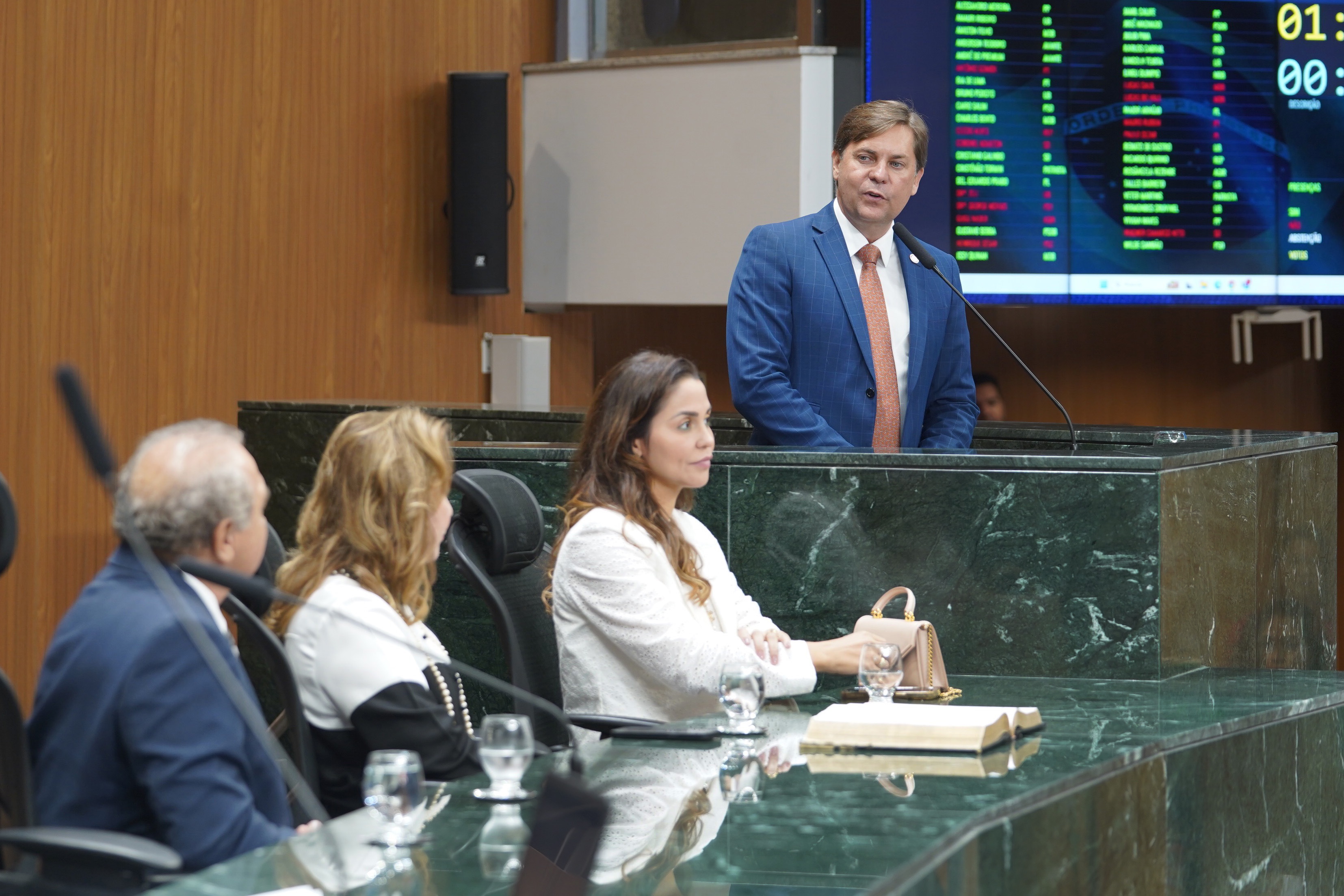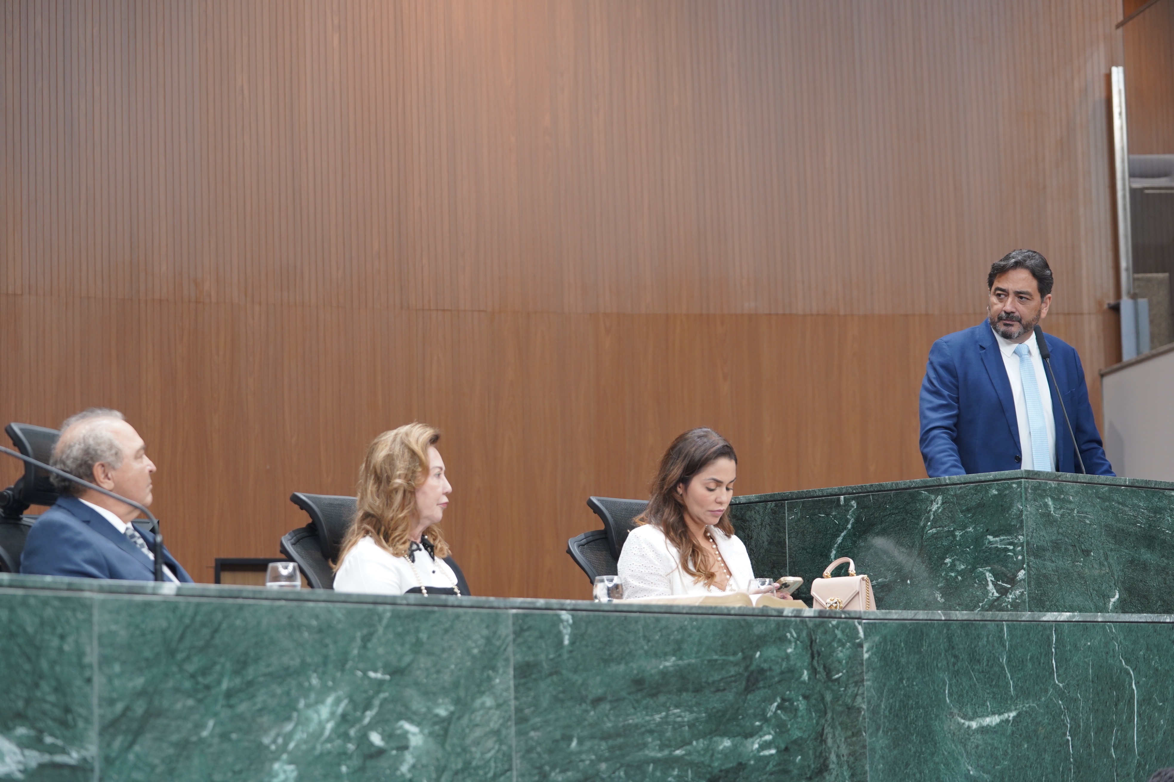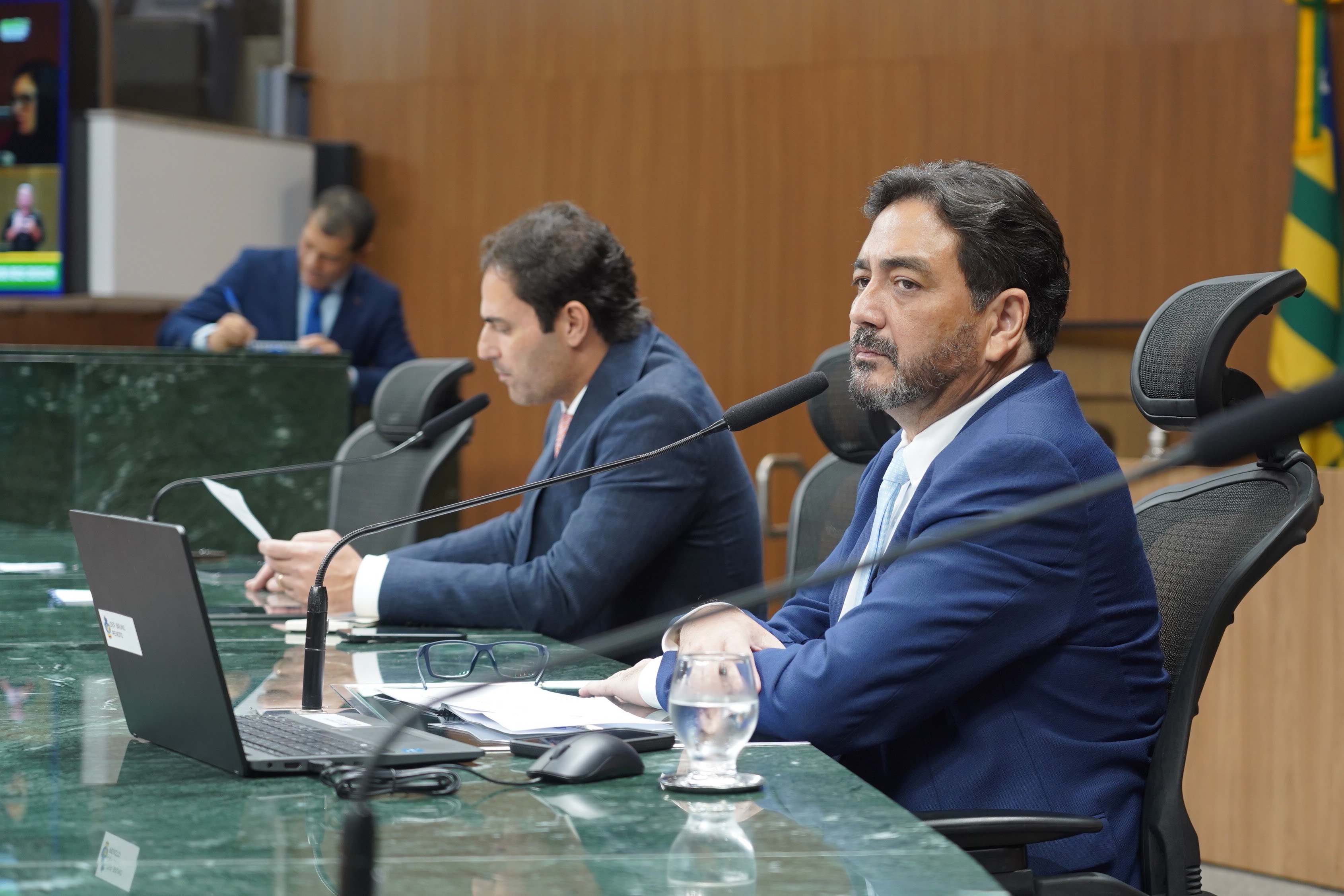 Deputados Issy Quinan e Jamil Calife discursam pela bancada de situação