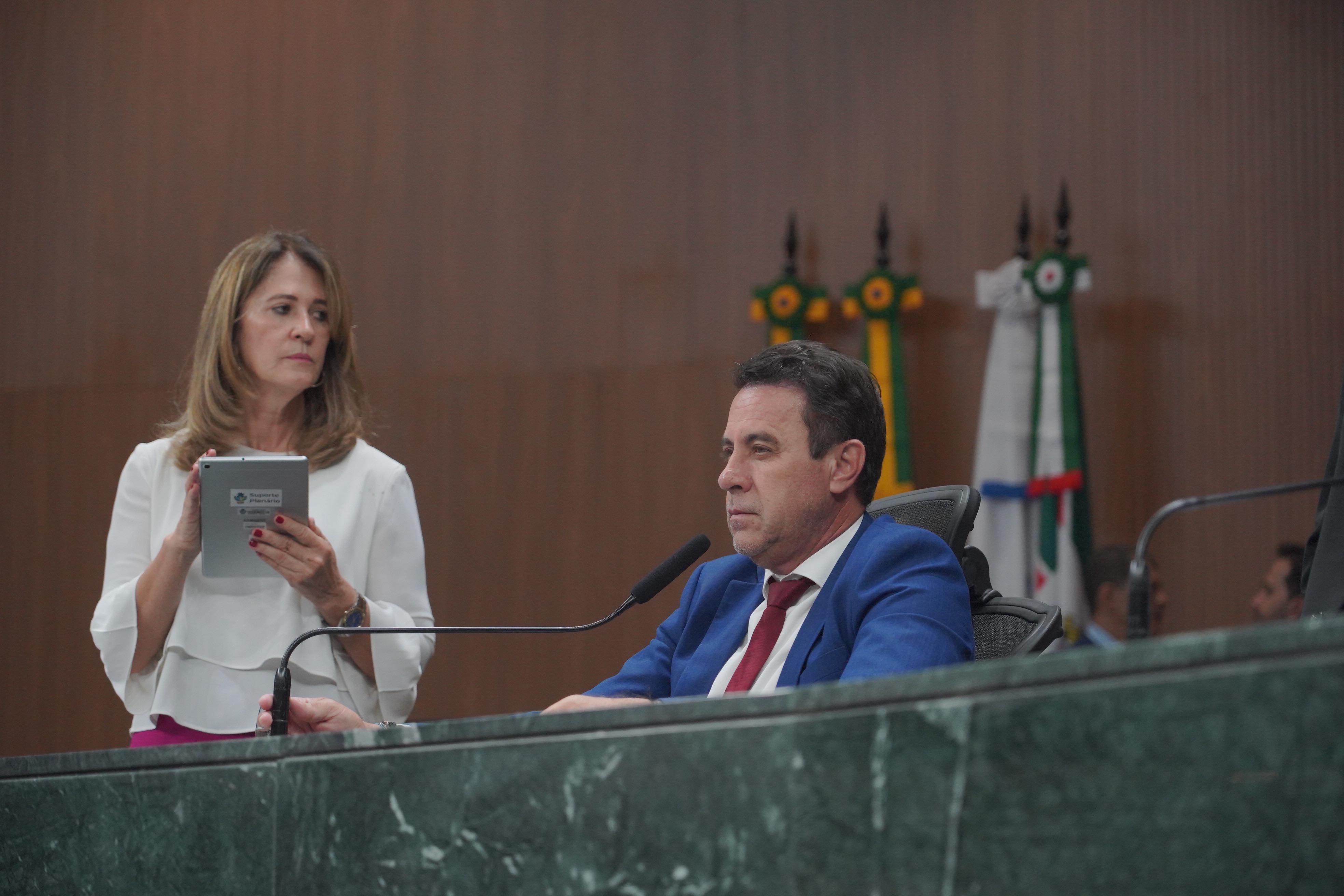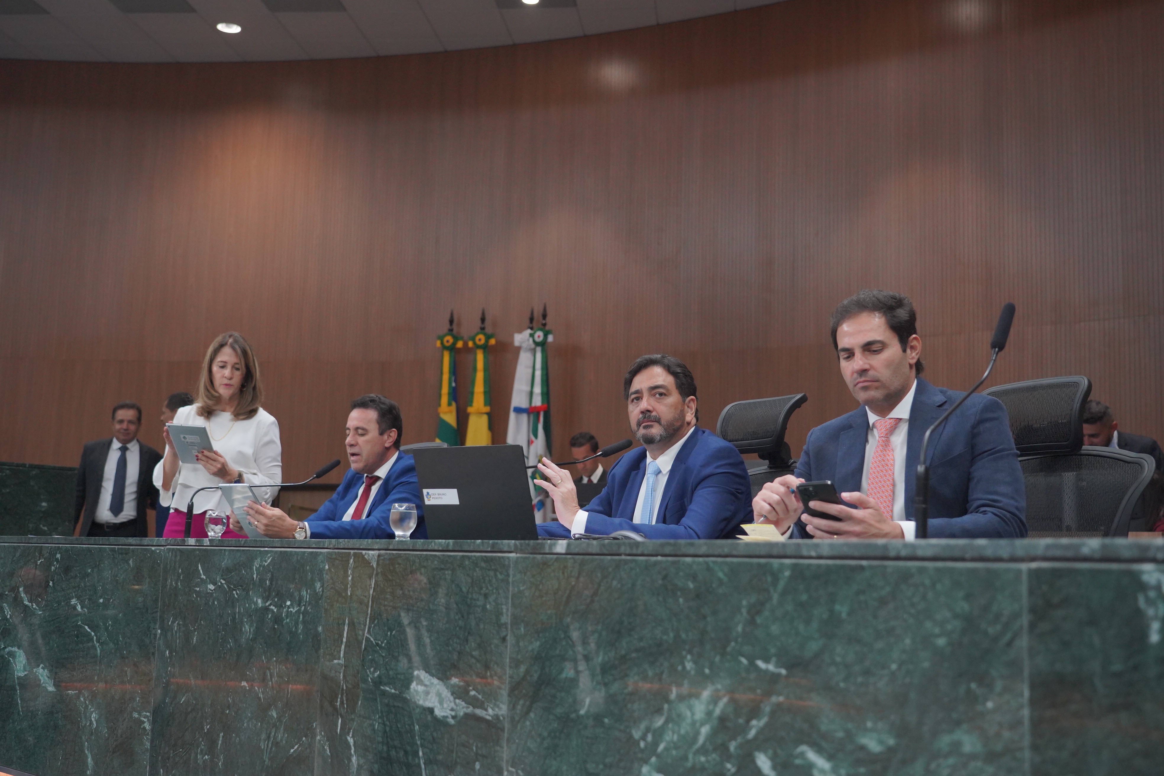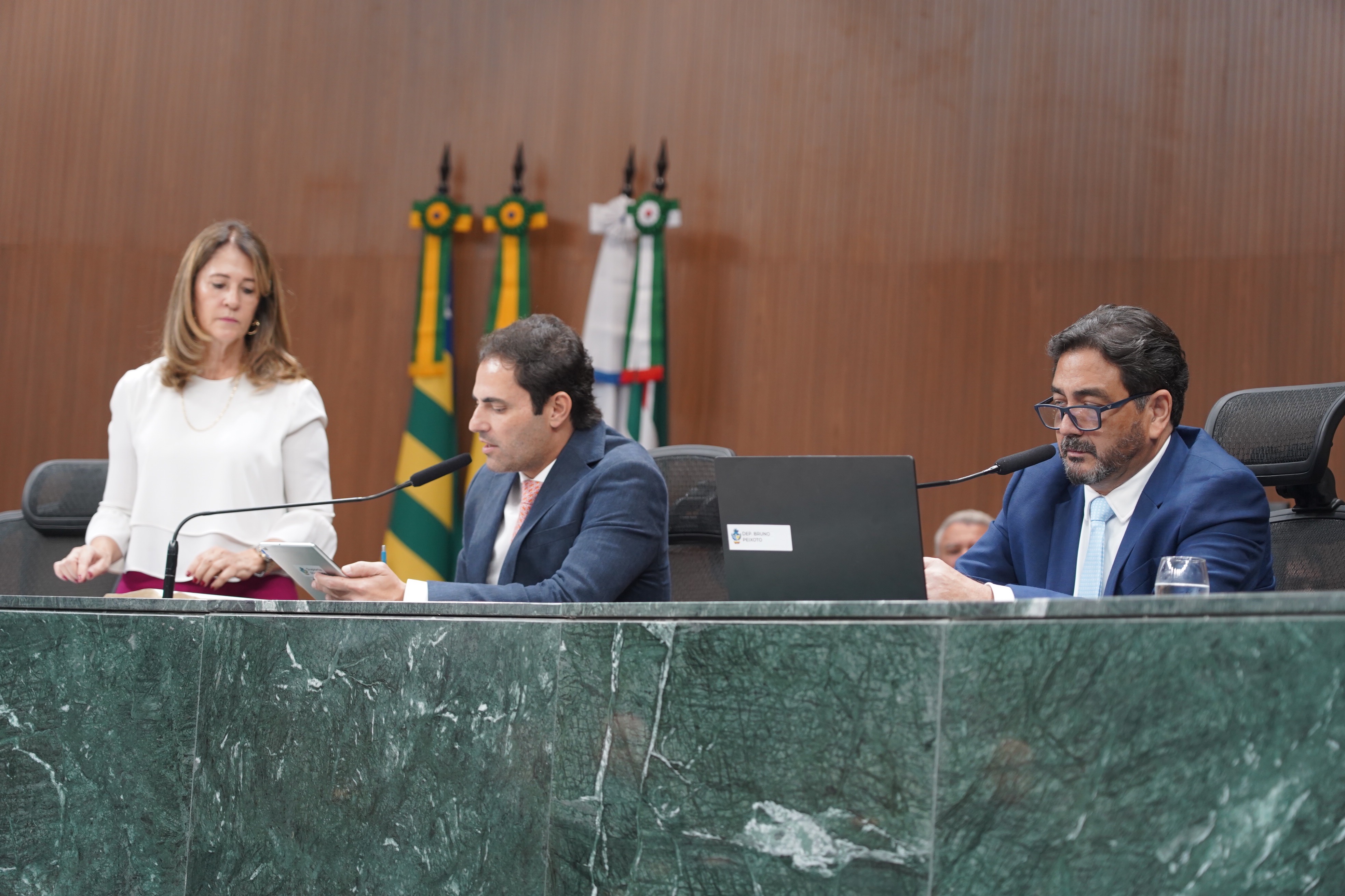 Deputados Issy Quinan e Jamil Calife discursam pela bancada de situação
