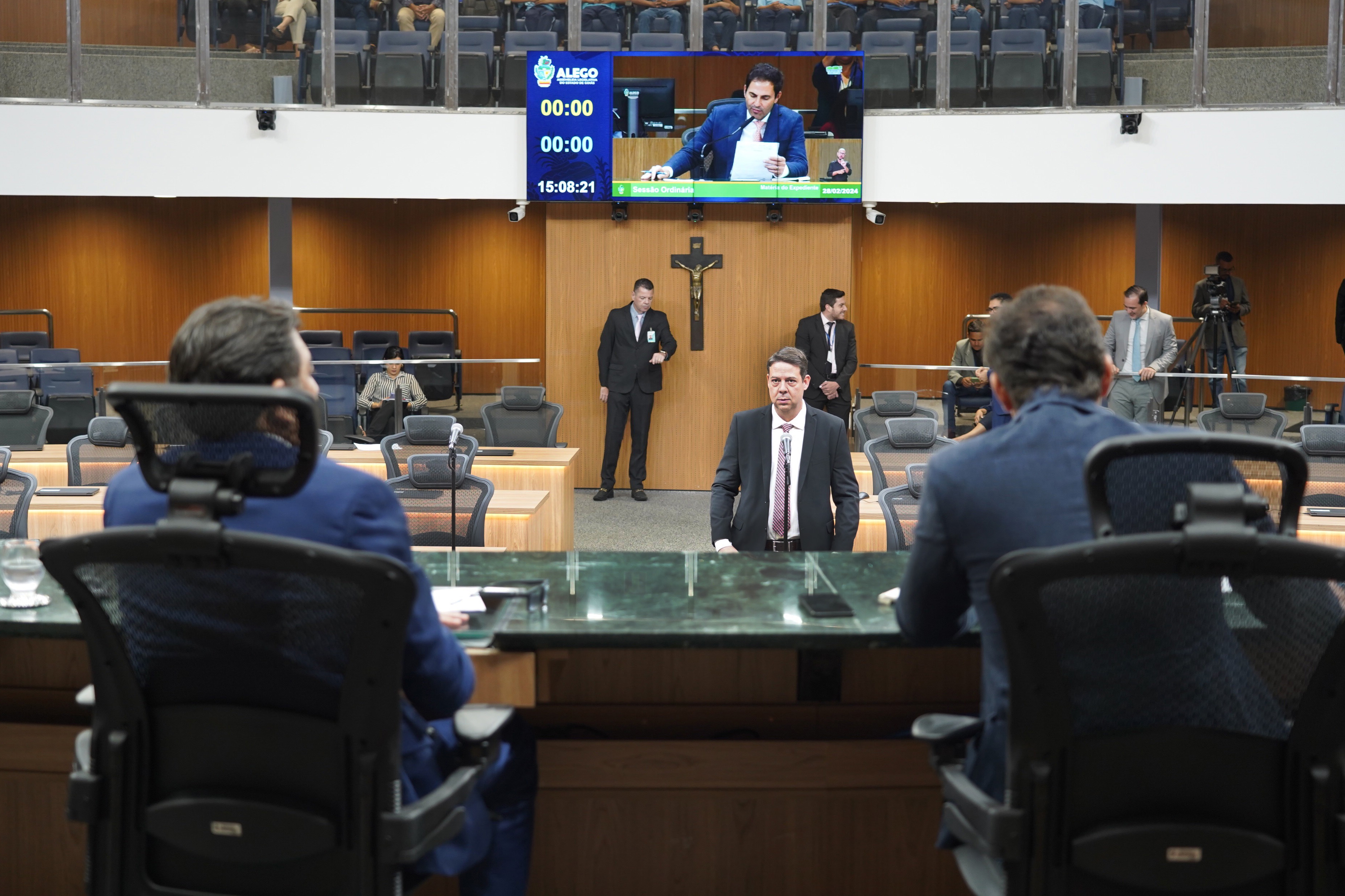 Deputados Antônio Gomide e Gugu Nader discursam pela bancada de oposição