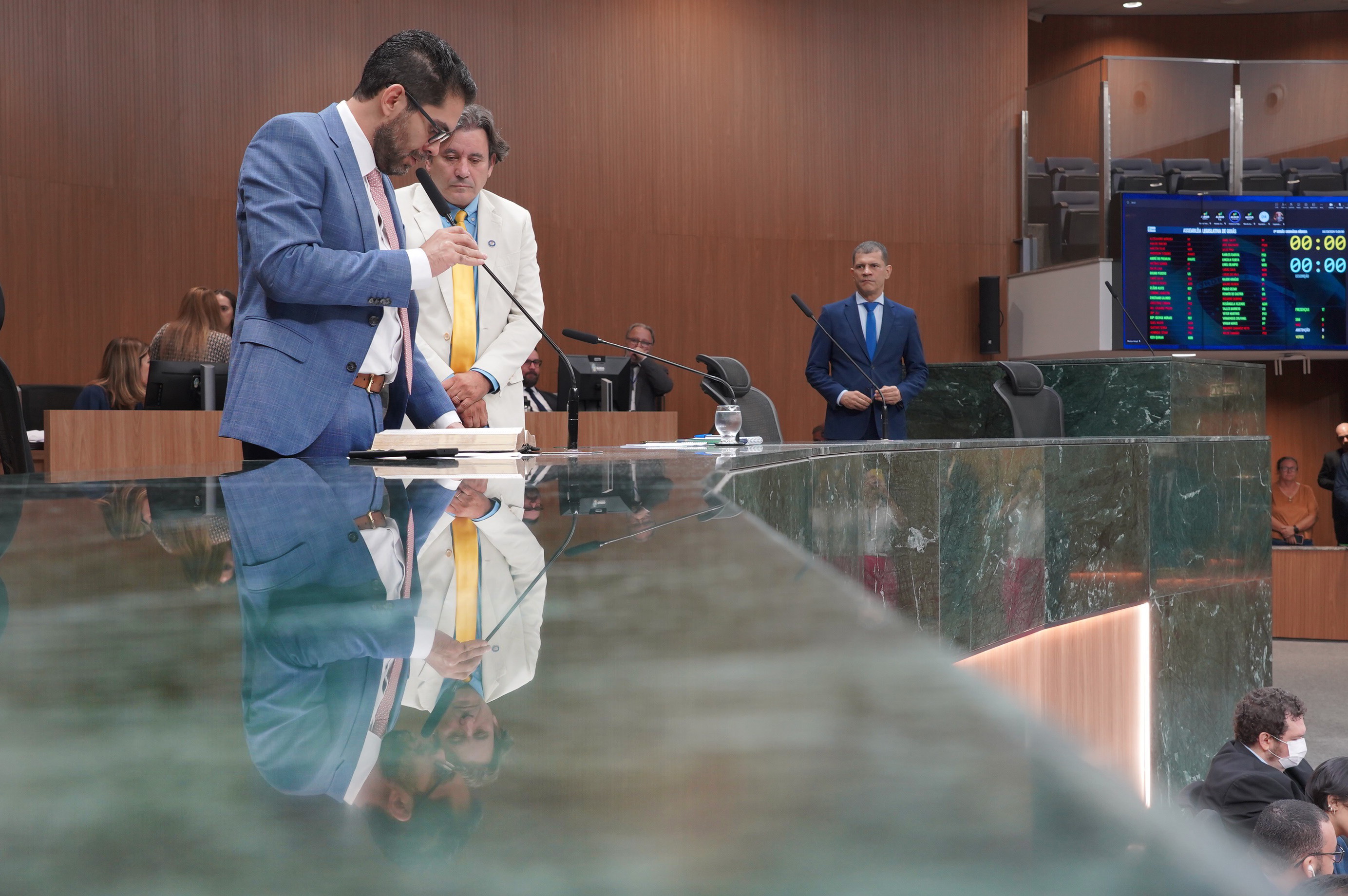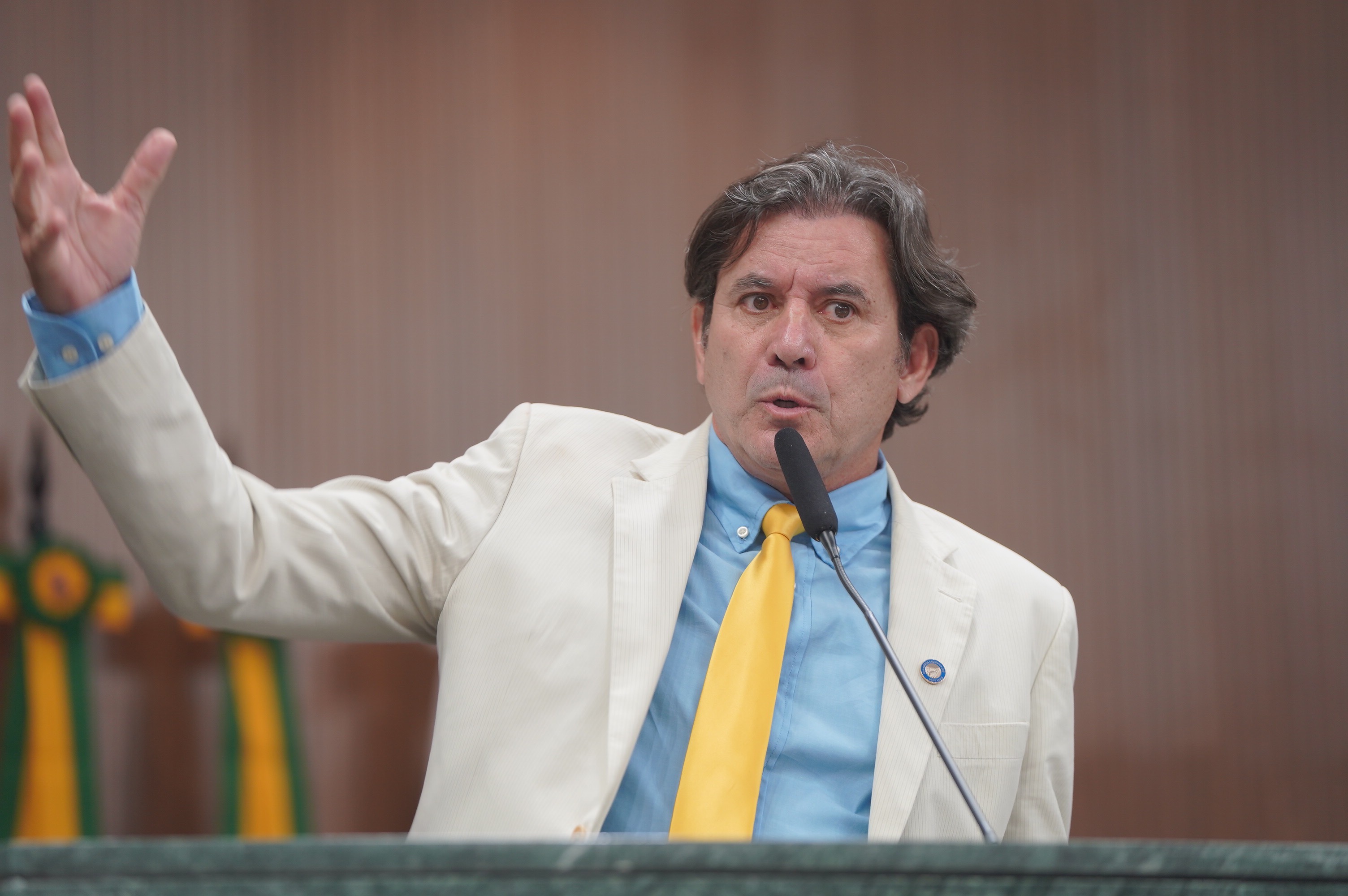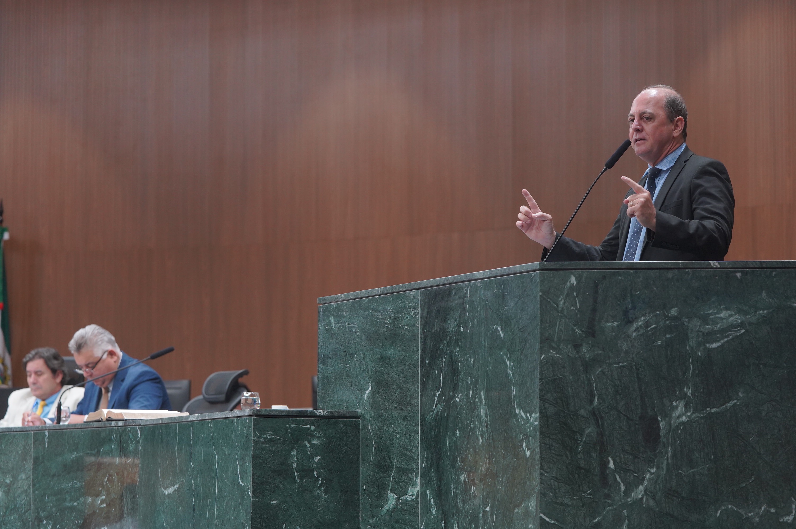 Deputados Antônio Gomide e Gugu Nader discursam pela bancada de oposição
