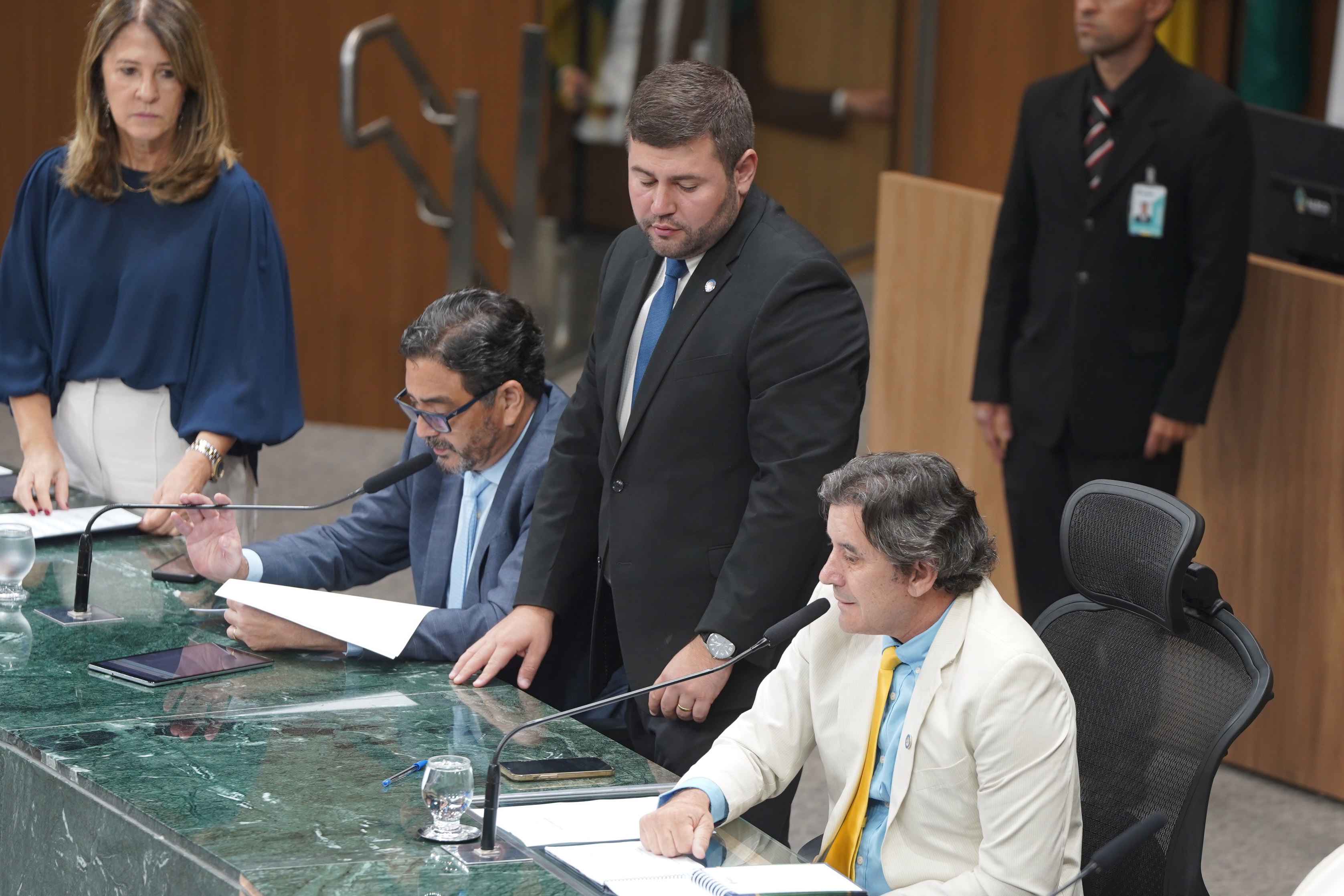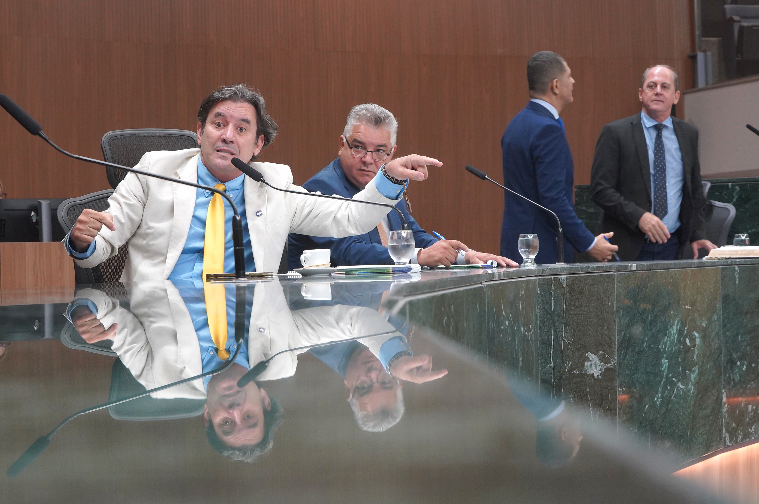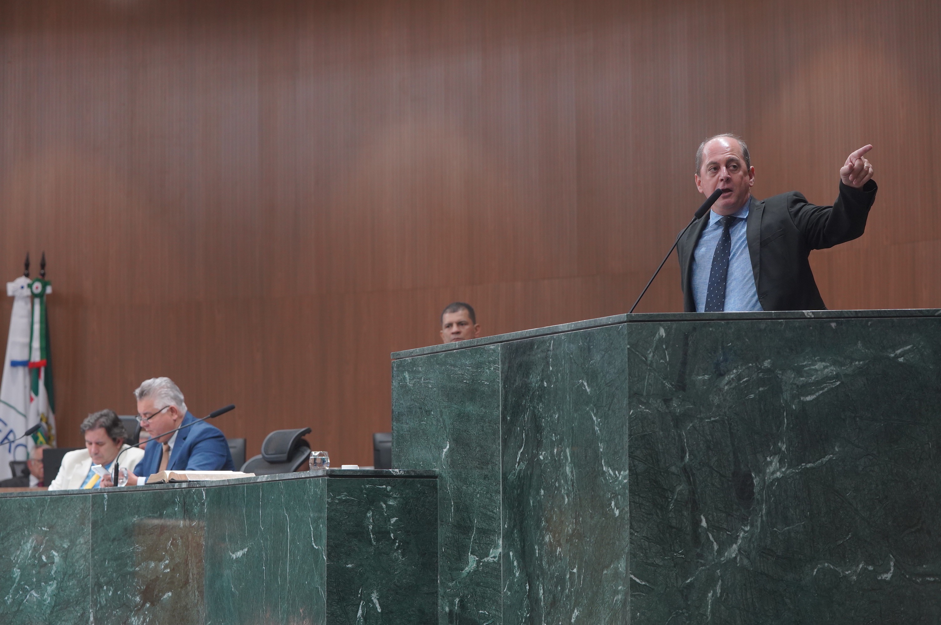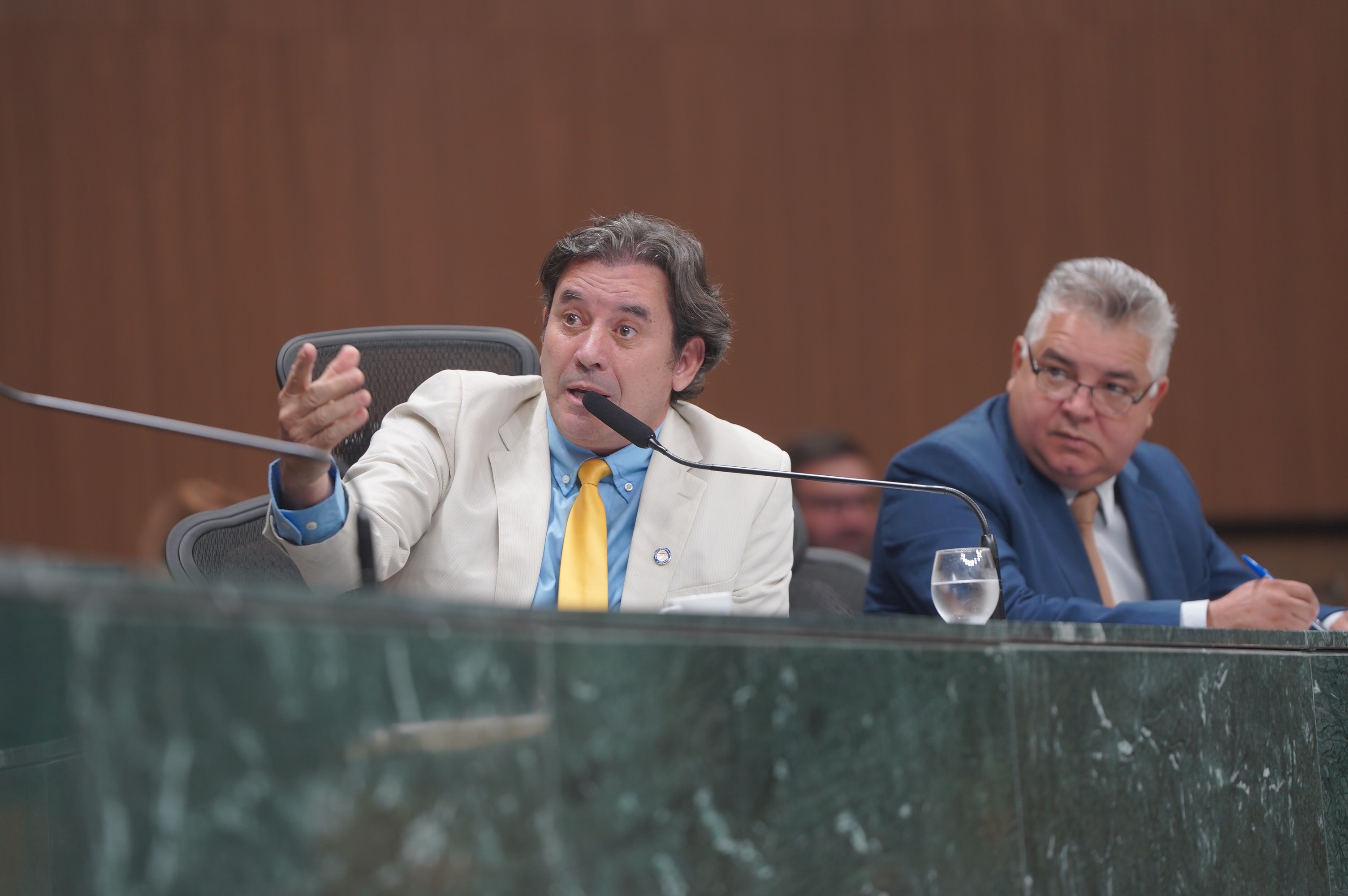 Deputados Issy Quinan e Jamil Calife discursam pela bancada de situação