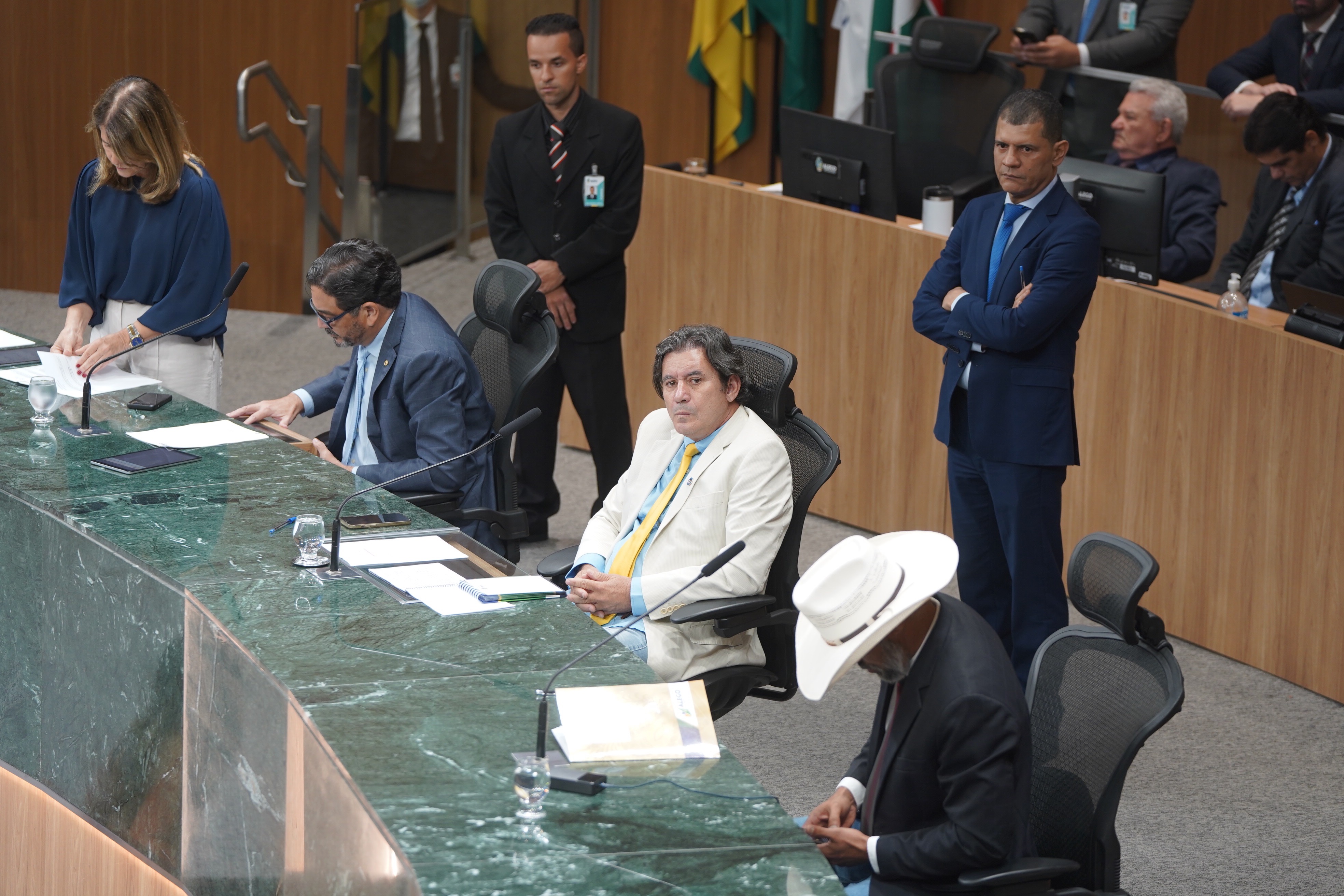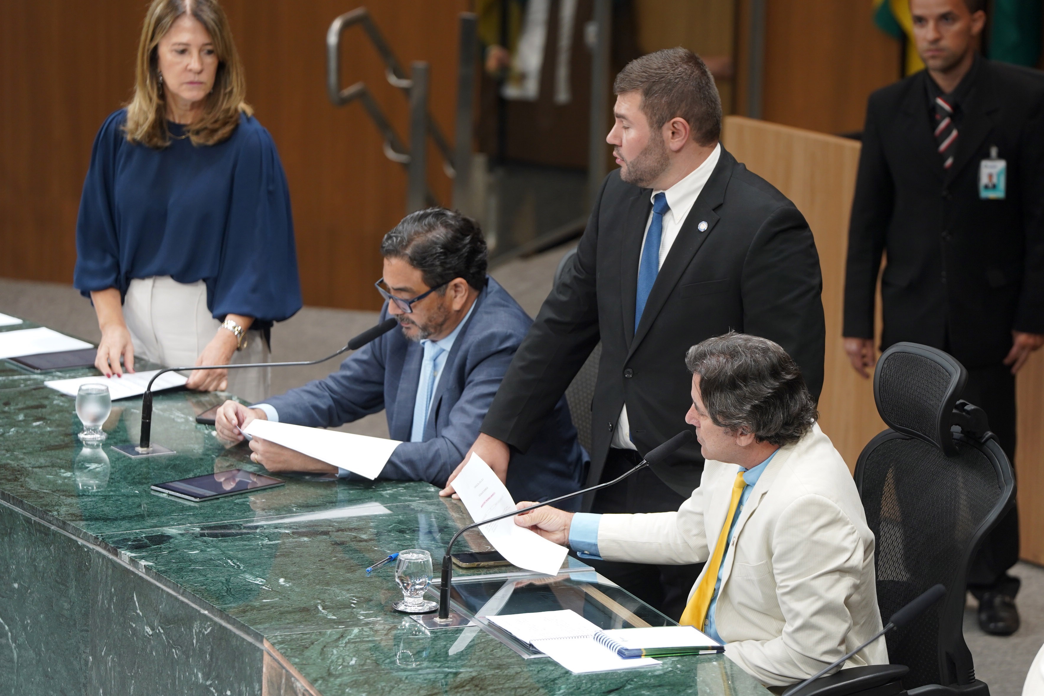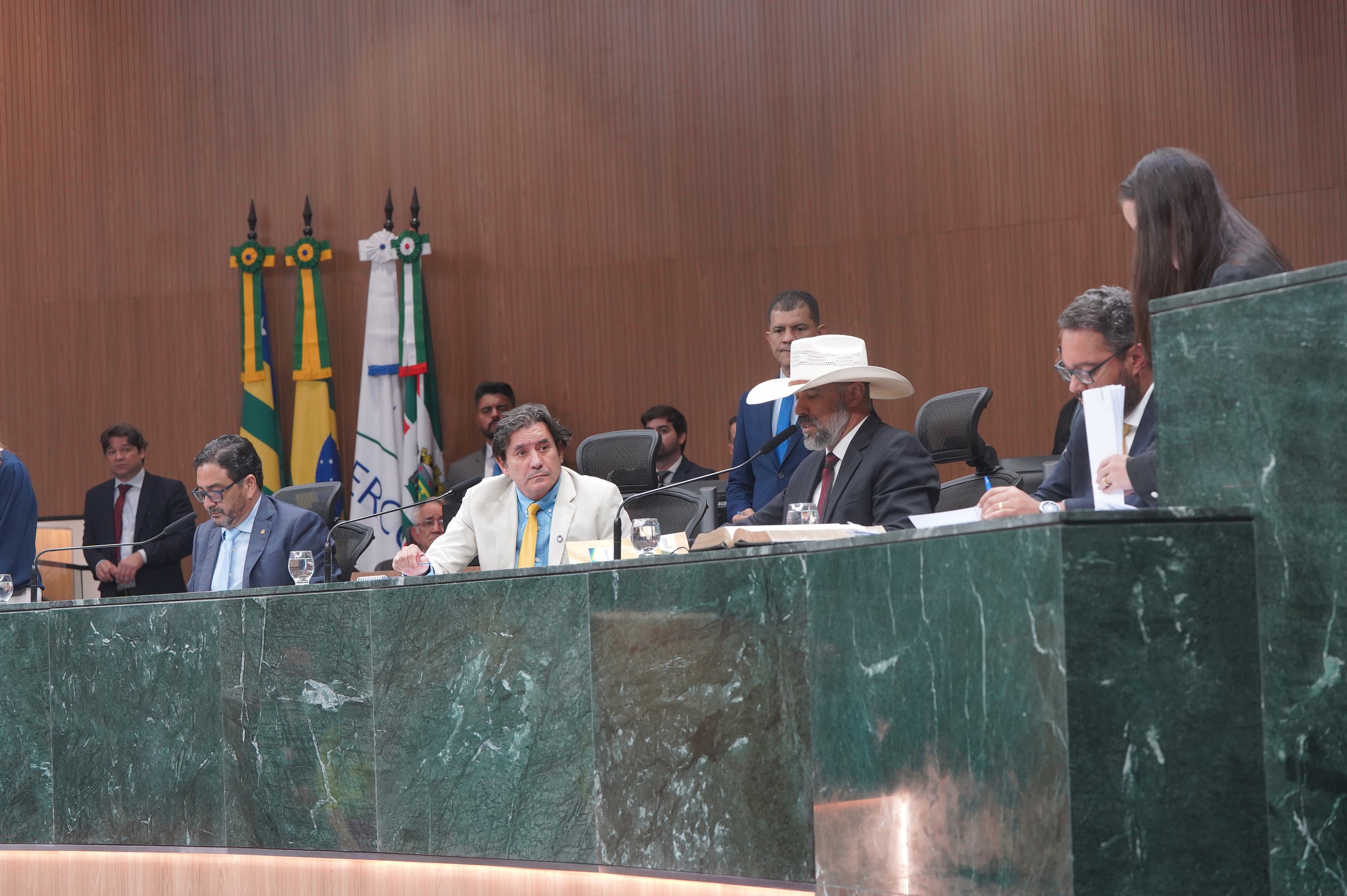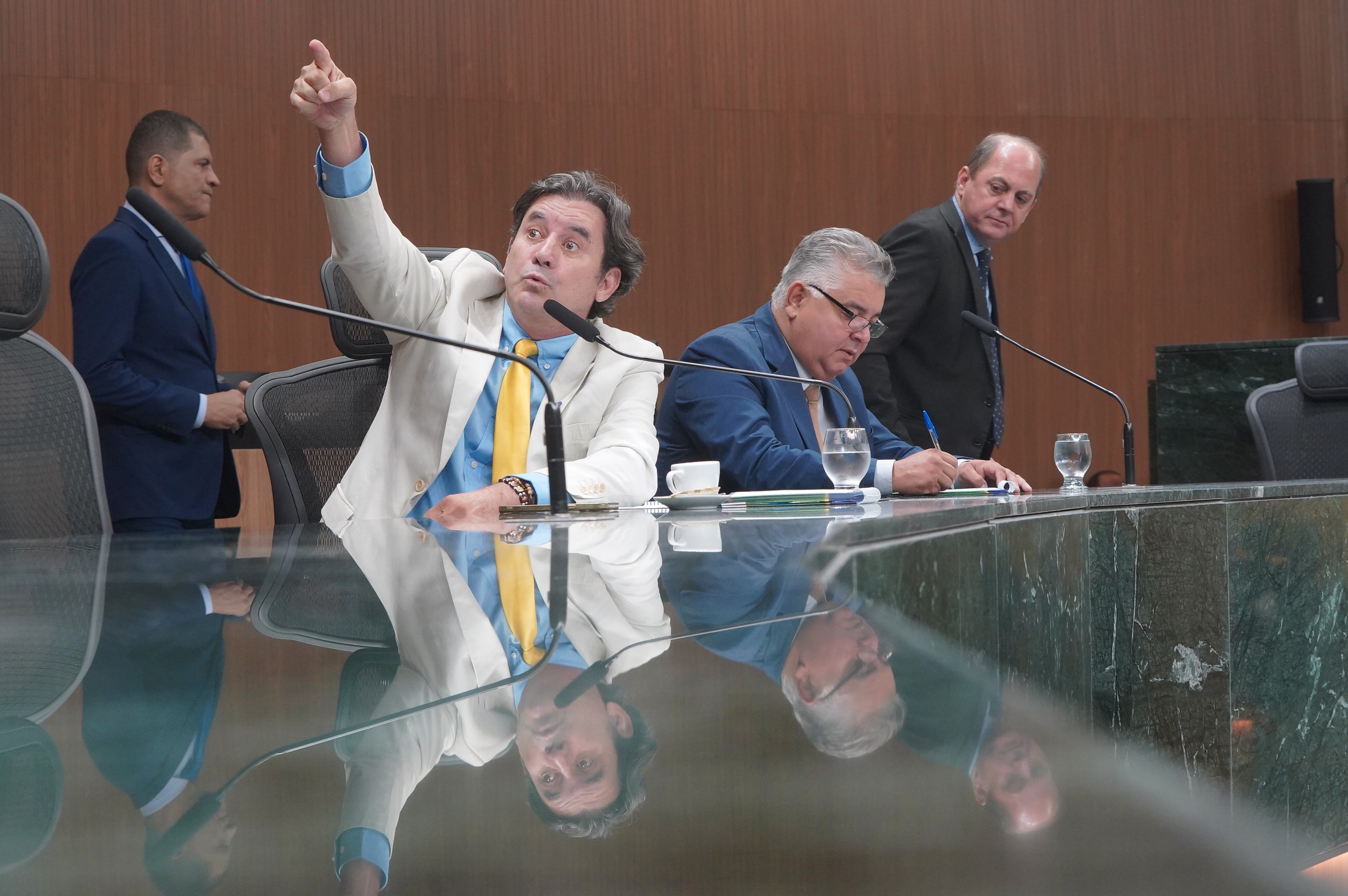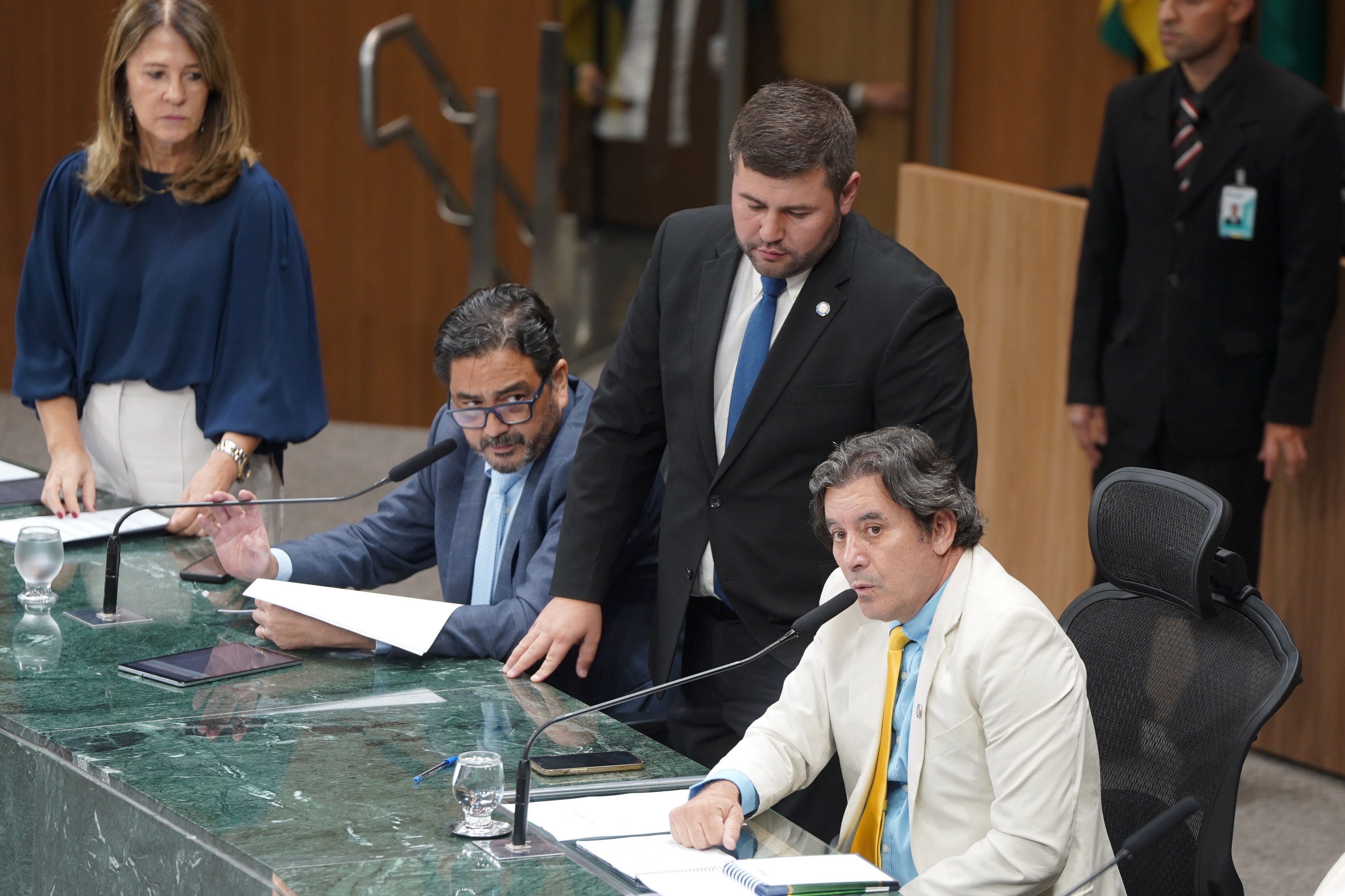 Deputados Issy Quinan e Jamil Calife discursam pela bancada de situação