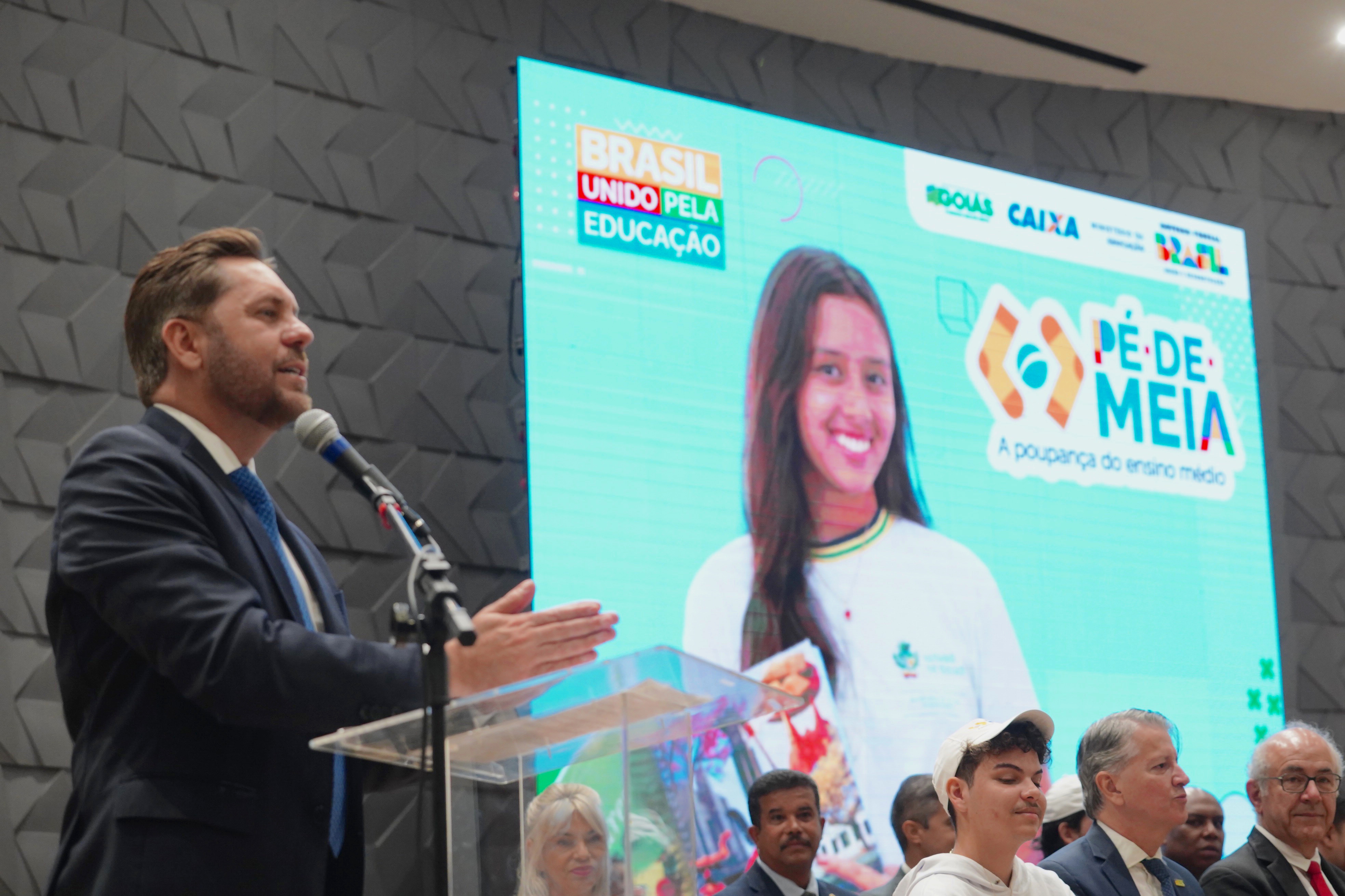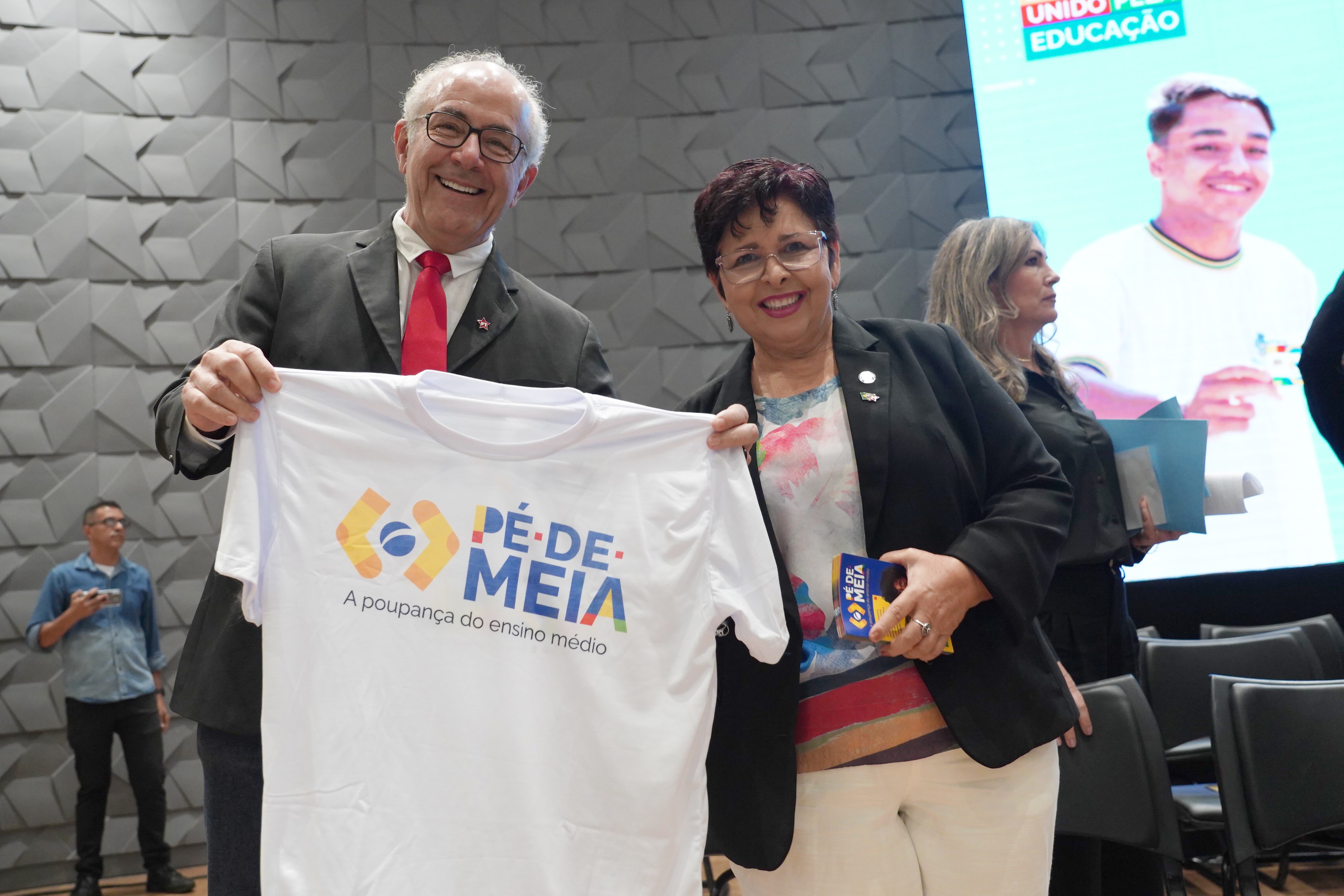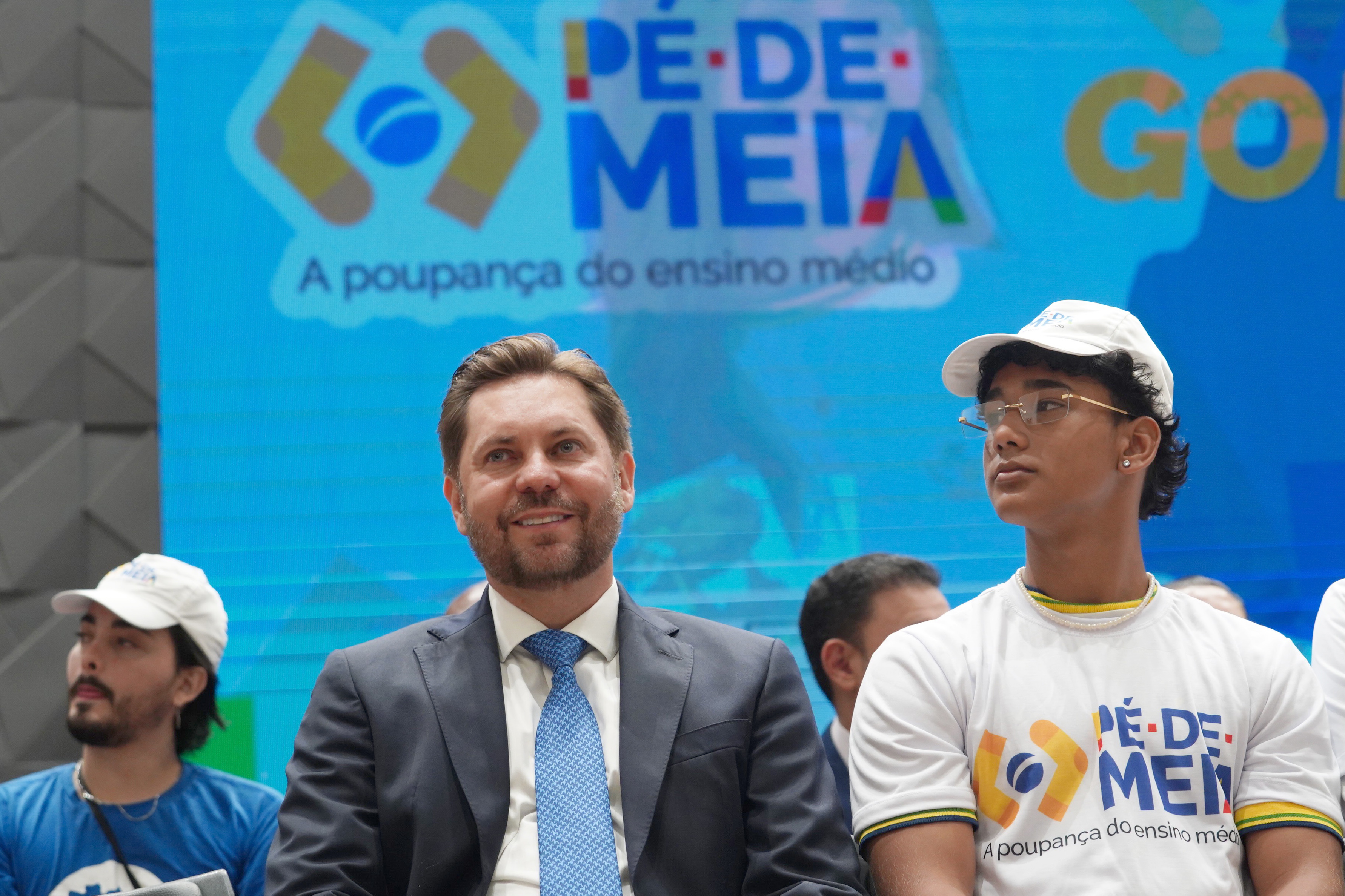 Entrega dos cartões do Programa Pé-de-Meia, com a presença do ministro de Educação, Camilo Santana Carlos Costa