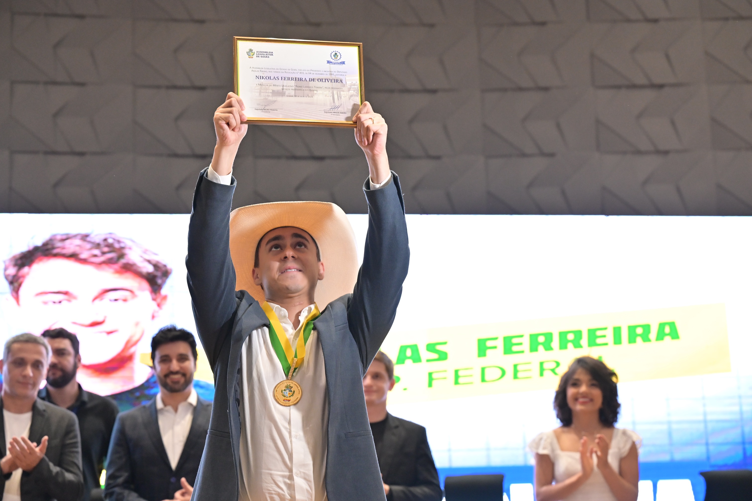 Álbum Sessão de entrega da Medalha do Mérito Legislativo Pedro Ludovico Teixeira ao deputado federal Nikolas Ferreira de Oliveira