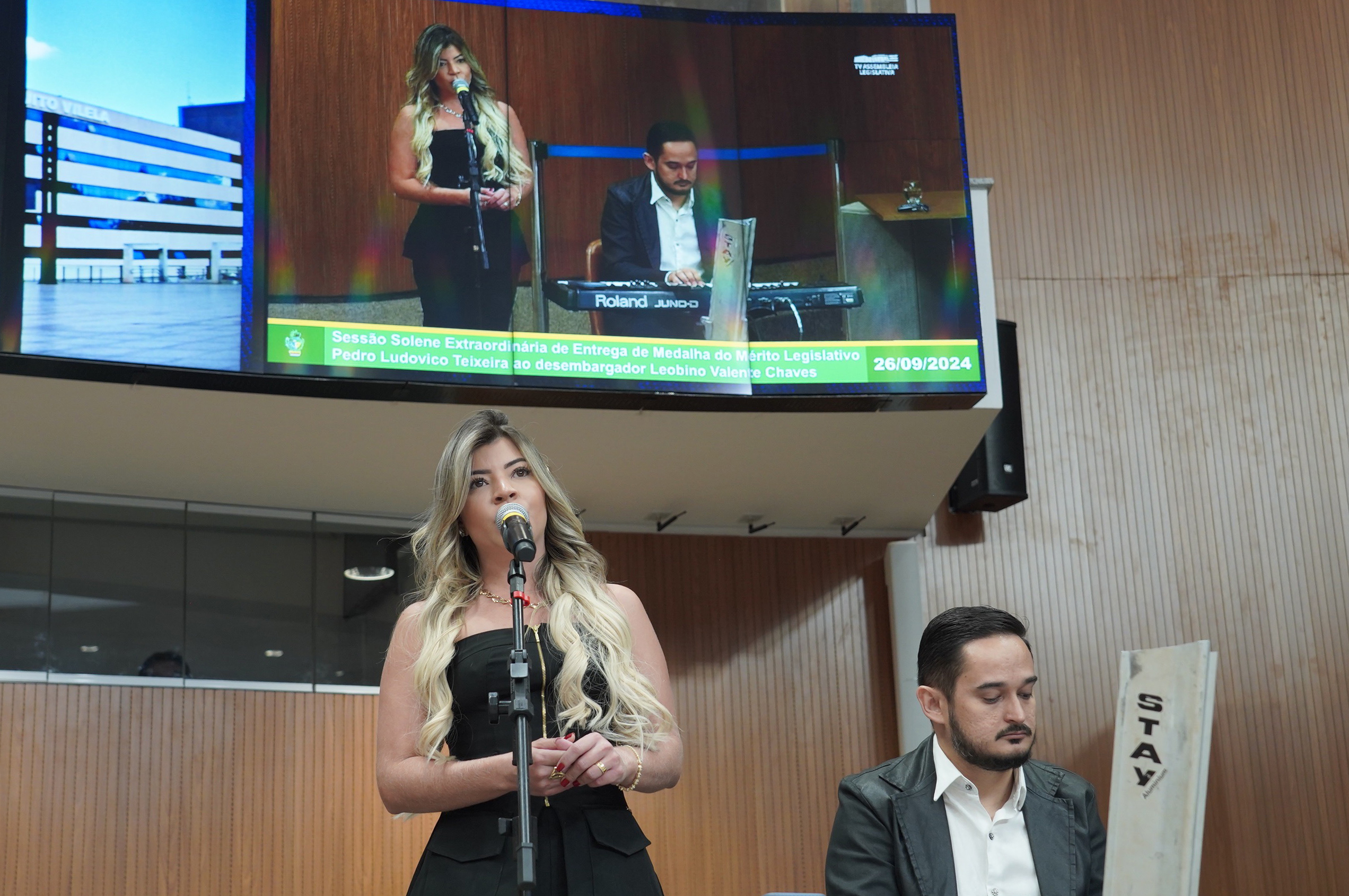 Sessão solene de entrega de Medalha do Mérito Legislativo Pedro Ludovico Teixeira ao desembargador Leobino Valente Chaves Denise Xavier