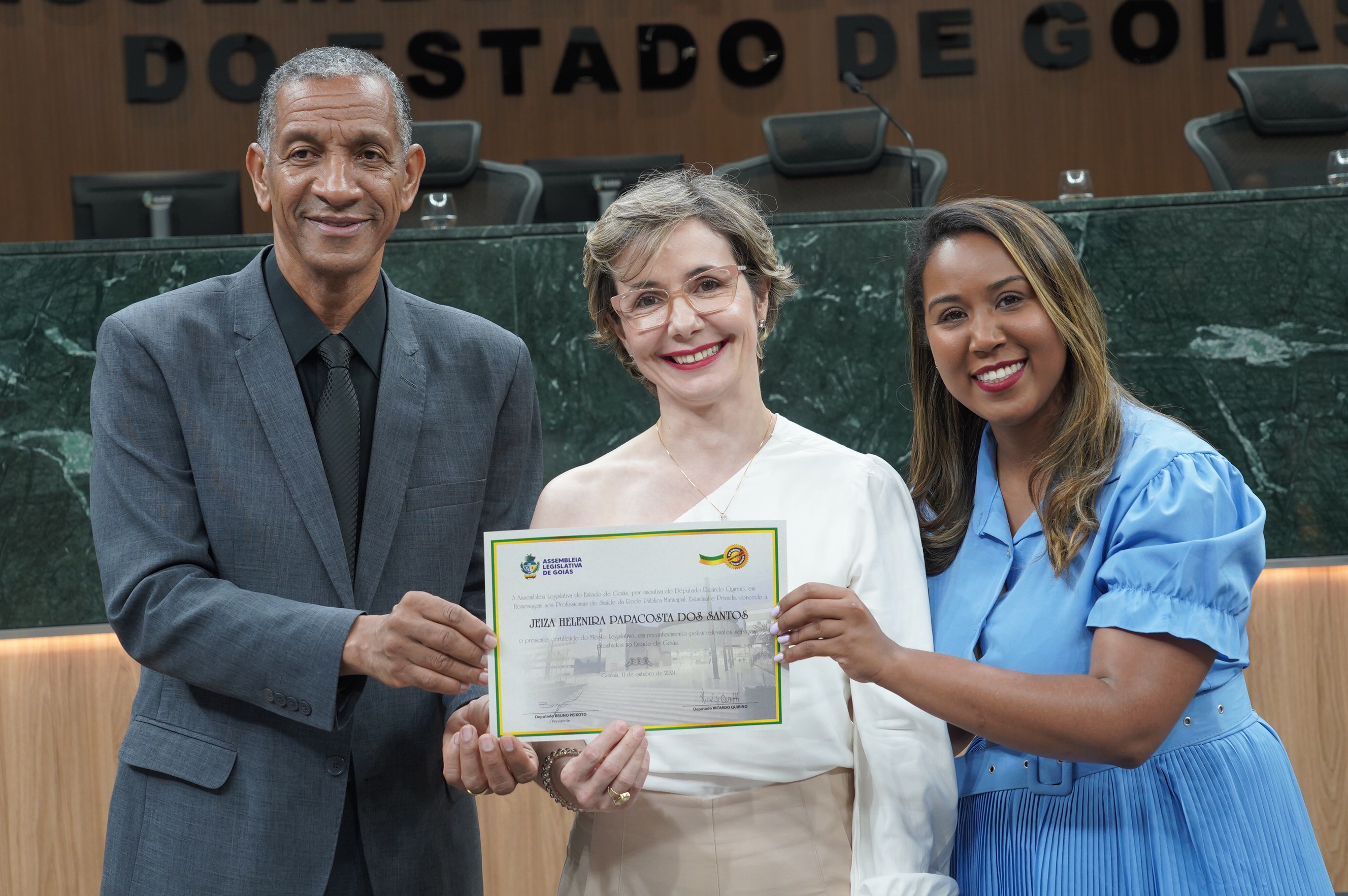 Sessão solene em homenagem aos prestadores de serviço de saúde da rede pública estadual, municipal e privada de Goiás Denise Xavier