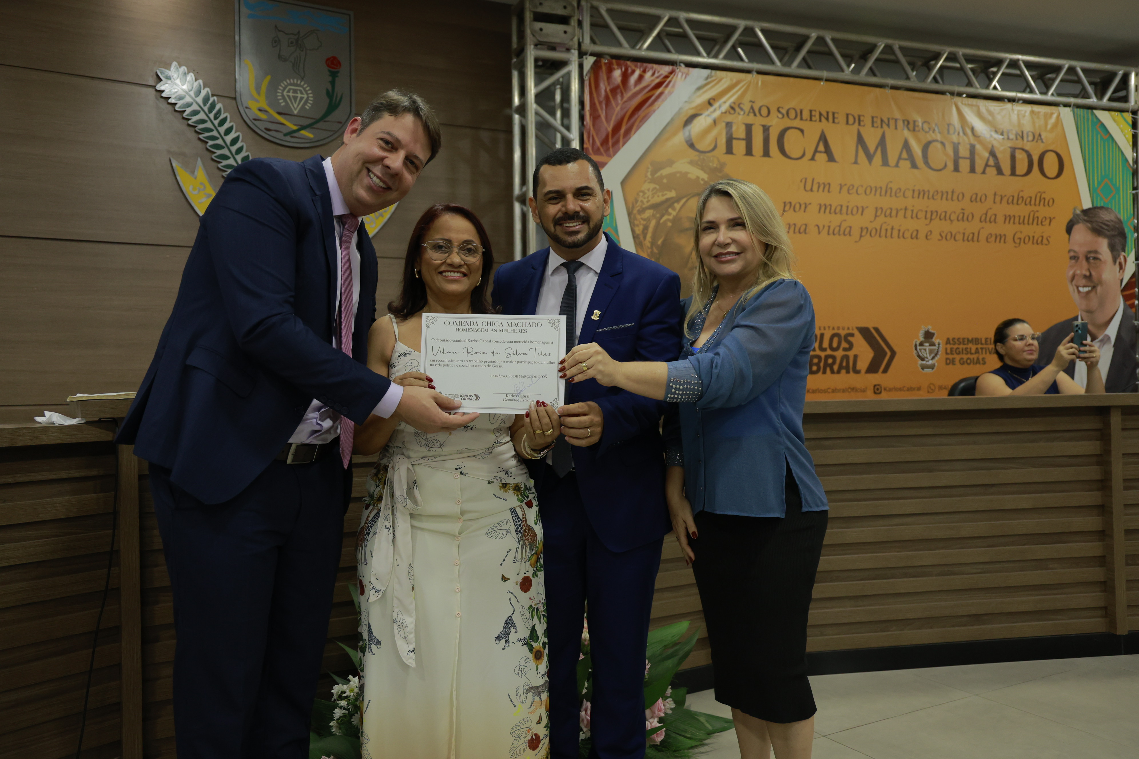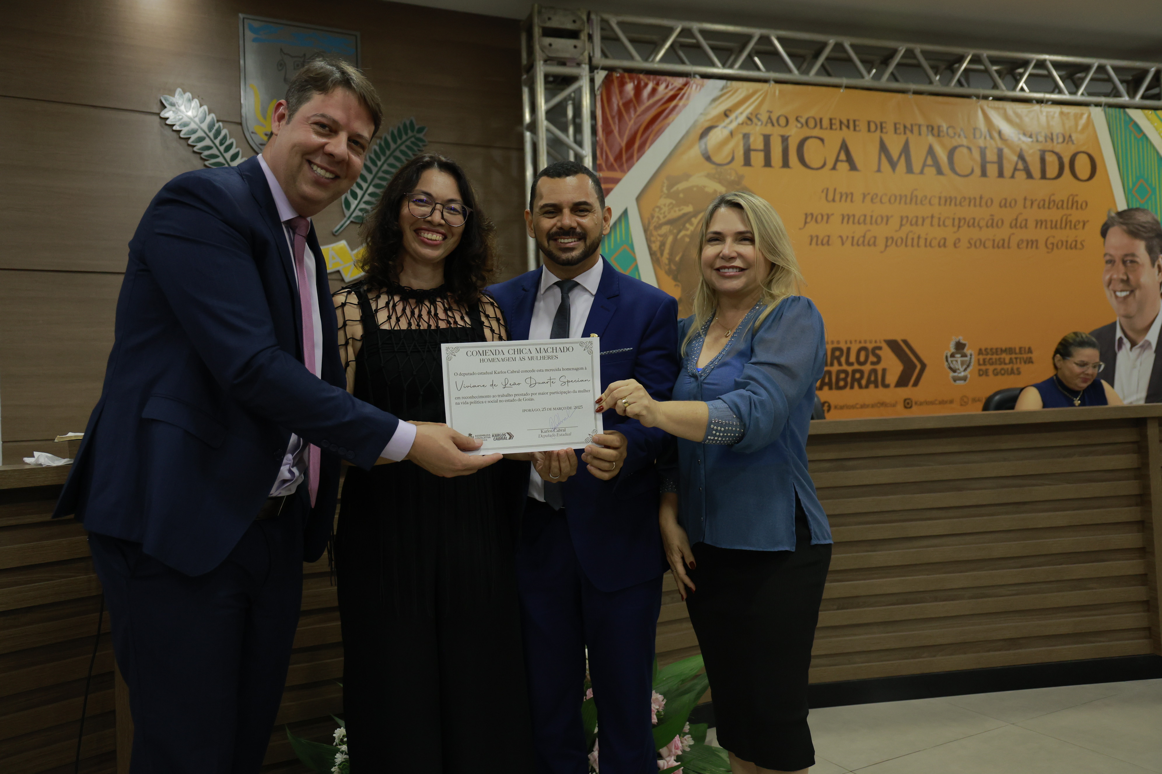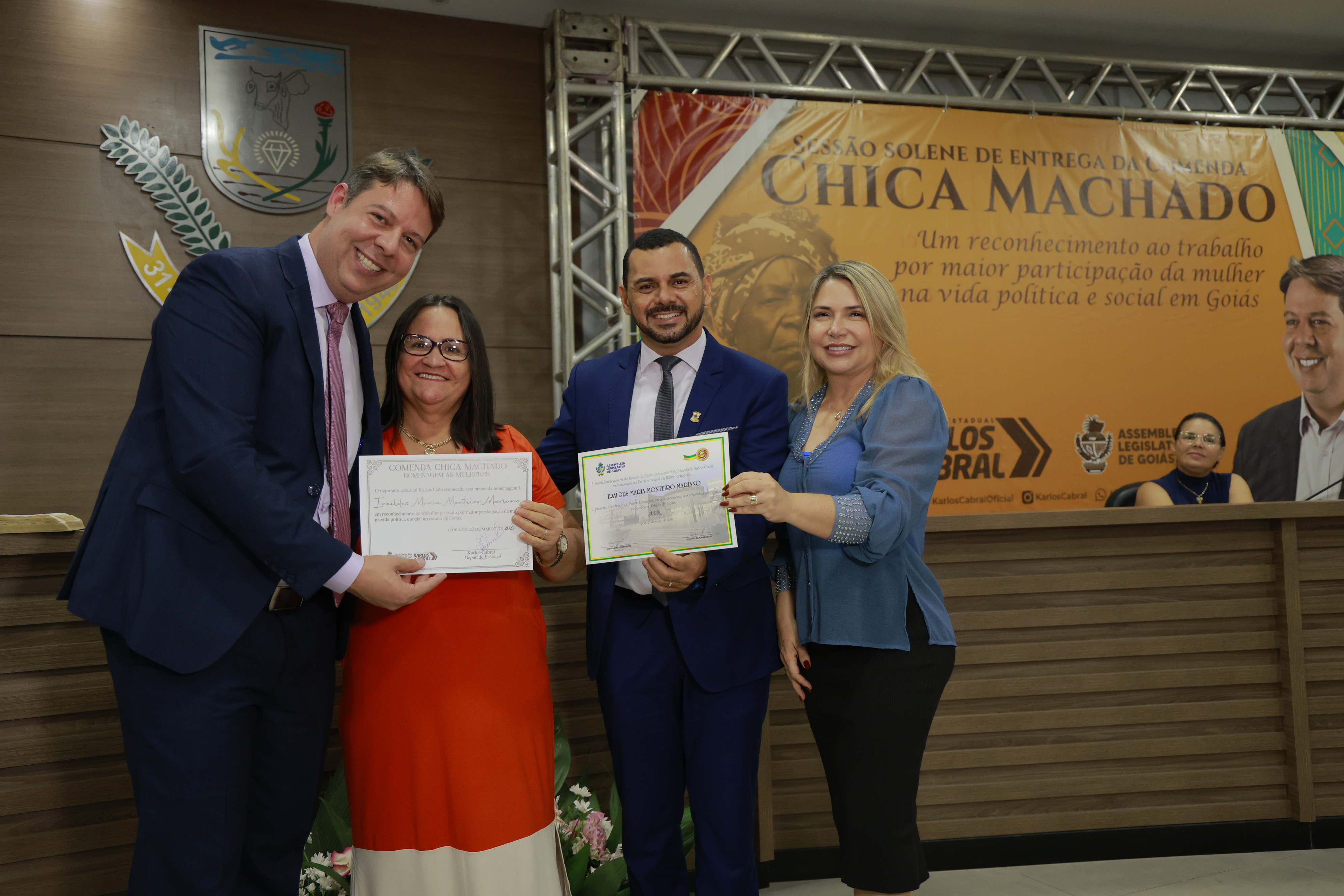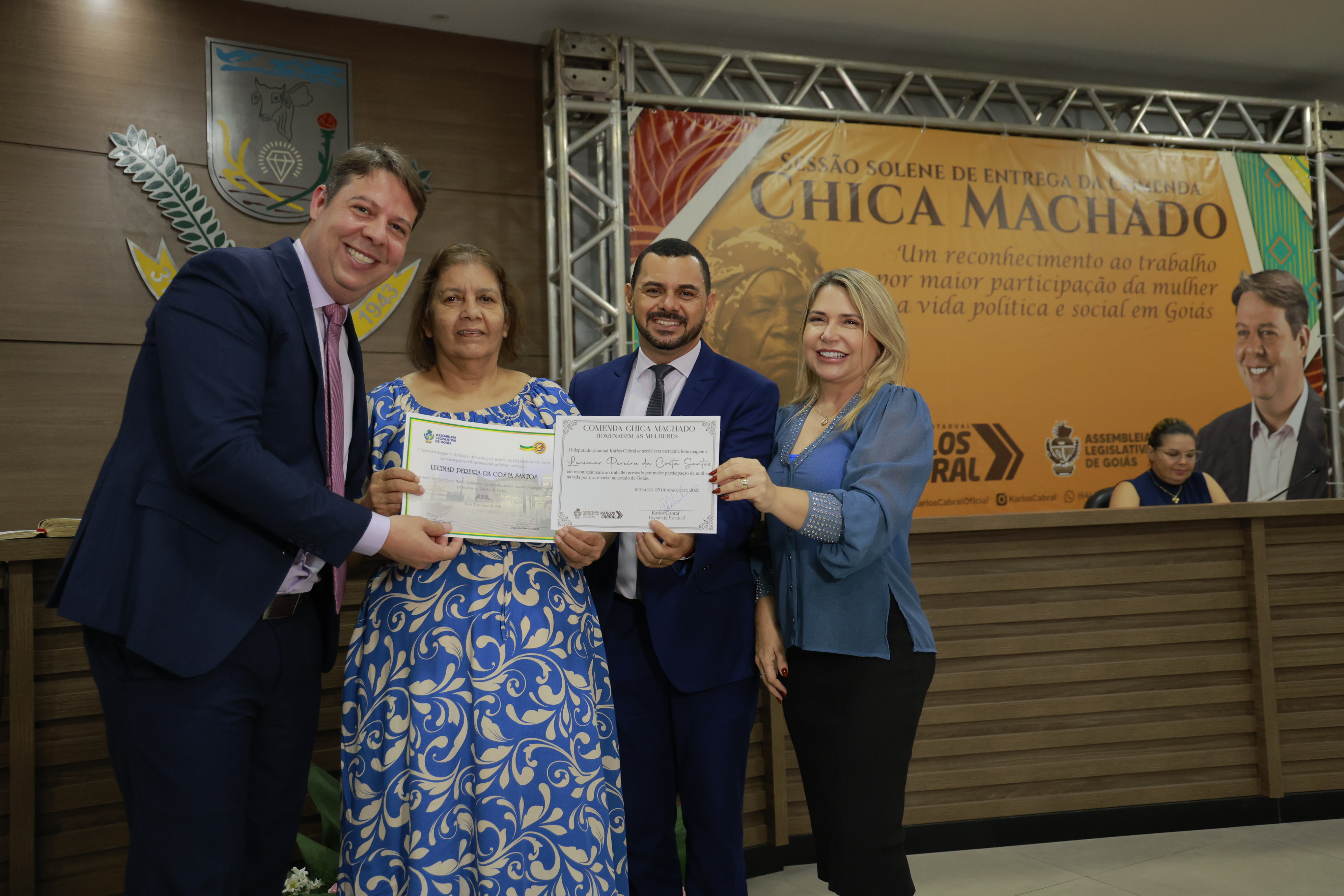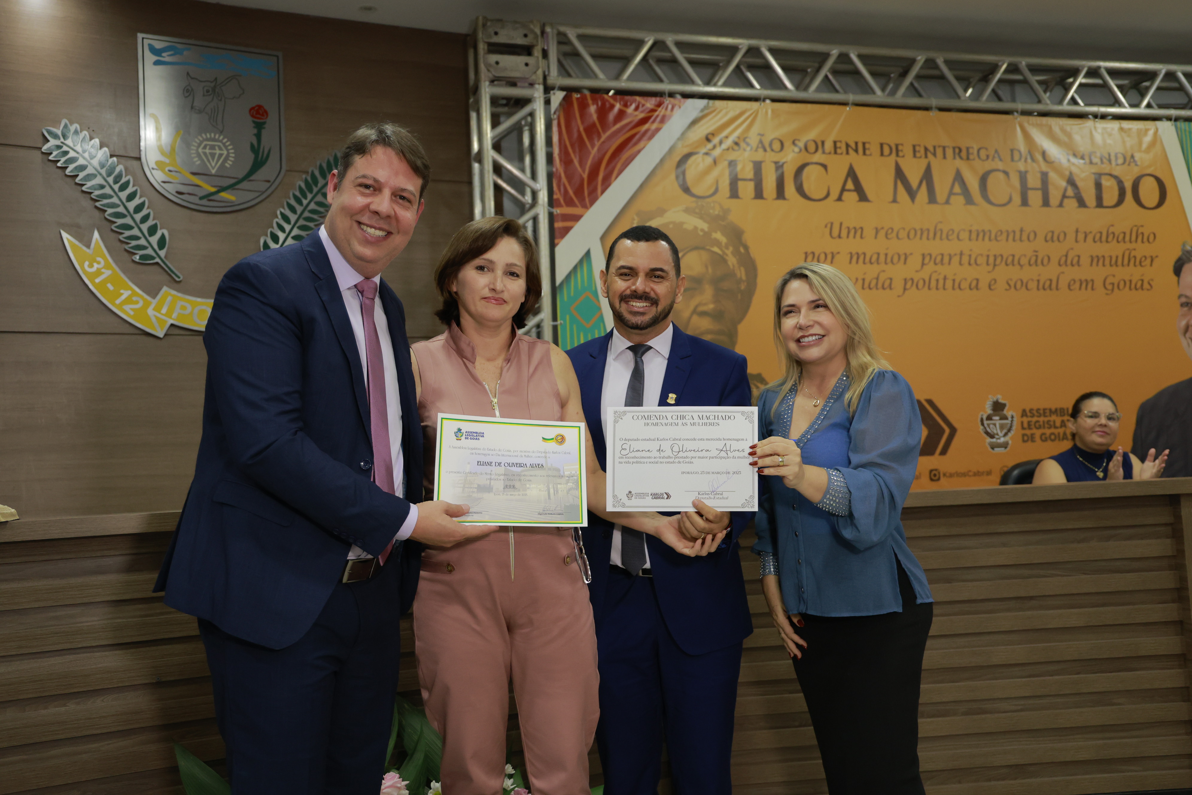 Sessão solene itinerante na cidade de Iporá de entrega da Comenda Chica Machado Carlos Costa