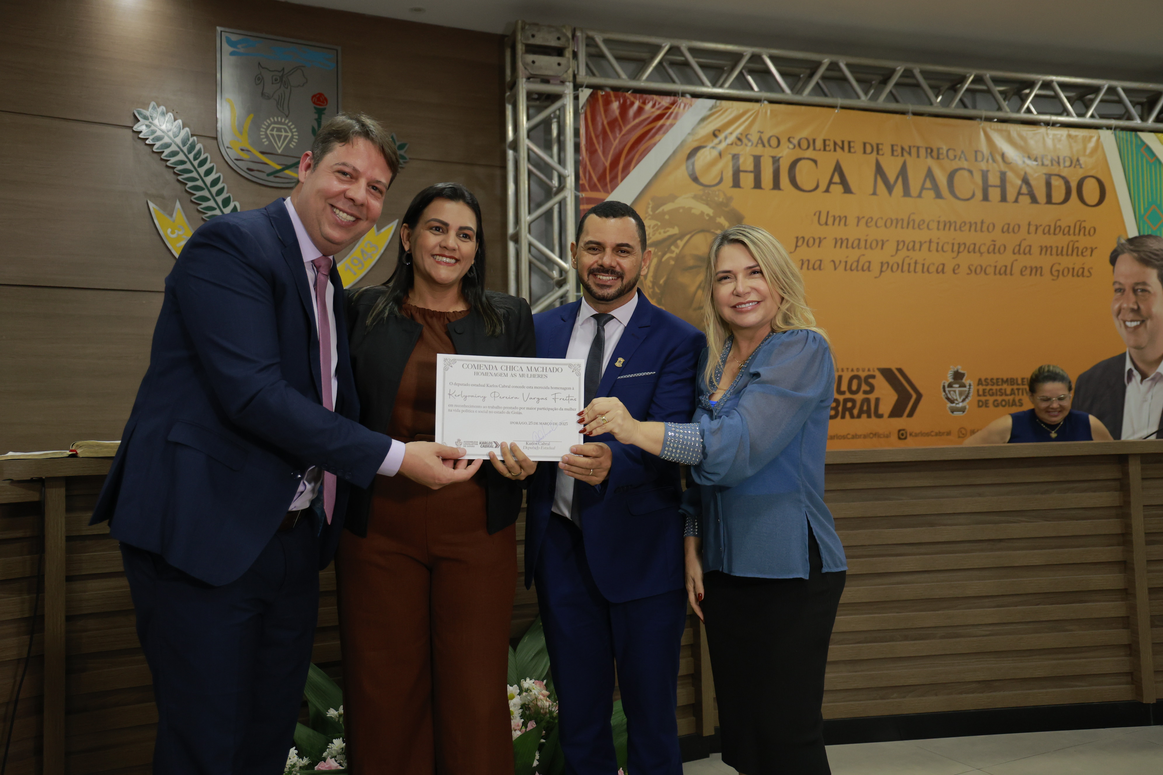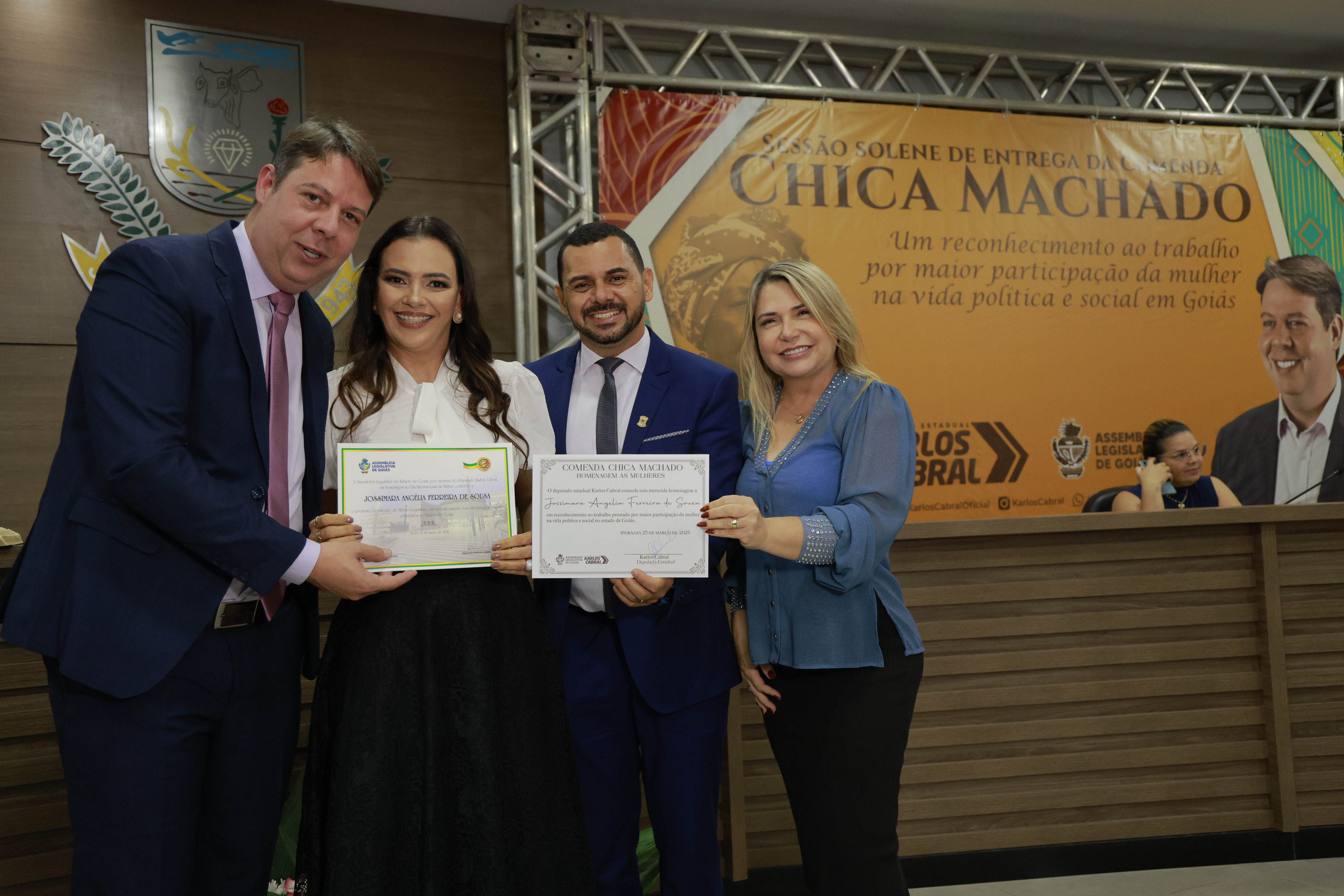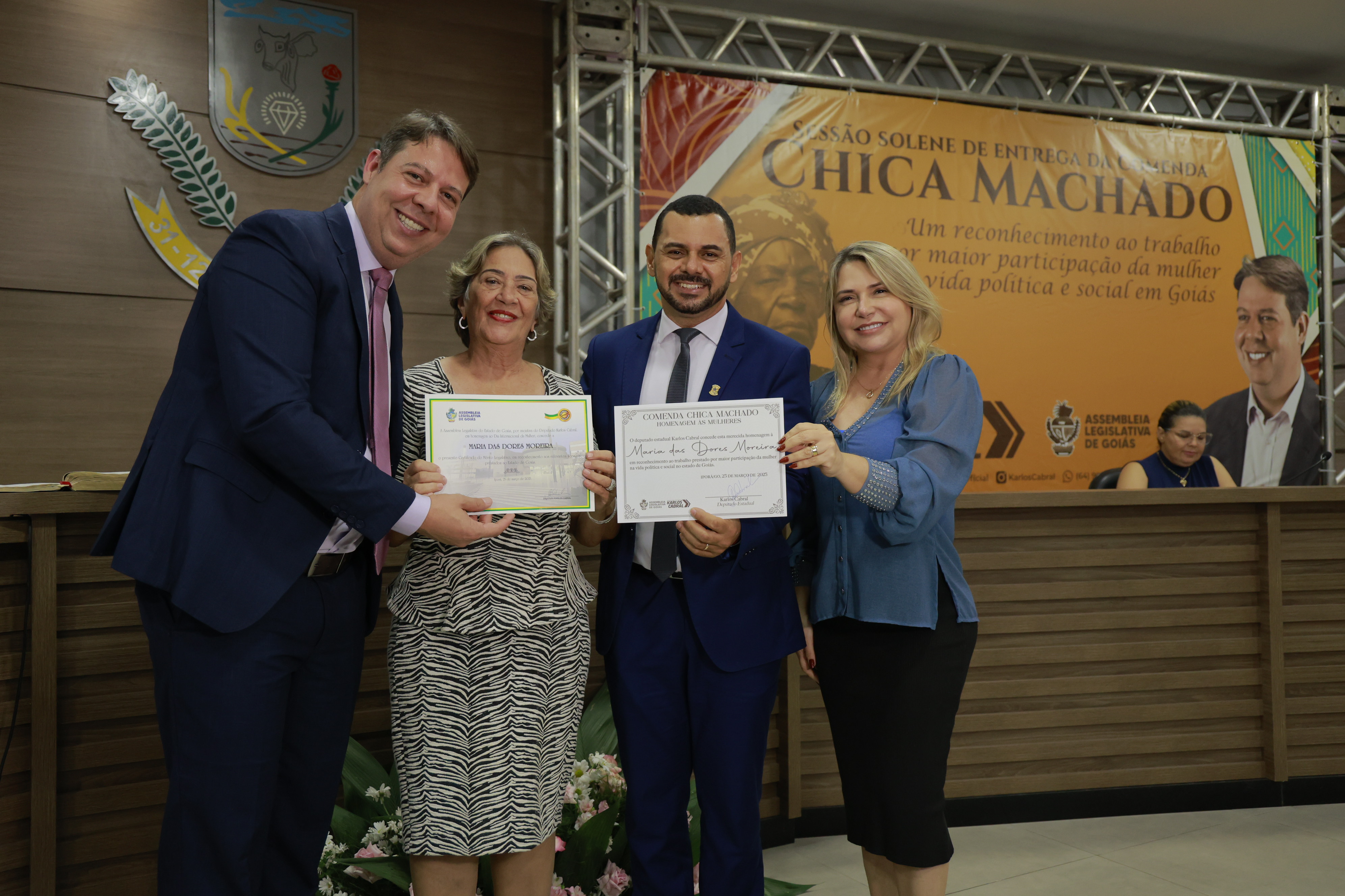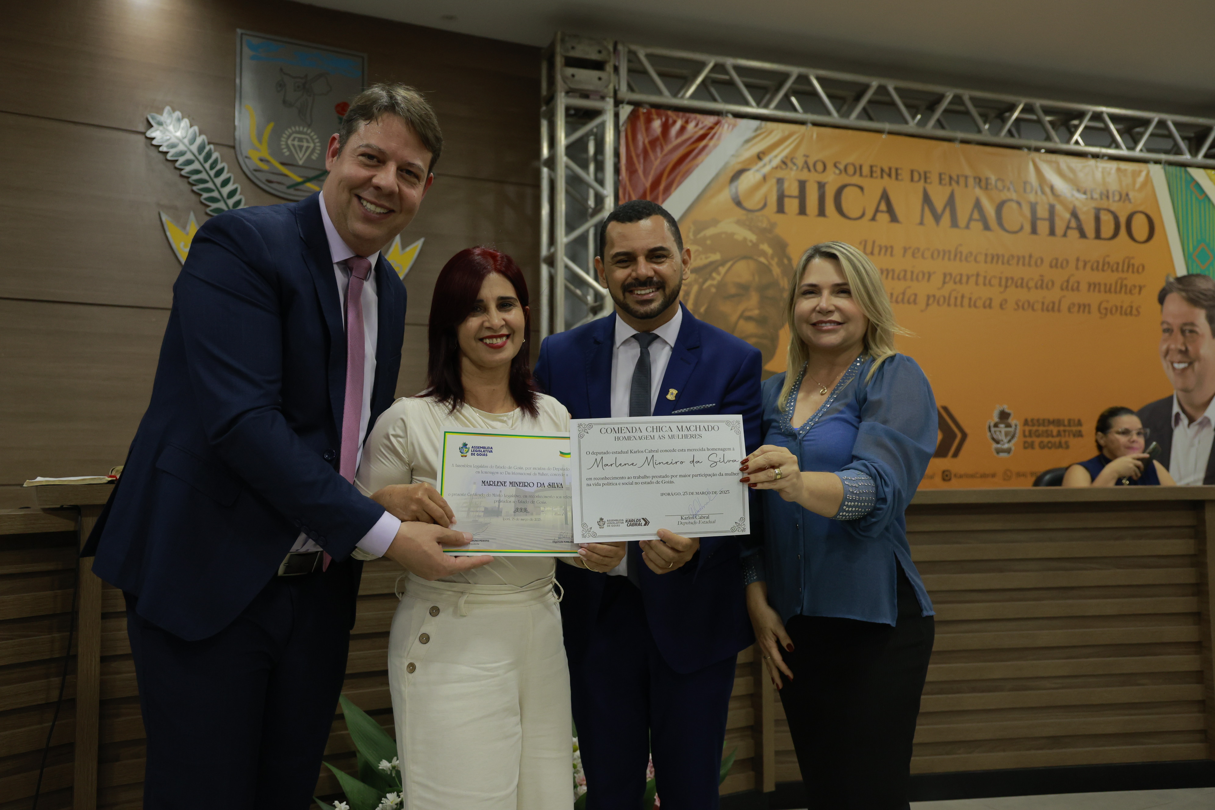 Sessão solene itinerante na cidade de Iporá de entrega da Comenda Chica Machado Carlos Costa