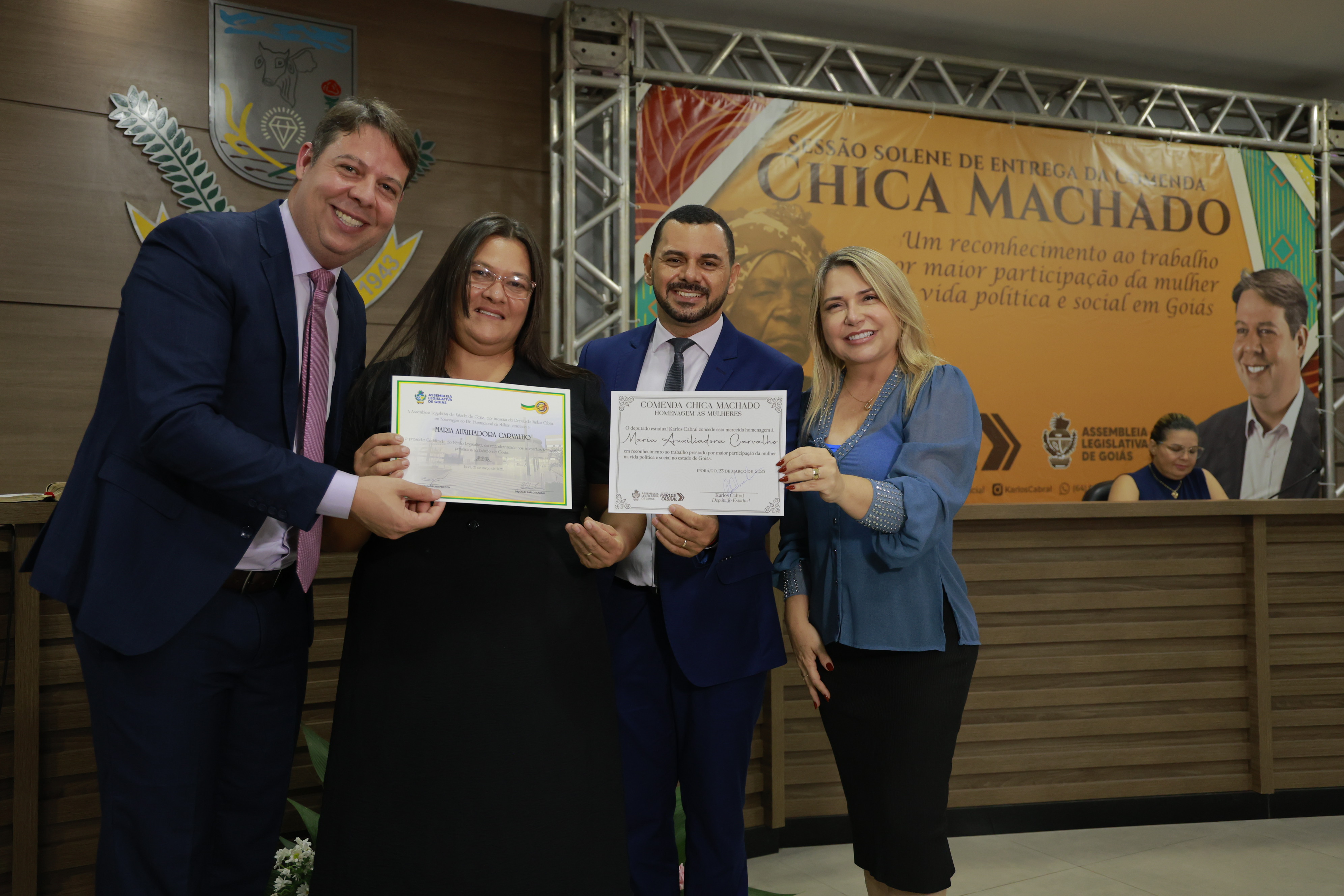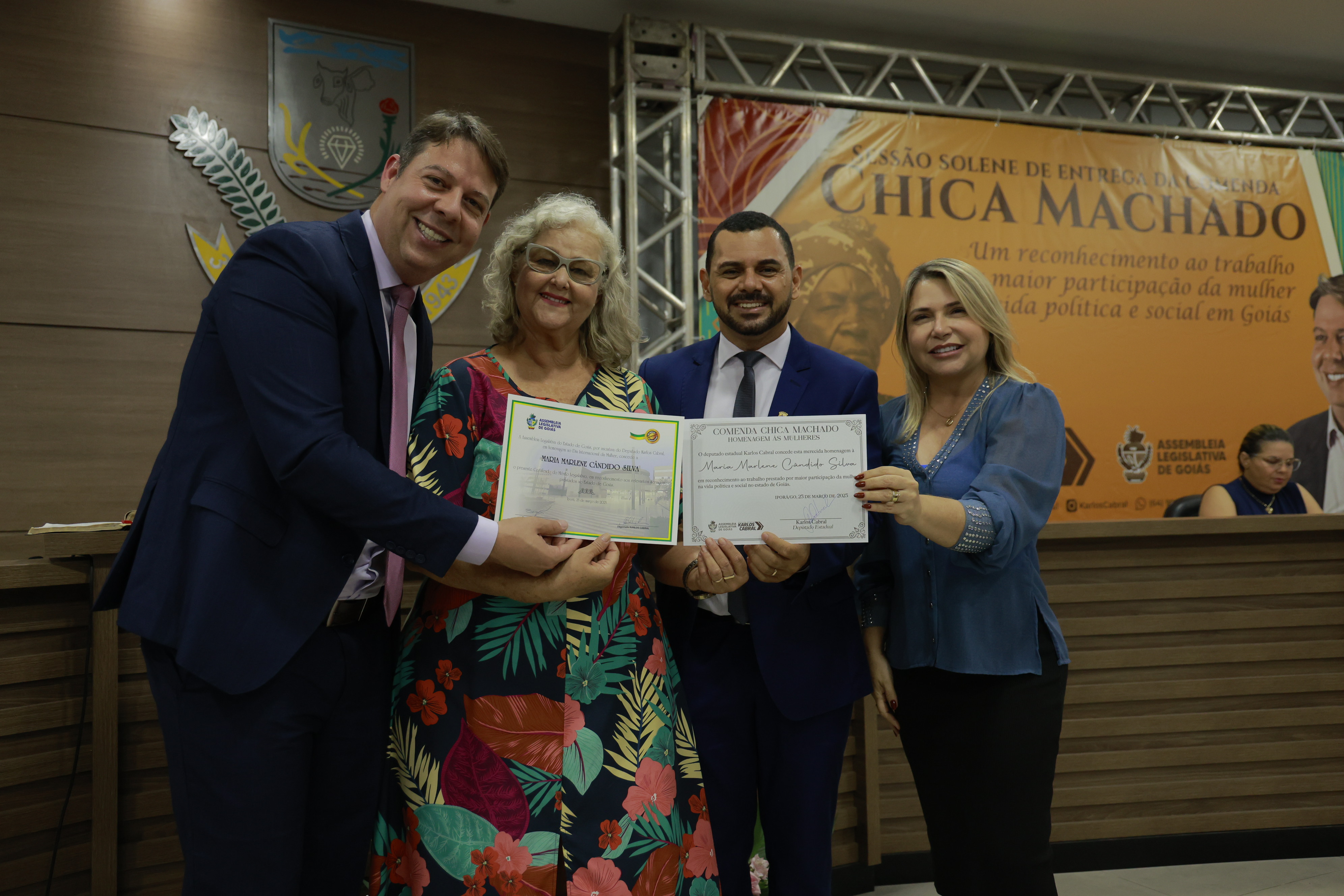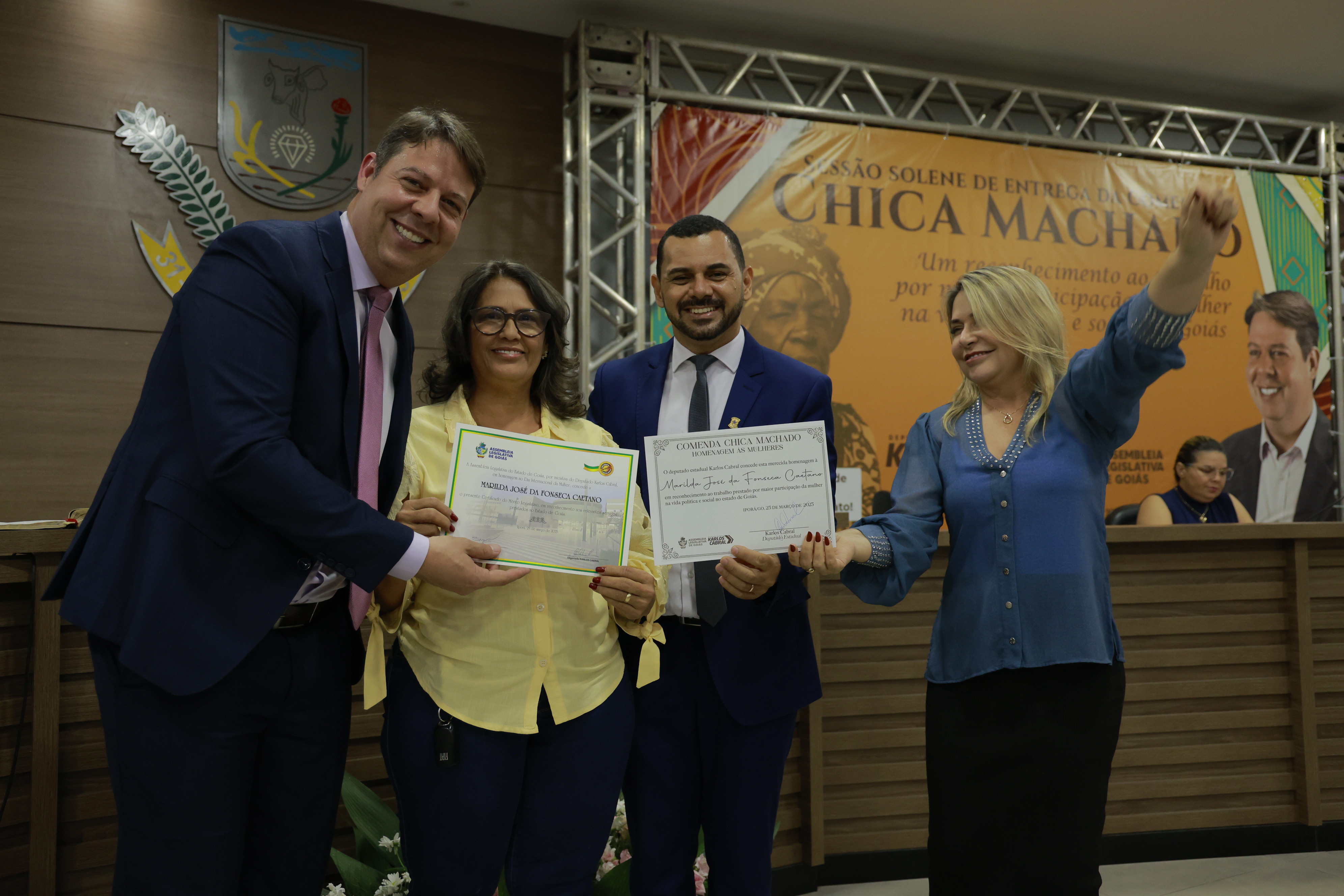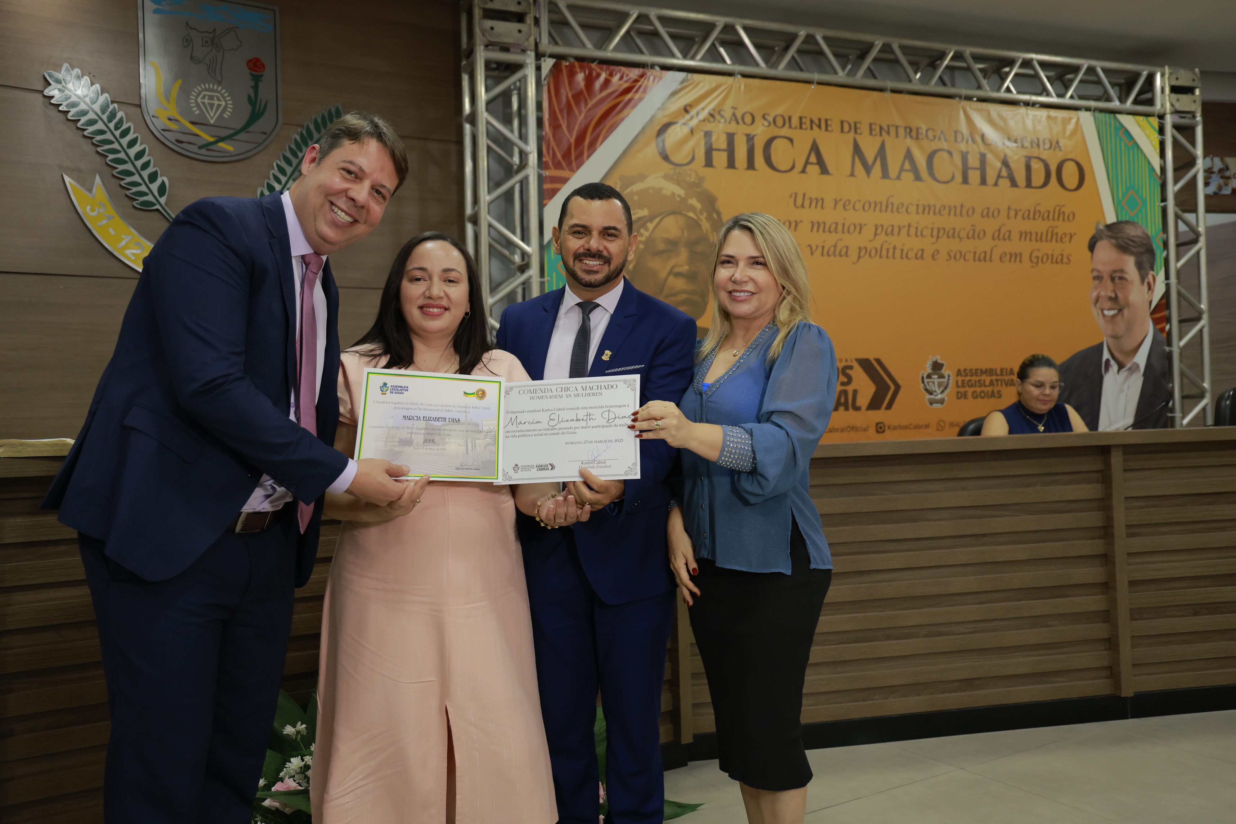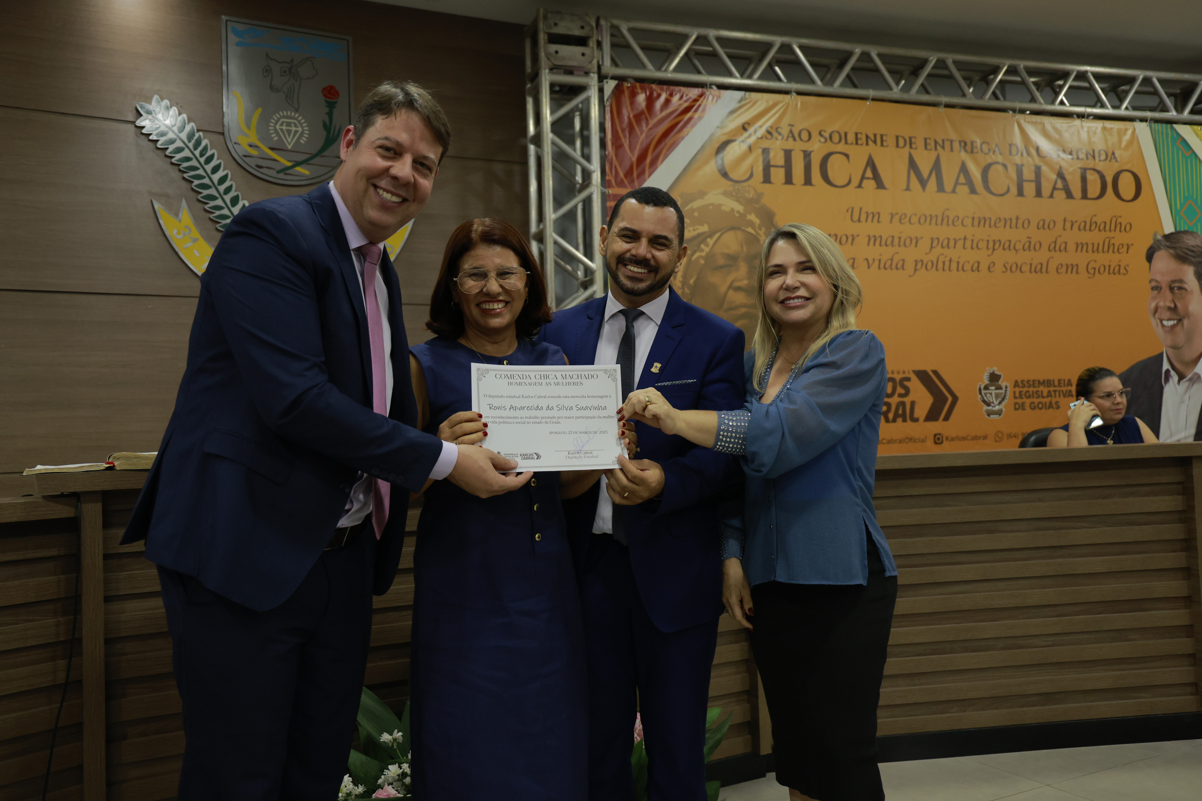 Sessão solene itinerante na cidade de Iporá de entrega da Comenda Chica Machado Carlos Costa