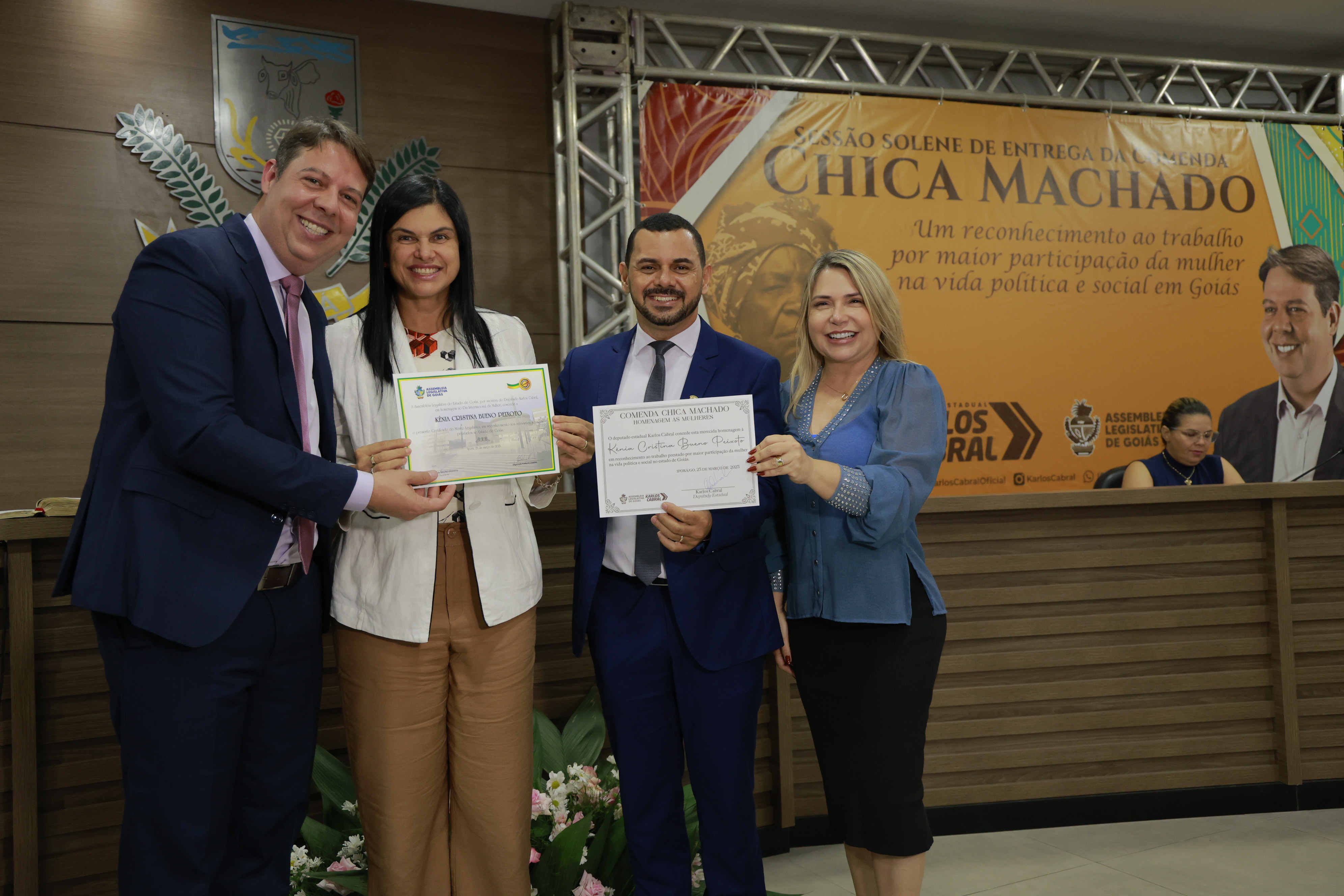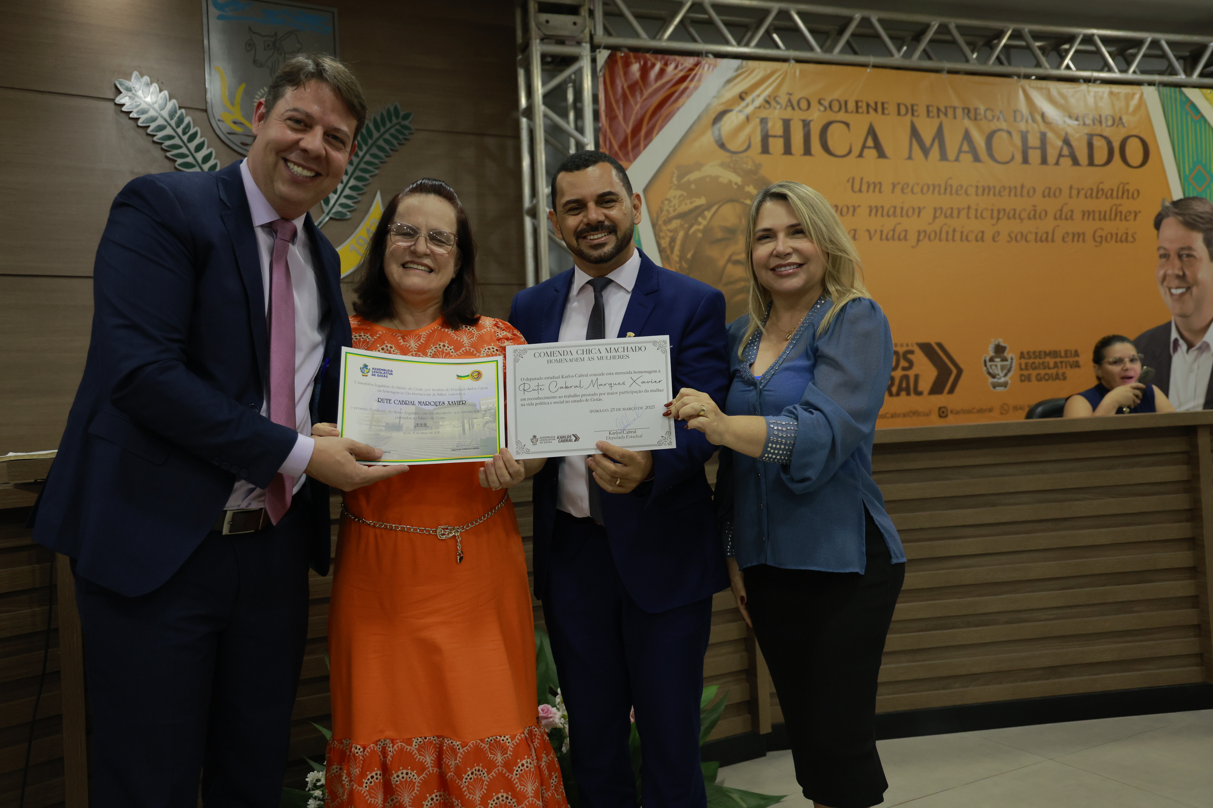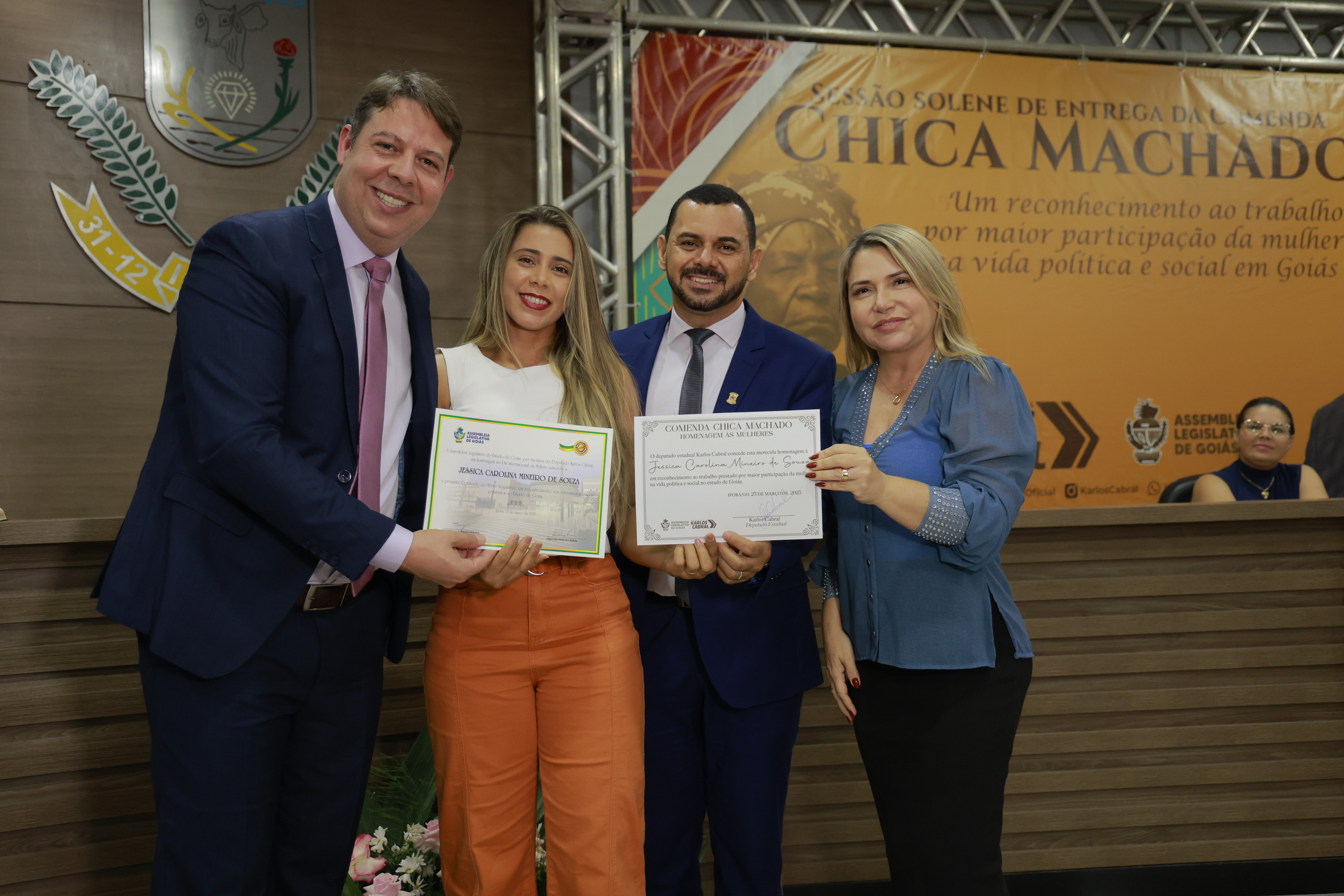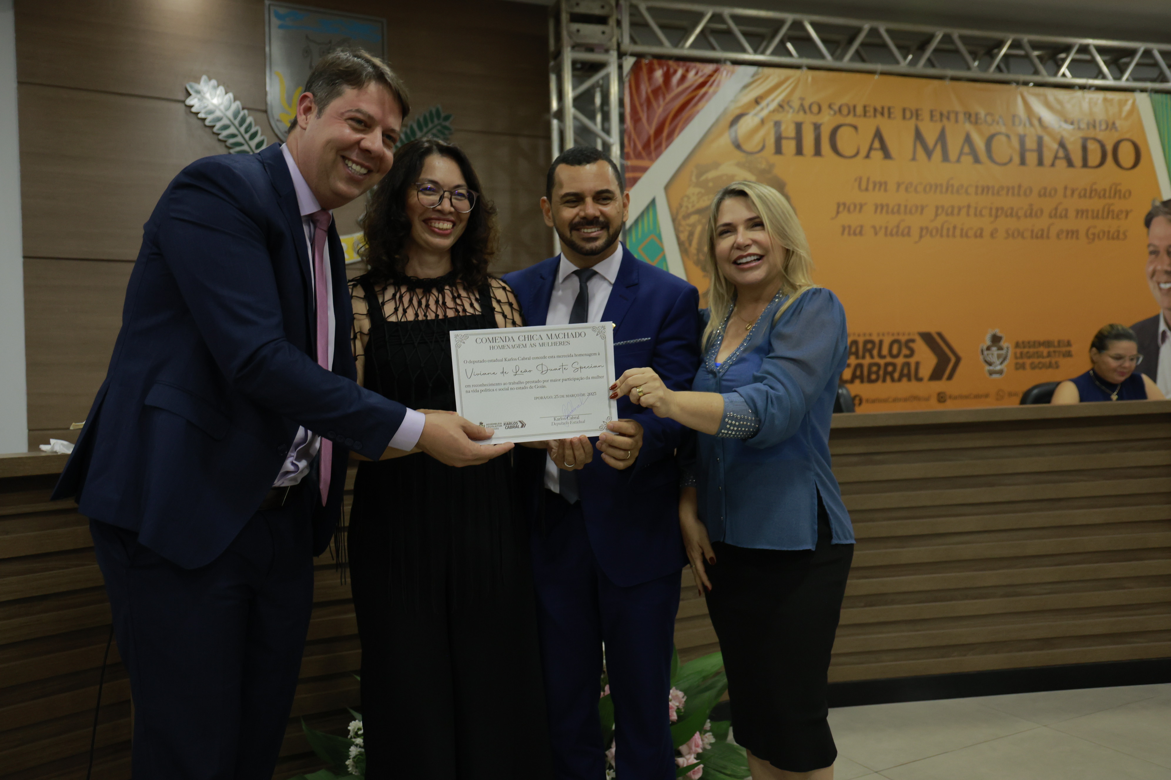 Sessão solene itinerante na cidade de Iporá de entrega da Comenda Chica Machado Carlos Costa