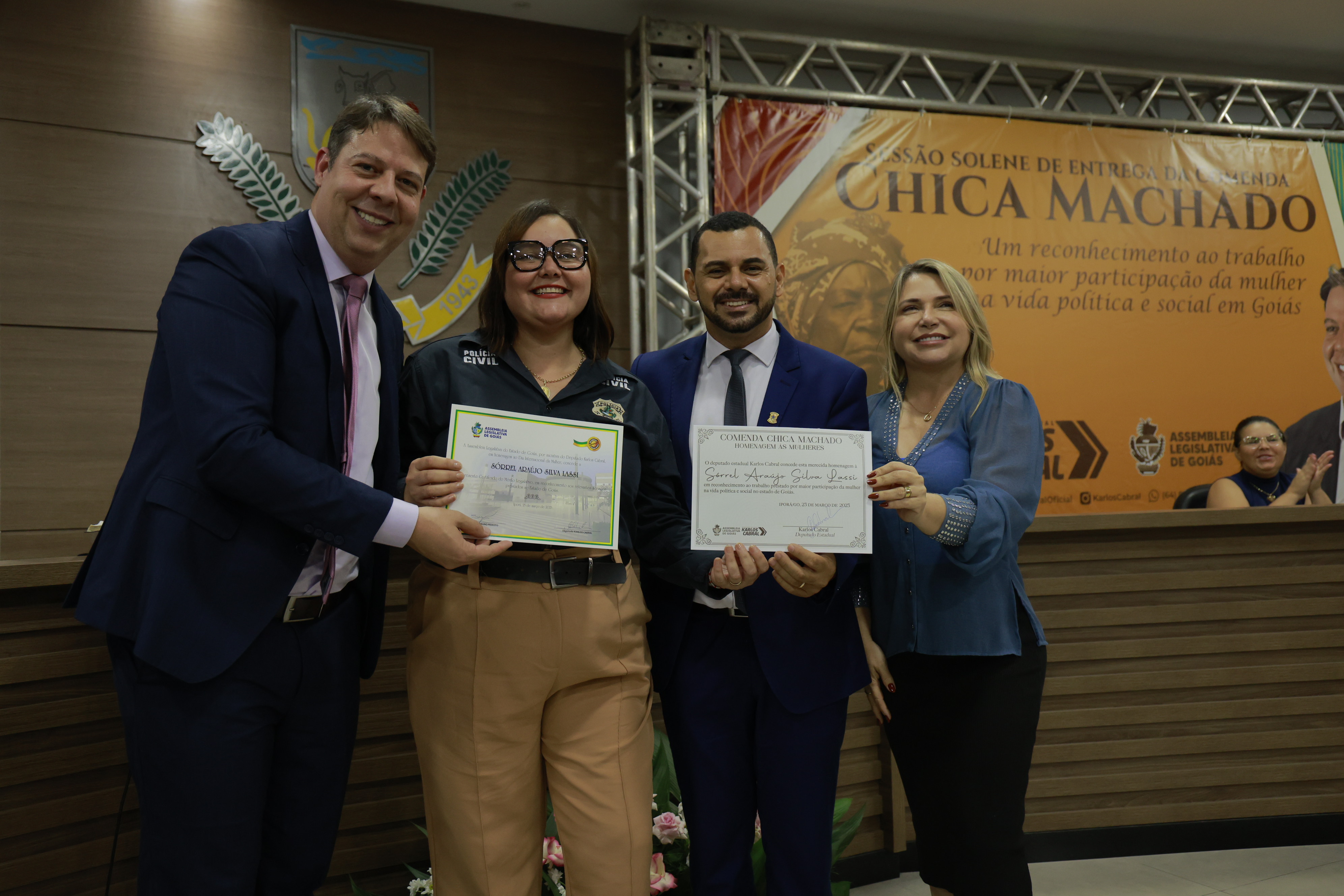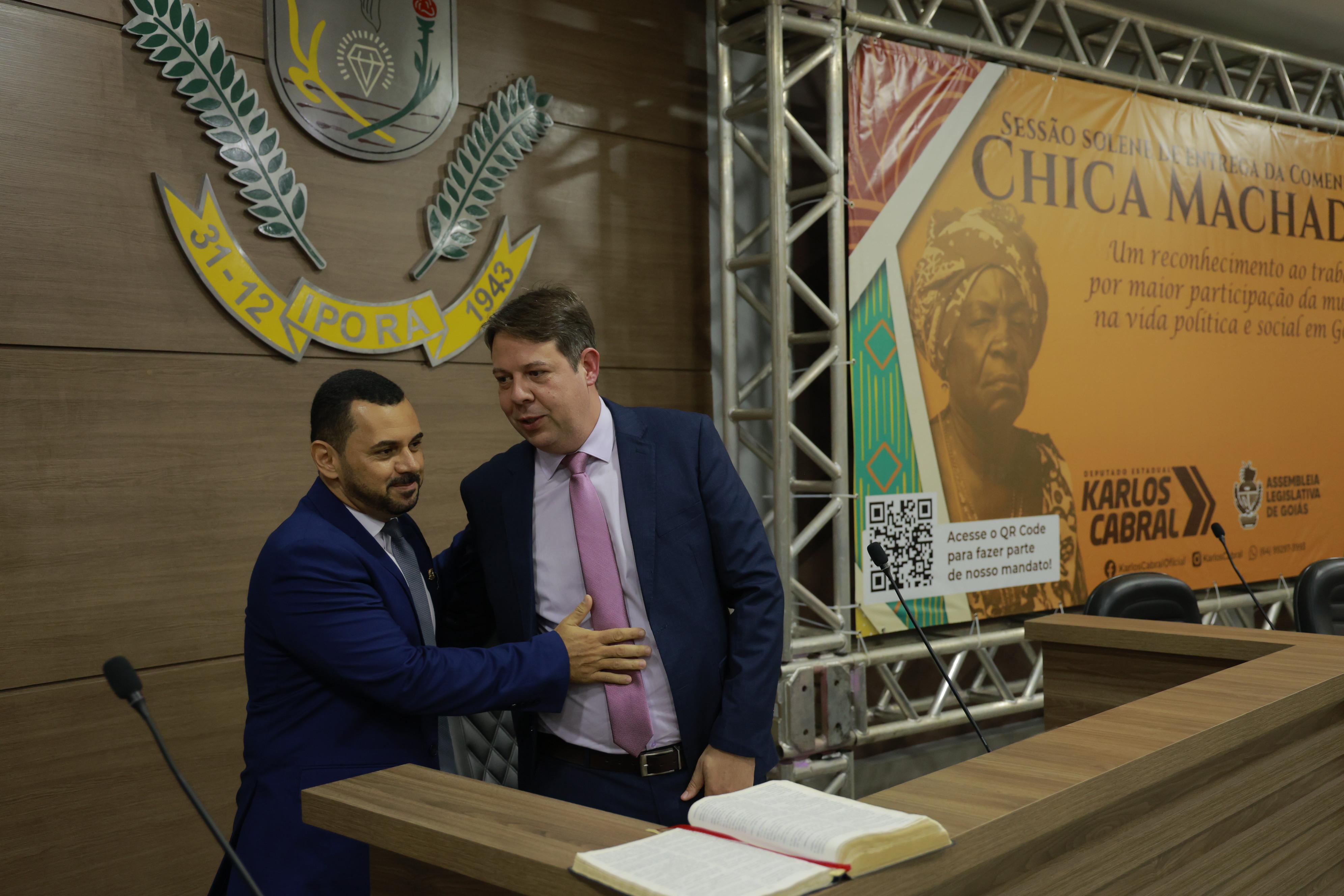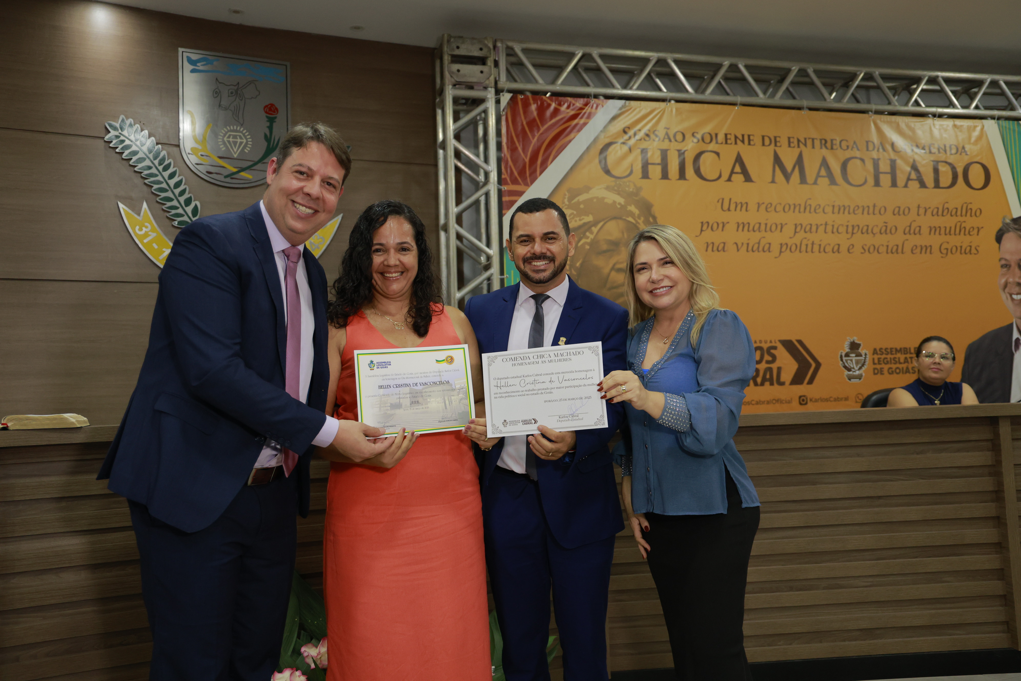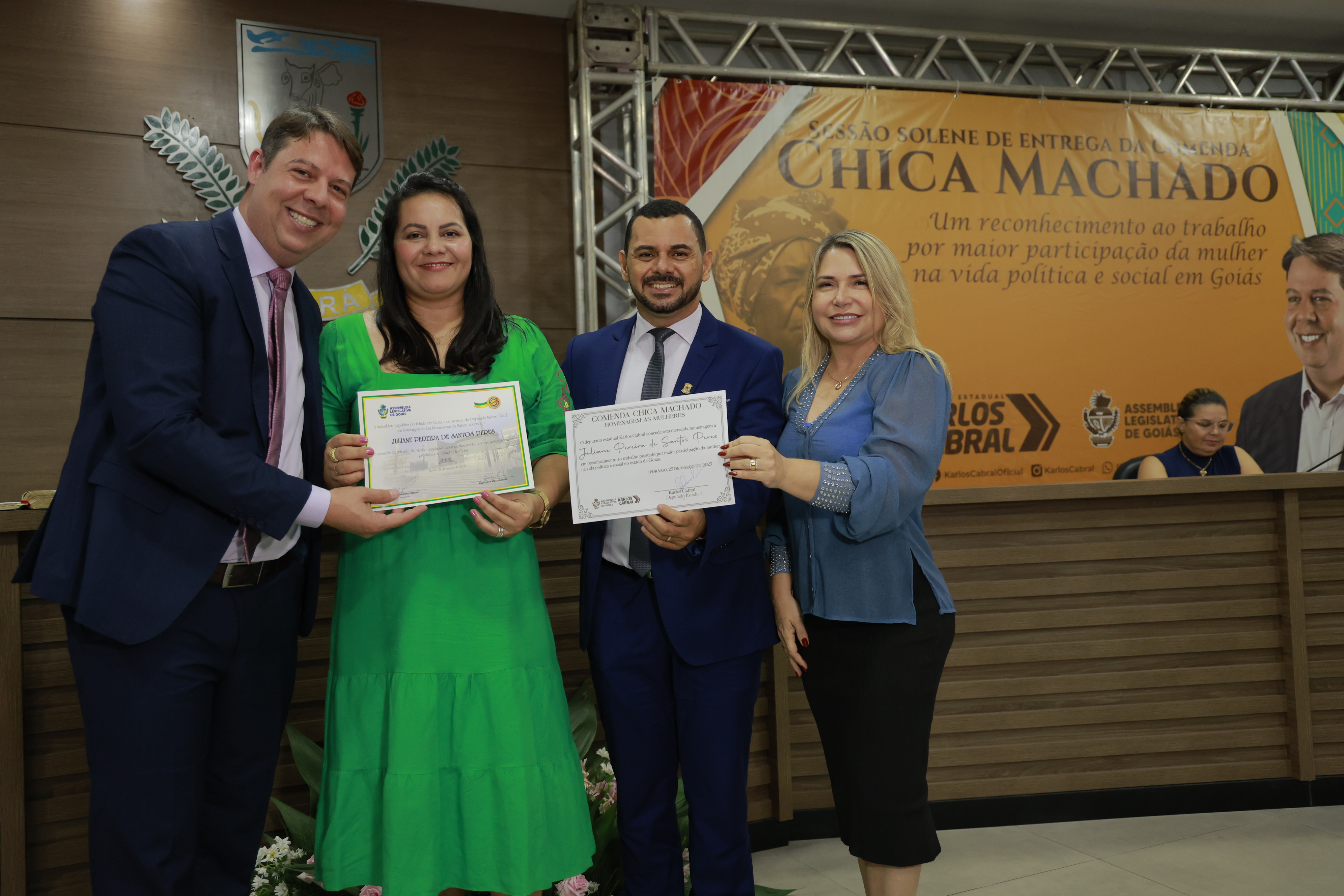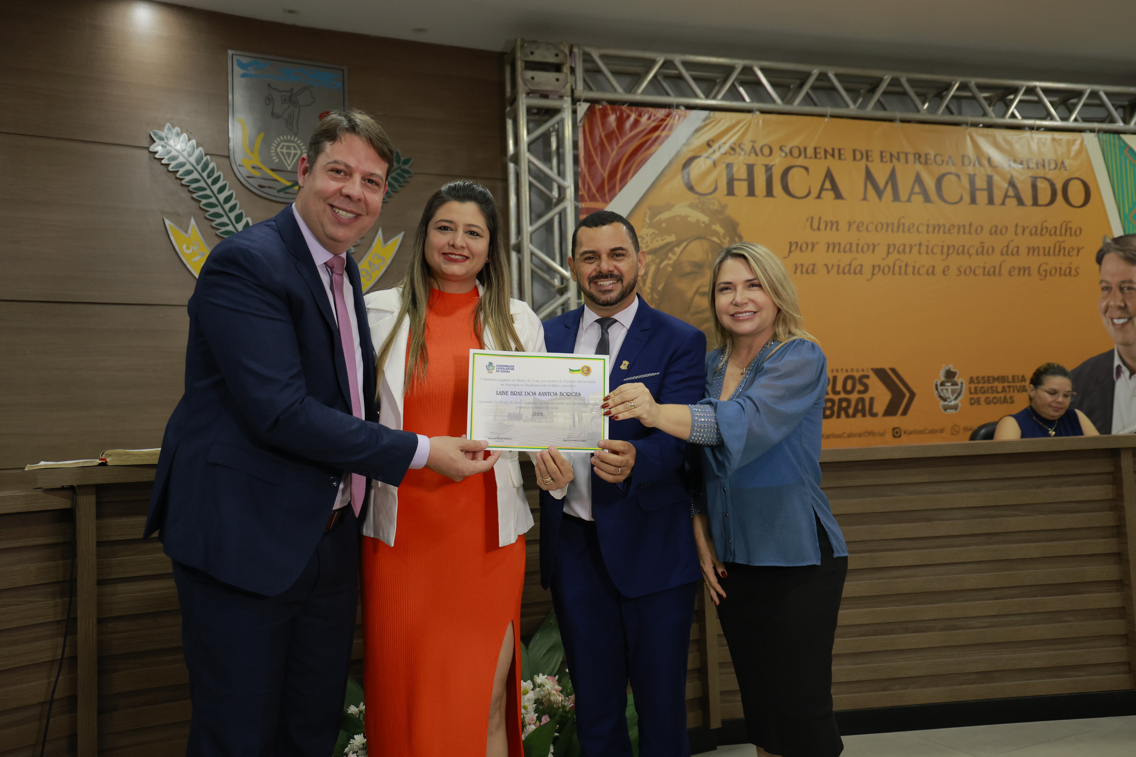 Sessão solene itinerante na cidade de Iporá de entrega da Comenda Chica Machado Carlos Costa