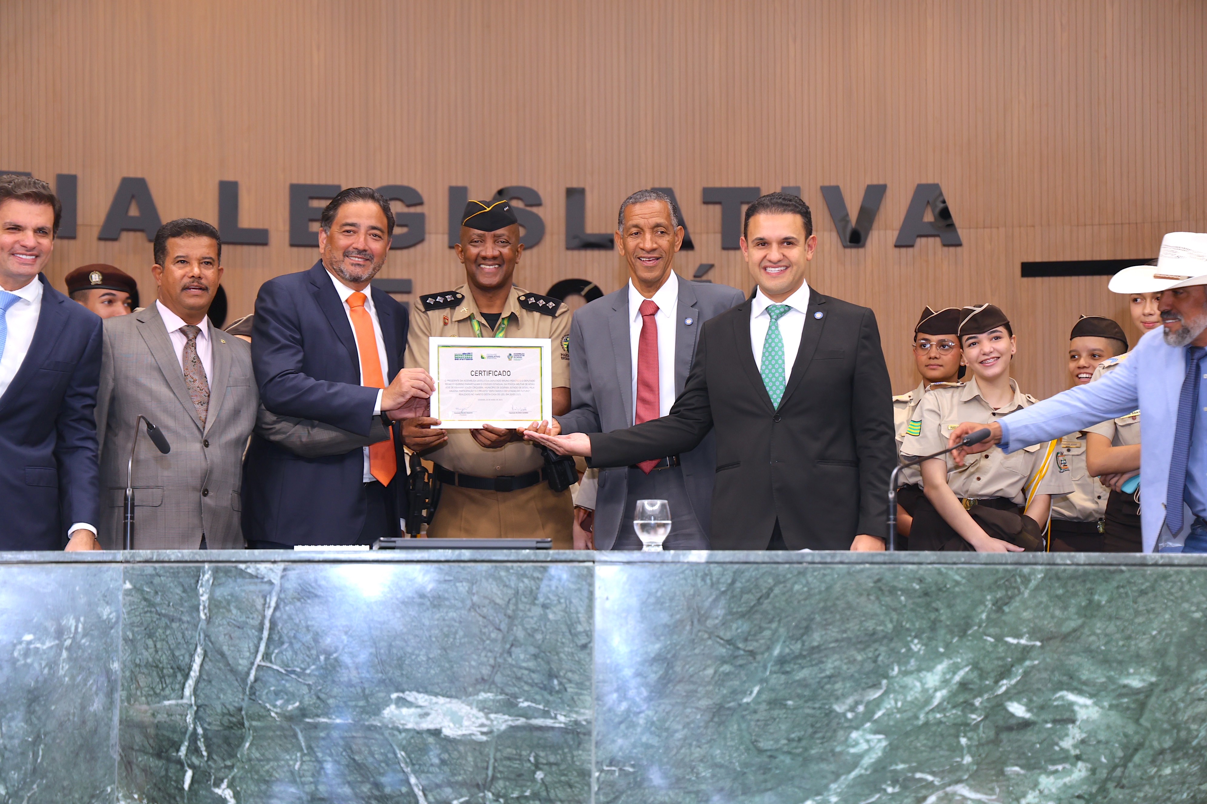 Projeto Deputados e Deputadas do Futuro recebe os alunos do Colégio Estadual da Polícia Militar de Goiás José de Ribamar Souza Cirqueira Maykon Cardoso
